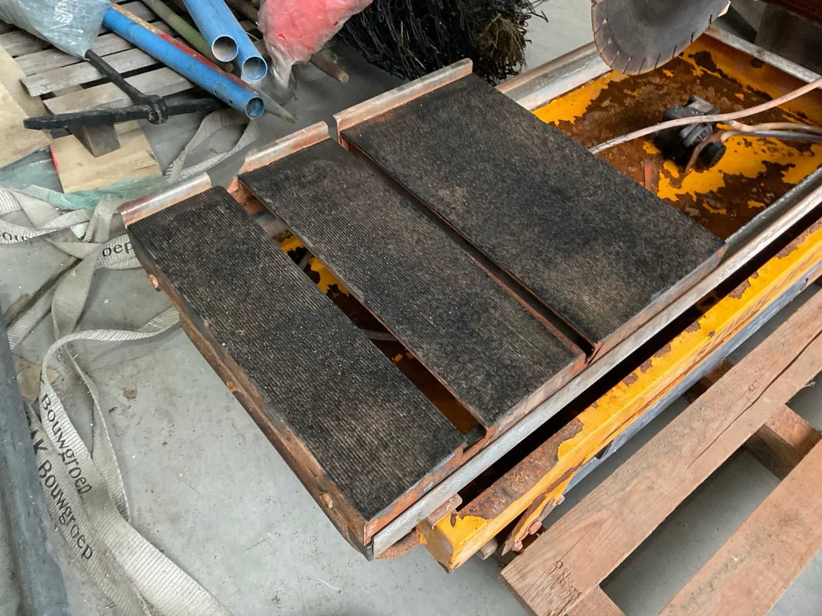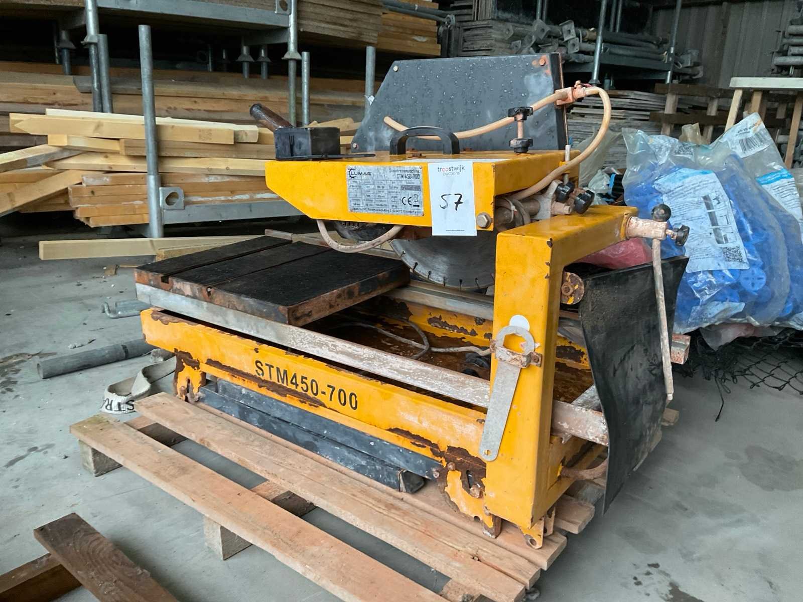 Bouwjaar: 2021, Zaagblad: 450mm, Vermogen: 2kW, Maximale snijdiepte: 140mm, Maximale snijlengte: 700mm. Merk: Lumag Model: STM-450-700 Kleur: Geel Gewicht: 85kg Lengte: 120cm Breedte: 60cm Hoogte: 80cm