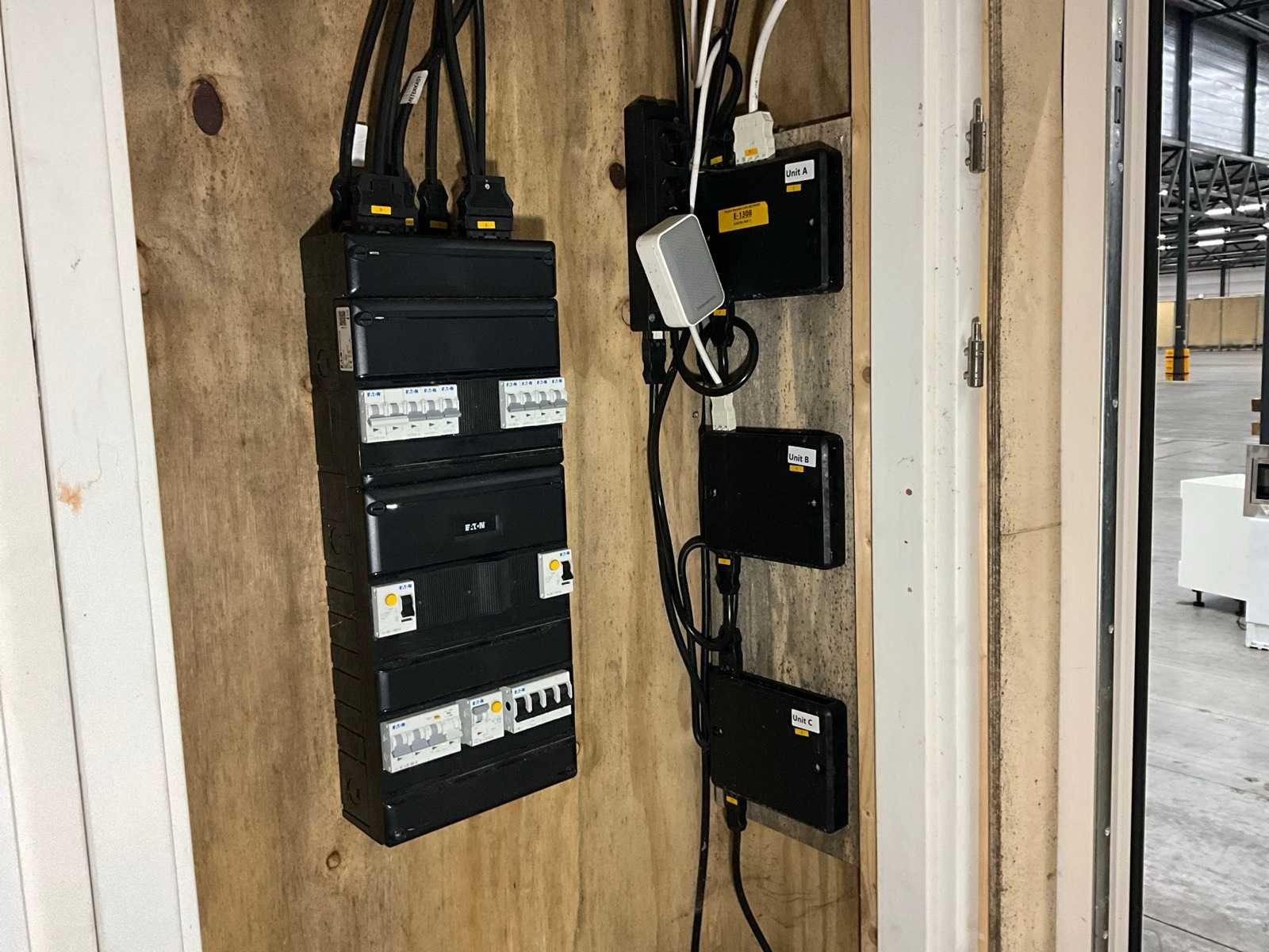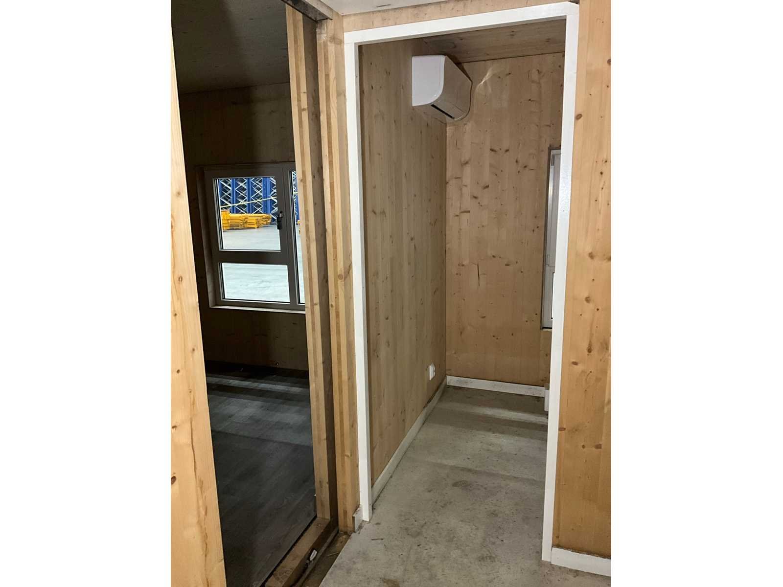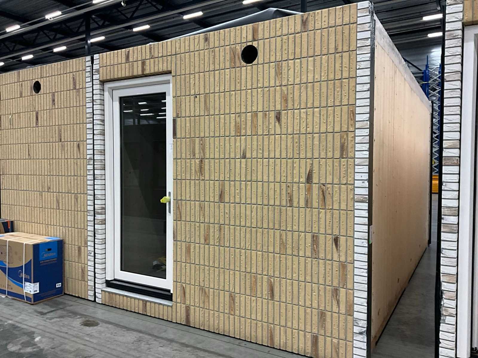 Bestaande uit 3x geschakelde unit, voorzien van badkamer, “Stiebel Eltron” elektrische boiler, groepenkast, multi-split airco met 3x binnenunit, kunststof deuren en kozijnen met openslaande ramen. Waterleiding, rioolafvoer, elektra en warmte terug win unit (WTW) geïnstalleerd. Inclusief 2x geïsoleerd sandwich gevelpaneel ten behoeve van zijkanten. Totale afmeting L: 6080mm Totale afmeting Breedte: 9720mm Totale afmeting Hoogte: 3040mm