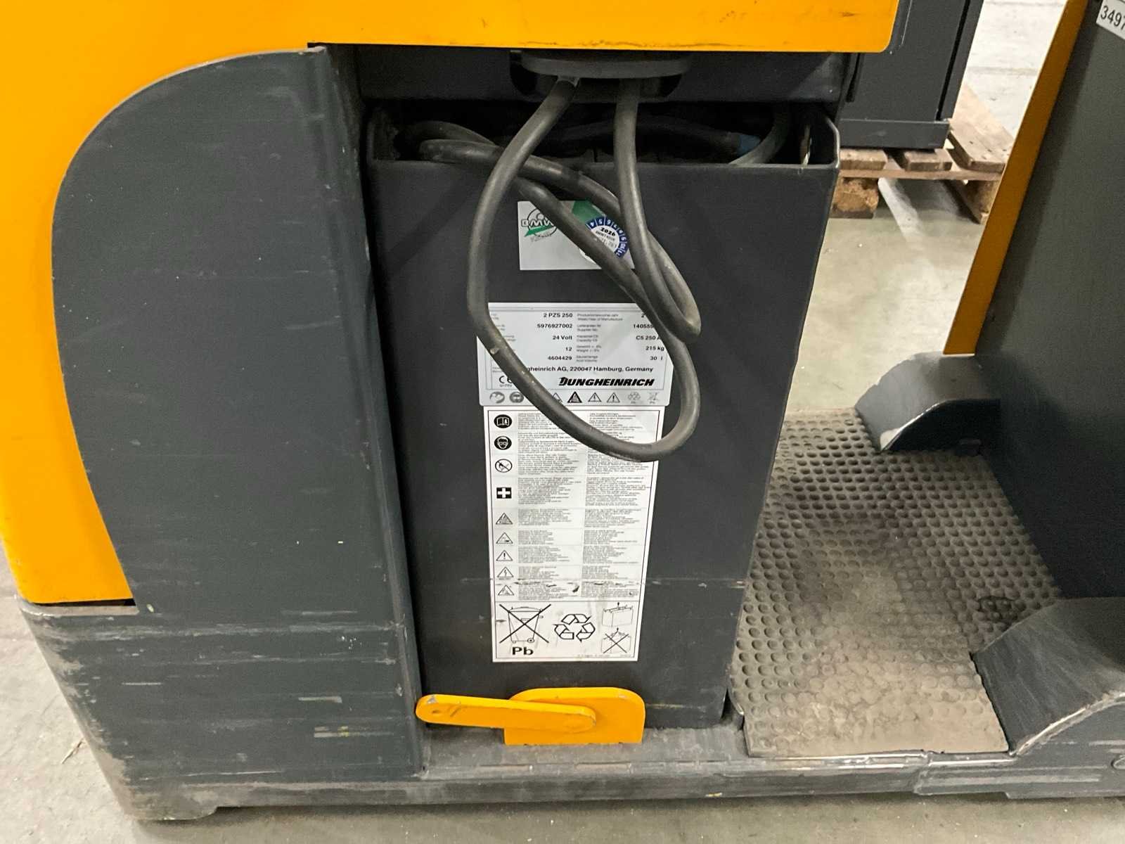 Trekcapaciteit 2000N; gewicht 390KG + batterij 209 / 231 KG Merk: Jungheinrich Type: EZS 130 Bouwjaar: 2008 Serienummer: 91537402 Elektrisch: true Motorvermogen (kW): 2.5kW Totale afmeting L: 1250mm Totale afmeting Breedte: 600mm Totale afmeting Hoogte: 1500mm