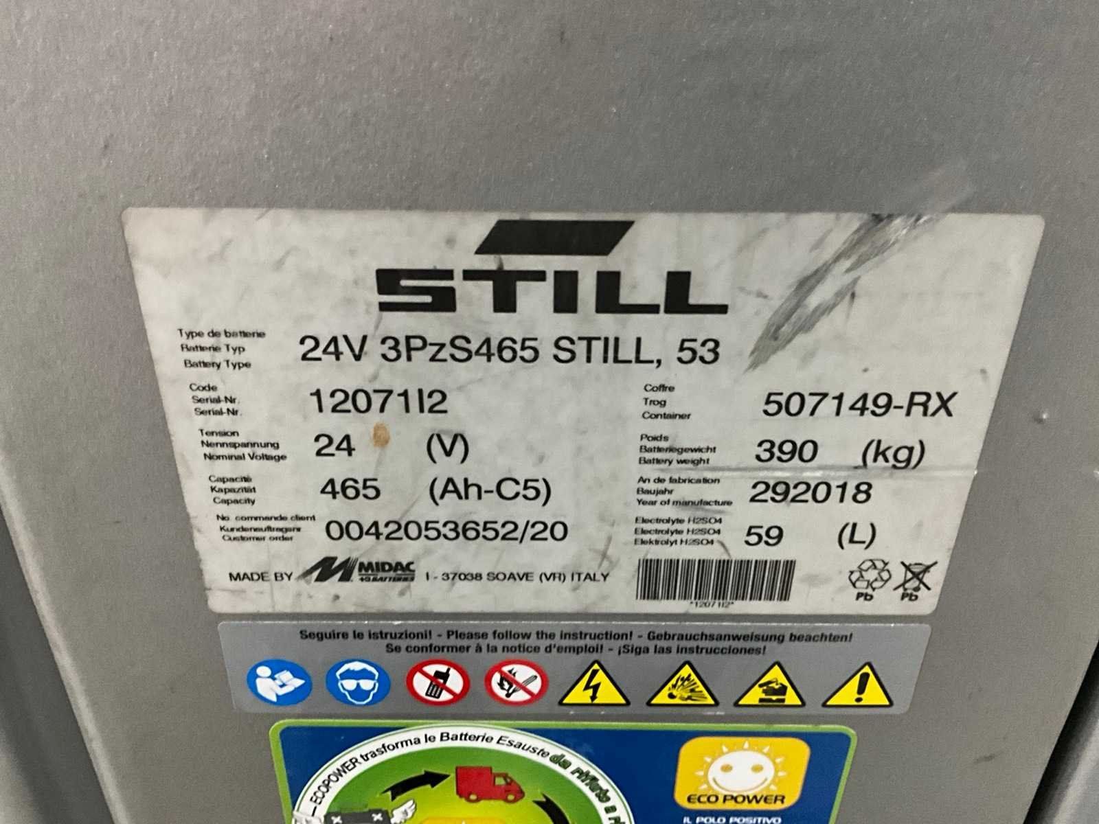 Merk: STILL Type: OPX 20 Hefvermogen: 2500kg Lepellengte: 1150mm Accu lader: true Totale afmeting L: 2400mm Totale afmeting Breedte: 800mm Totale afmeting Hoogte: 1450mm
