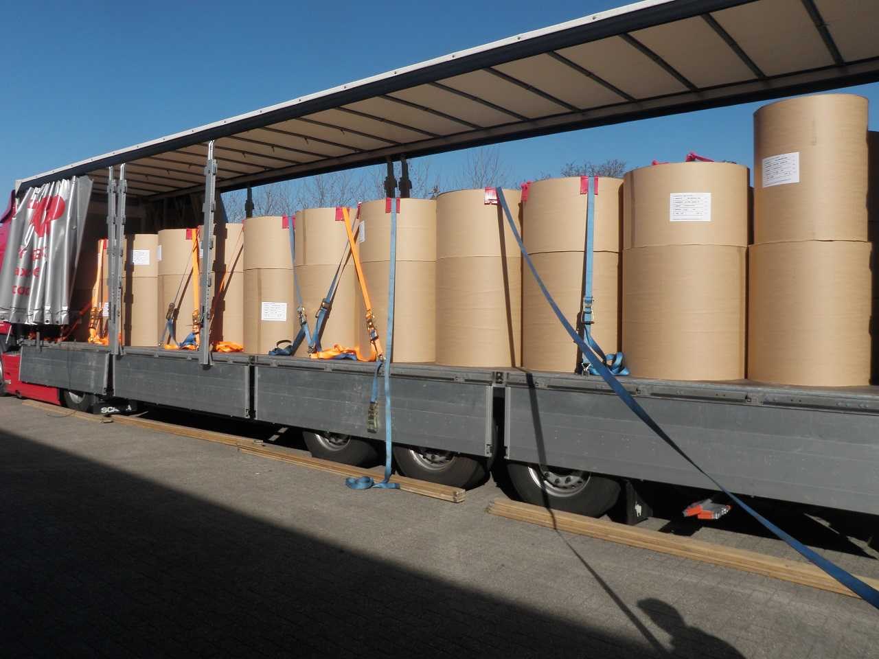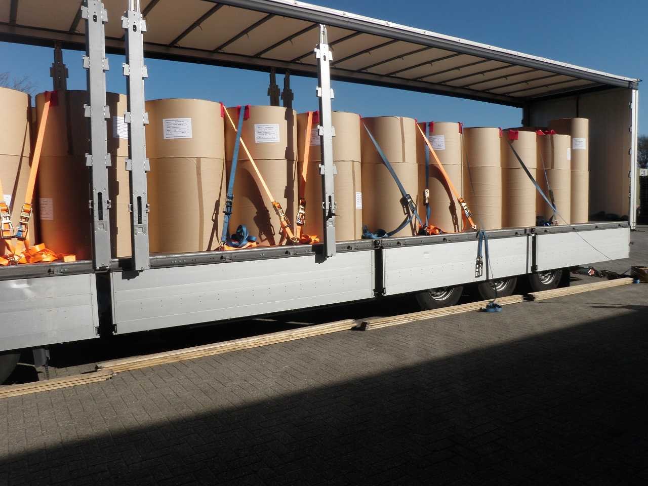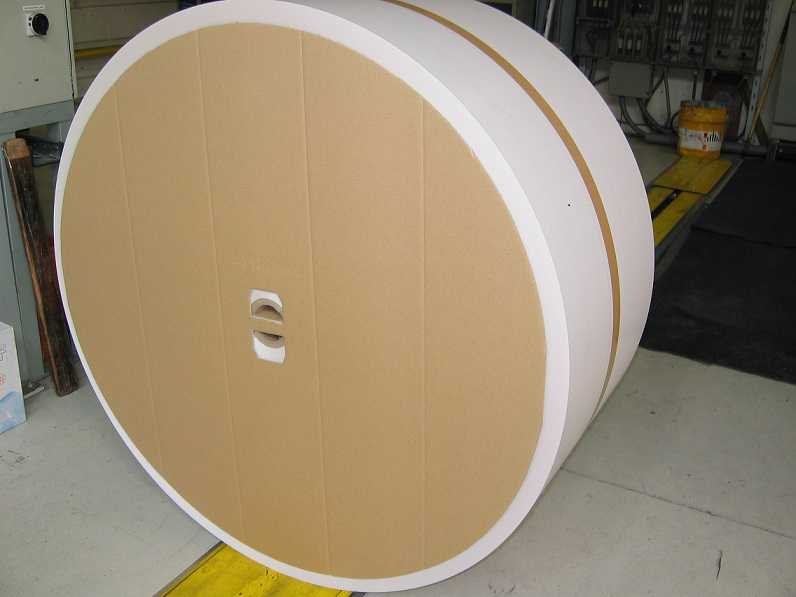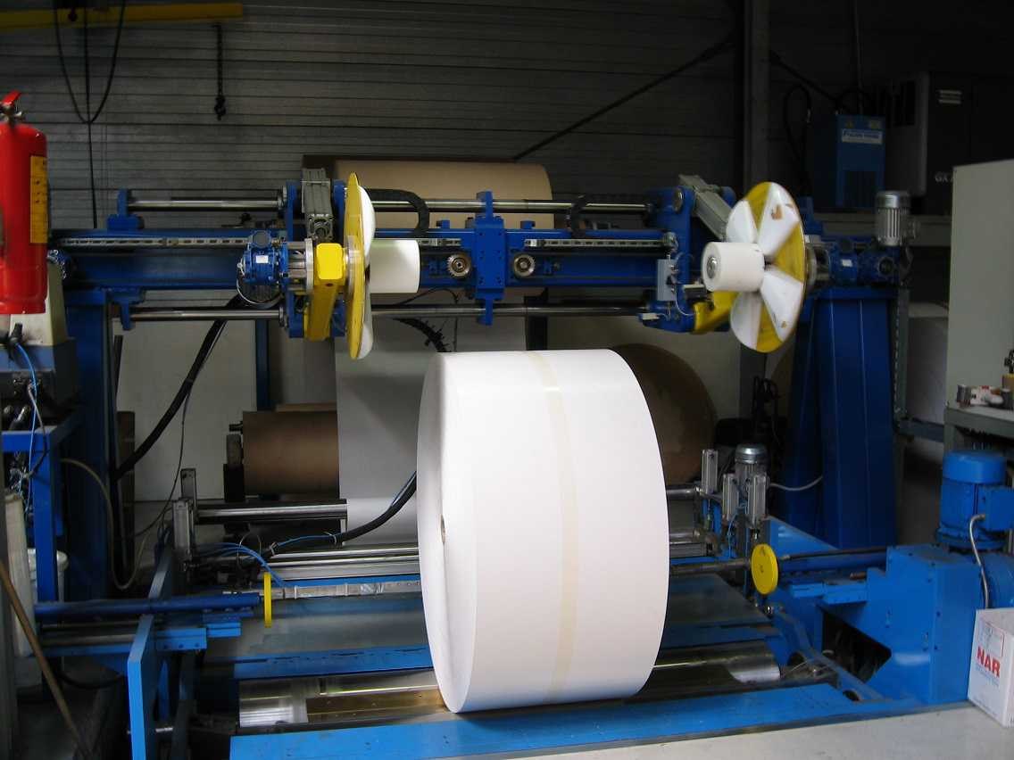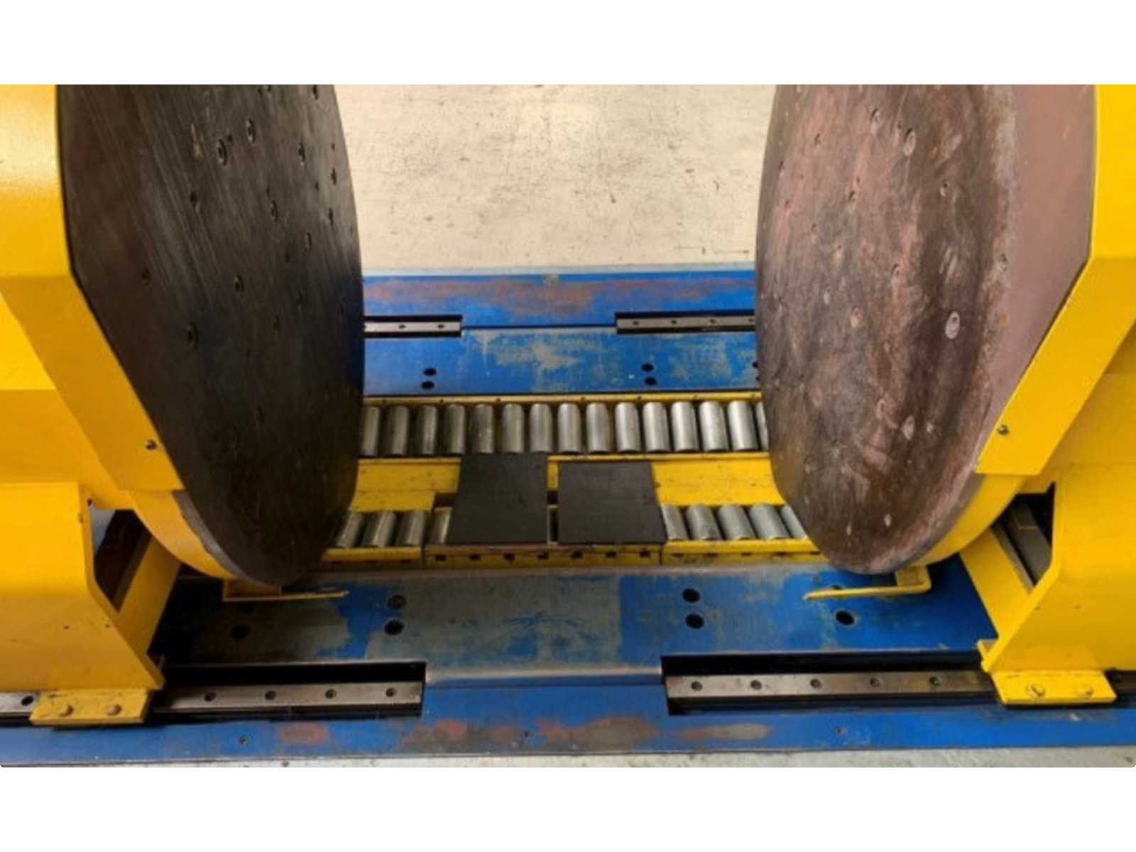 2-delige papierrollen-inpakstraat; v.v. rollenbaan; hydraulische positioneercilinders; aandrukrollen; verpakking papierrollenframe; hotlijmunit Nordson met langslopende spuitkopmotoren; hydraulische pomp; vloerweegschaal; kantenverpakkingsmachine met stalen frame; 2 verwarmbare hydraulische aandruk persplaten doorsnede 1,5 mtr.; rollenheftafel met dwarsrollenbaan; verdere toebehoren. Merk: Voith Bouwjaar: 1999