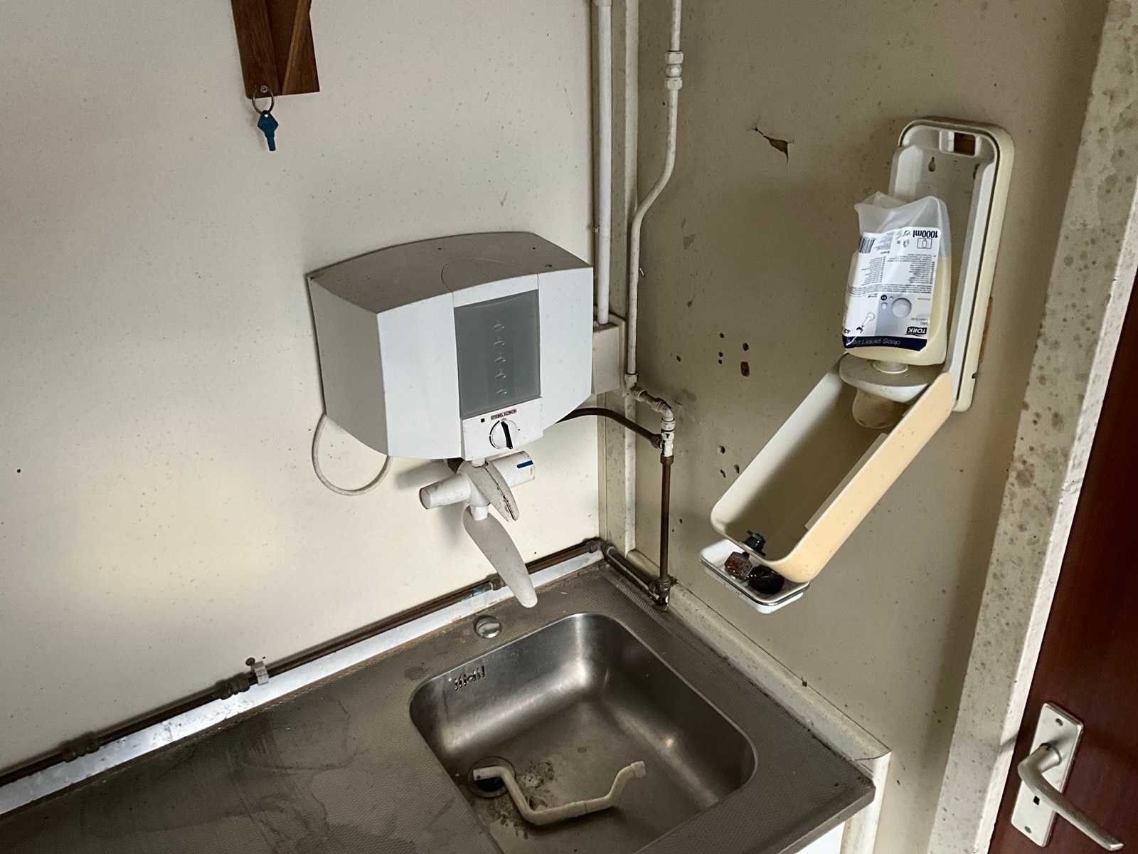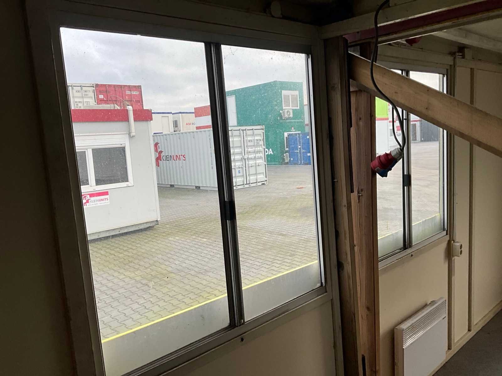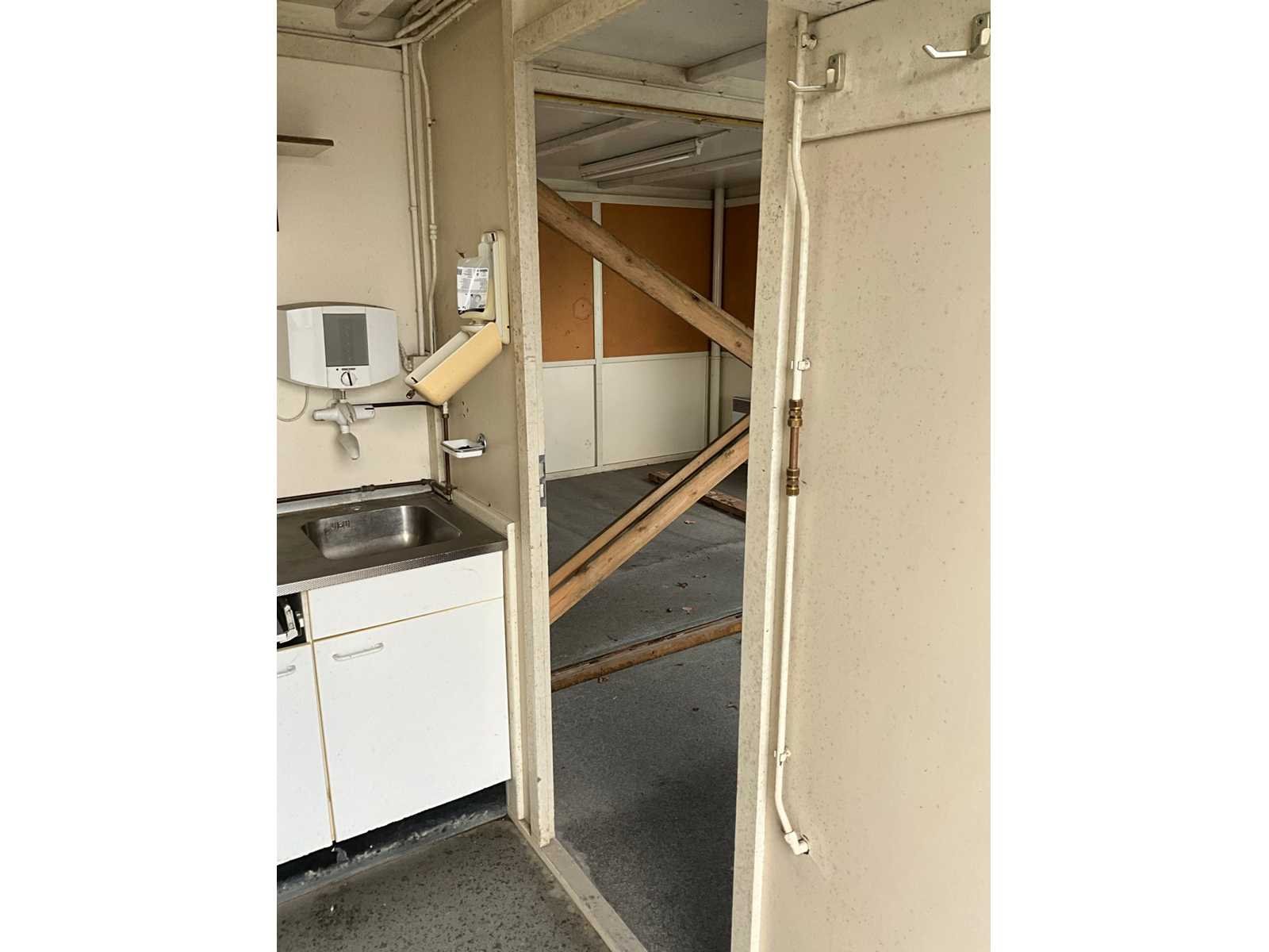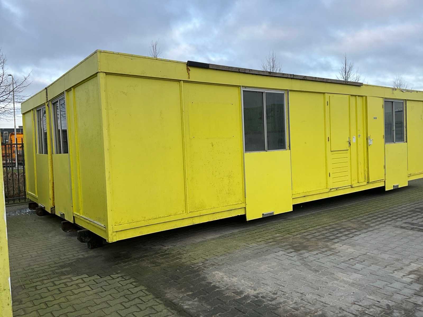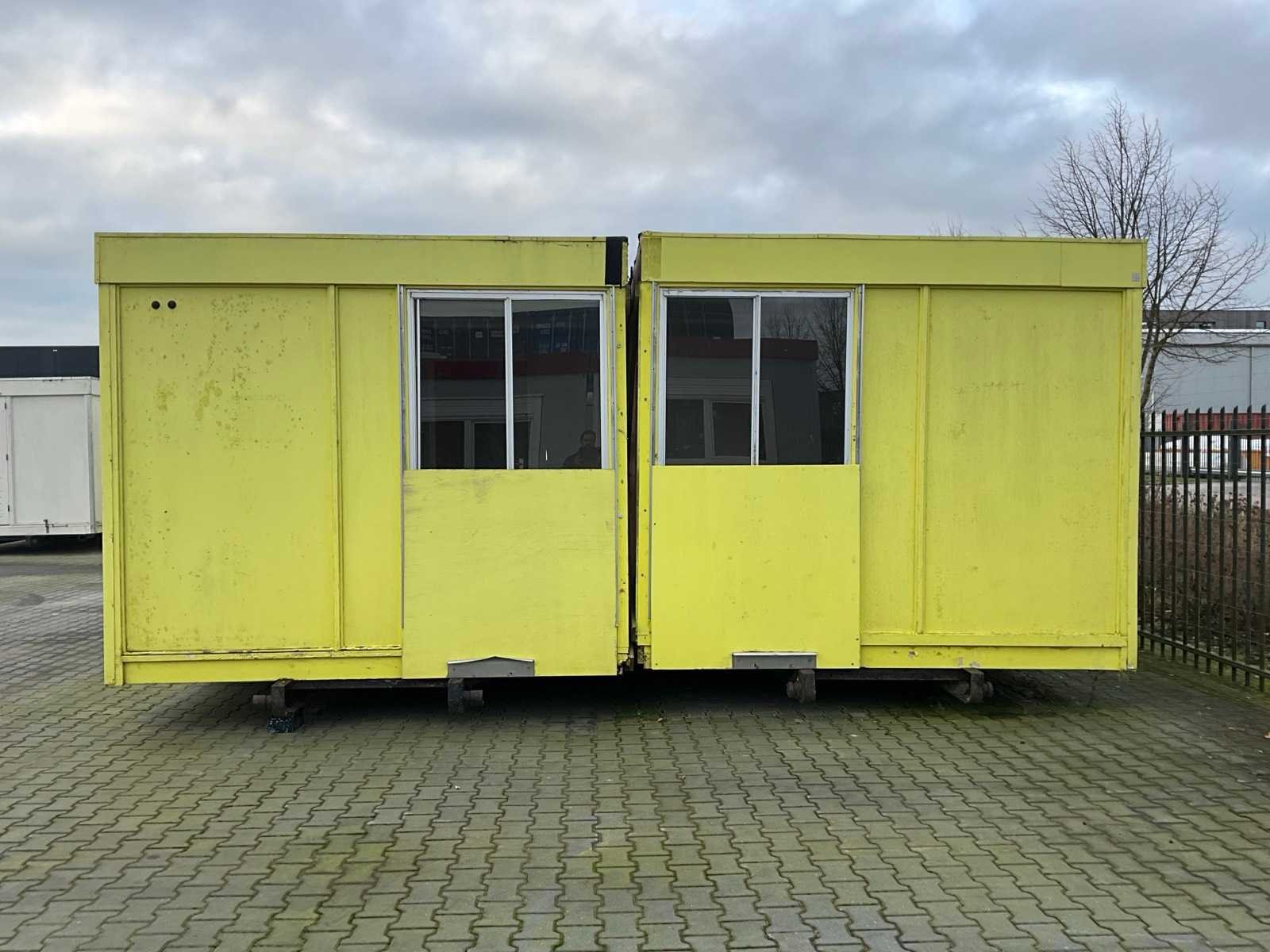 Bestaande uit 2x unit. Voorzien van: haakarm laad frame, Toilet, Aluminium kozijnen met schuif raam, elektrische kachel, groepenkast Aantal ramen: 7 Totale afmeting L: 10000mm Totale afmeting Breedte: 6125mm Totale afmeting Hoogte: 2880mm