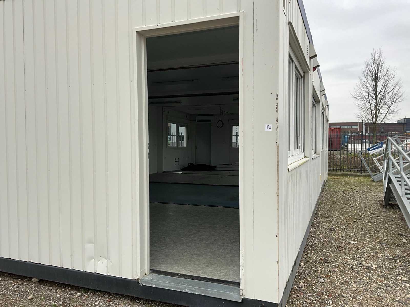 Bestaande uit 4x unit. Voorzien van kunststof kozijnen met openslaand raam, rolluiken, 3x toegangsdeur, elektrische kachel, groepenkast, airco, werking onbekend. Aantal ramen: 7 Totale afmeting L: 6100mm Totale afmeting Breedte: 12400mm Totale afmeting Hoogte: 2880mm