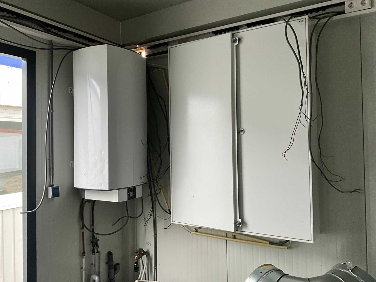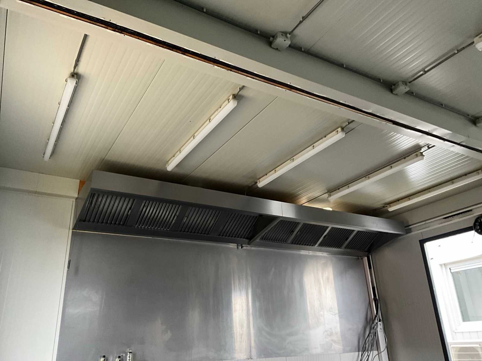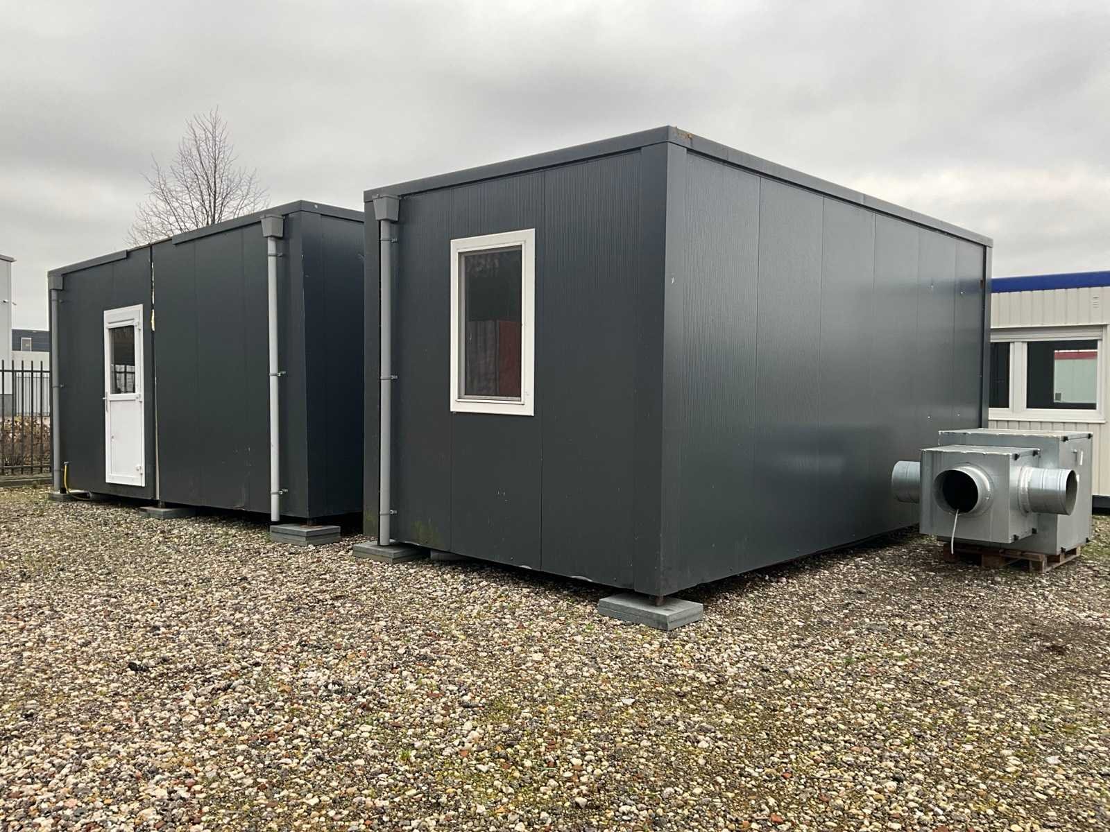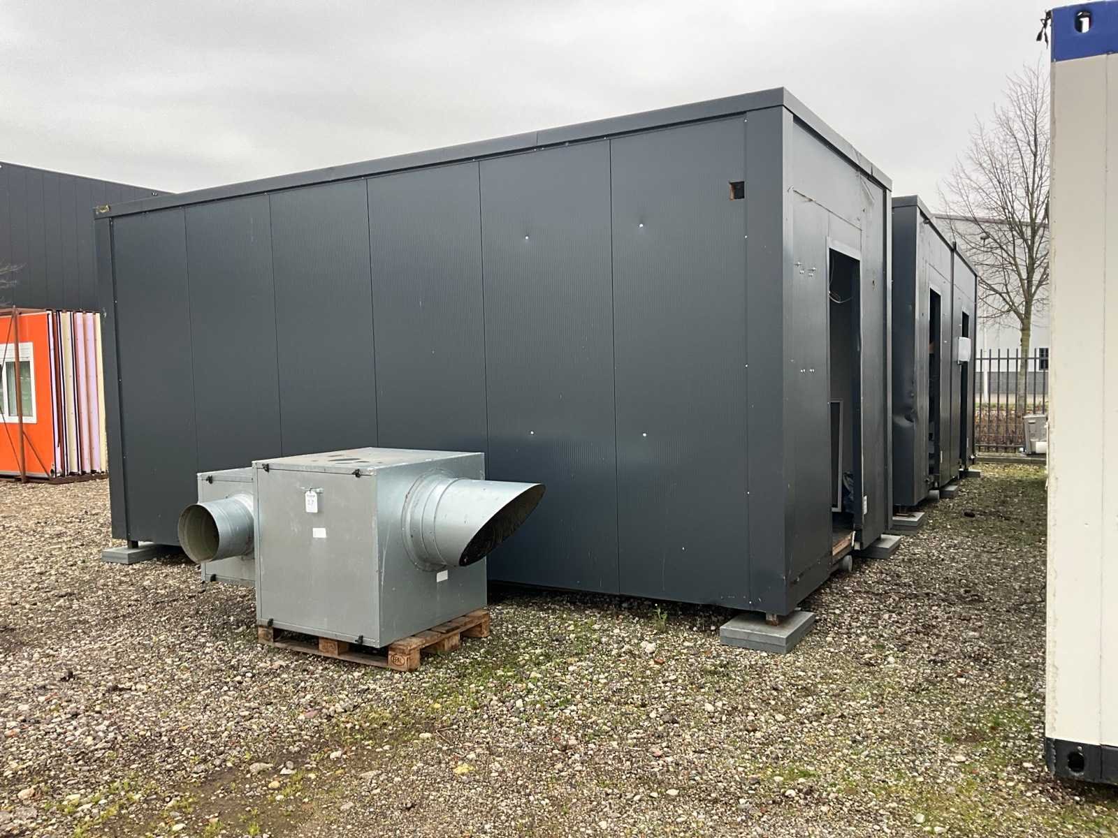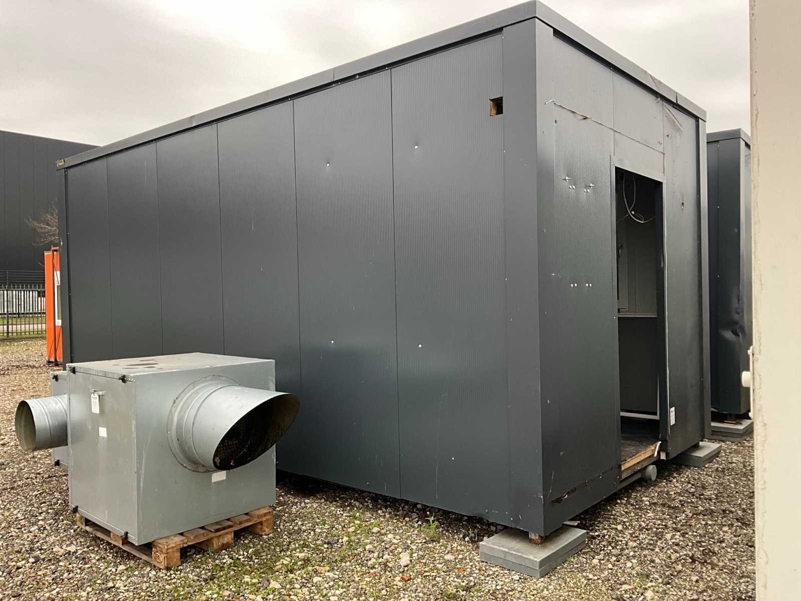 Bestaande uit: 2x geschakelde keukenunit voorzien van: 2x RVS afzuigkap, Werkbreedte circa 4500 mm en 2500 mm, airconditioning, RVS aanrecht, 10x krachtstroom aansluiting, 4x schrobput, kunststof deur en kozijn, water en gas aansluiting, groepenkast, afmeting circa: 6300x6300x3100. 1x losstaande unit voorzien: elektrische boiler “Stiebel Eltron” type: SHZ 120 Ltr LCD, krachtstroom schakel-/ groepenkast. Inclusief luchtbehandelingskast.
