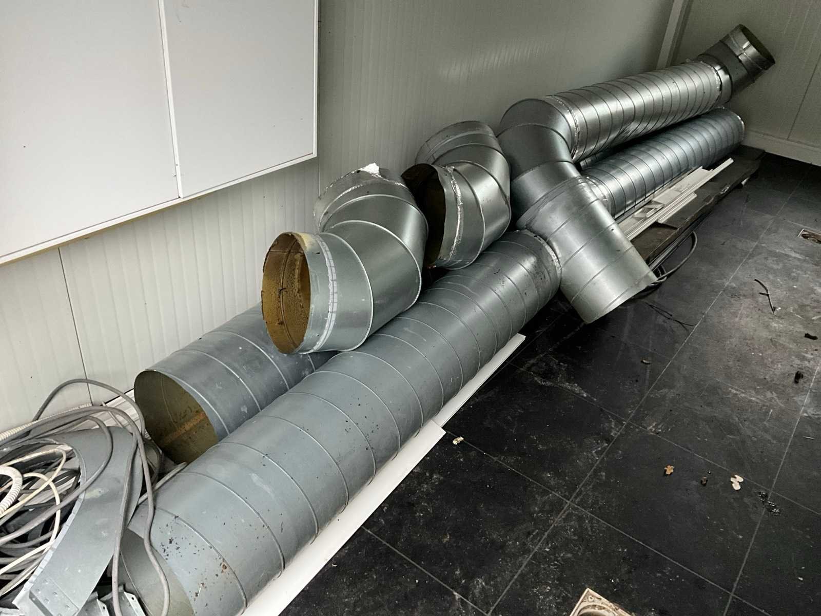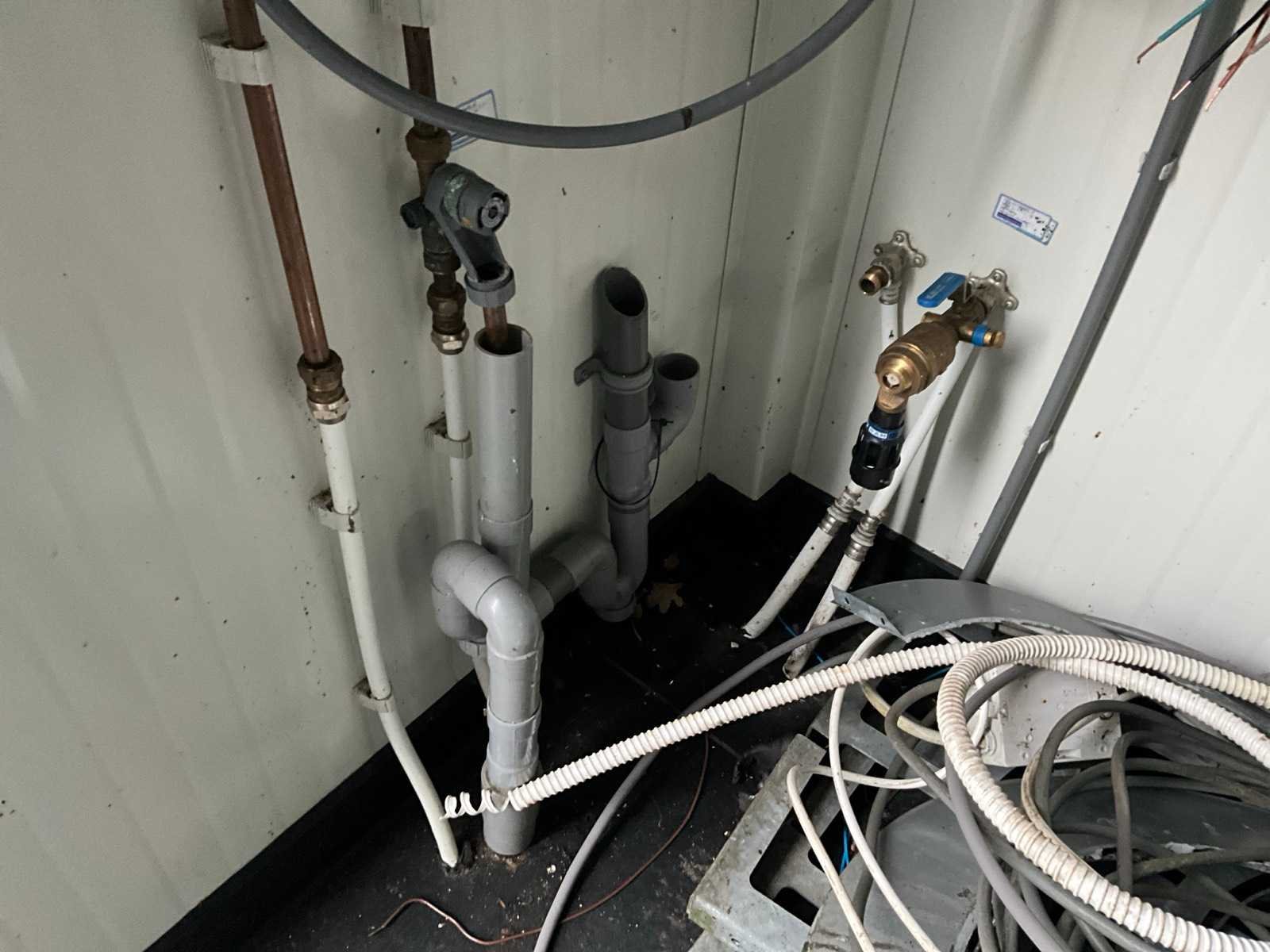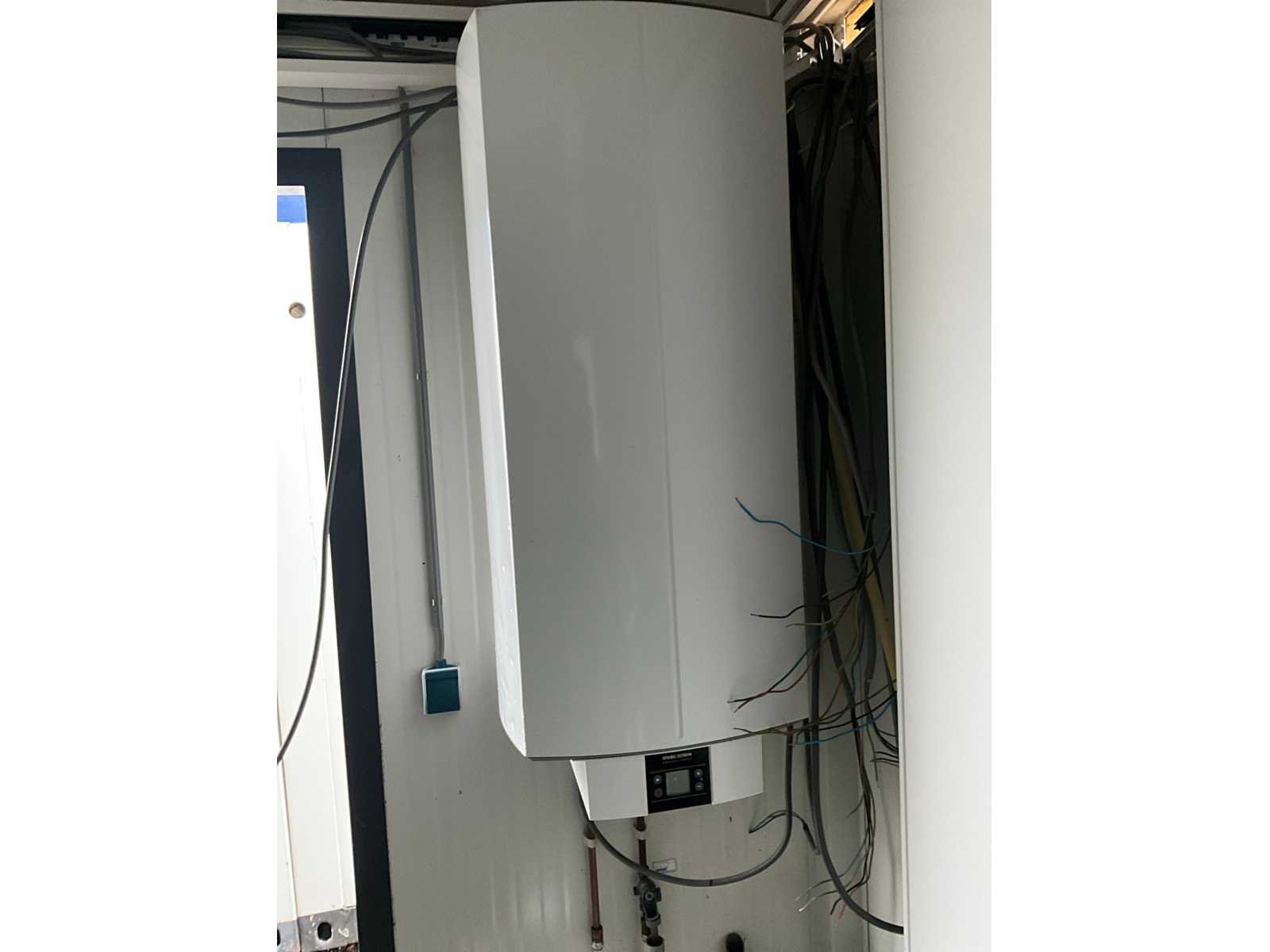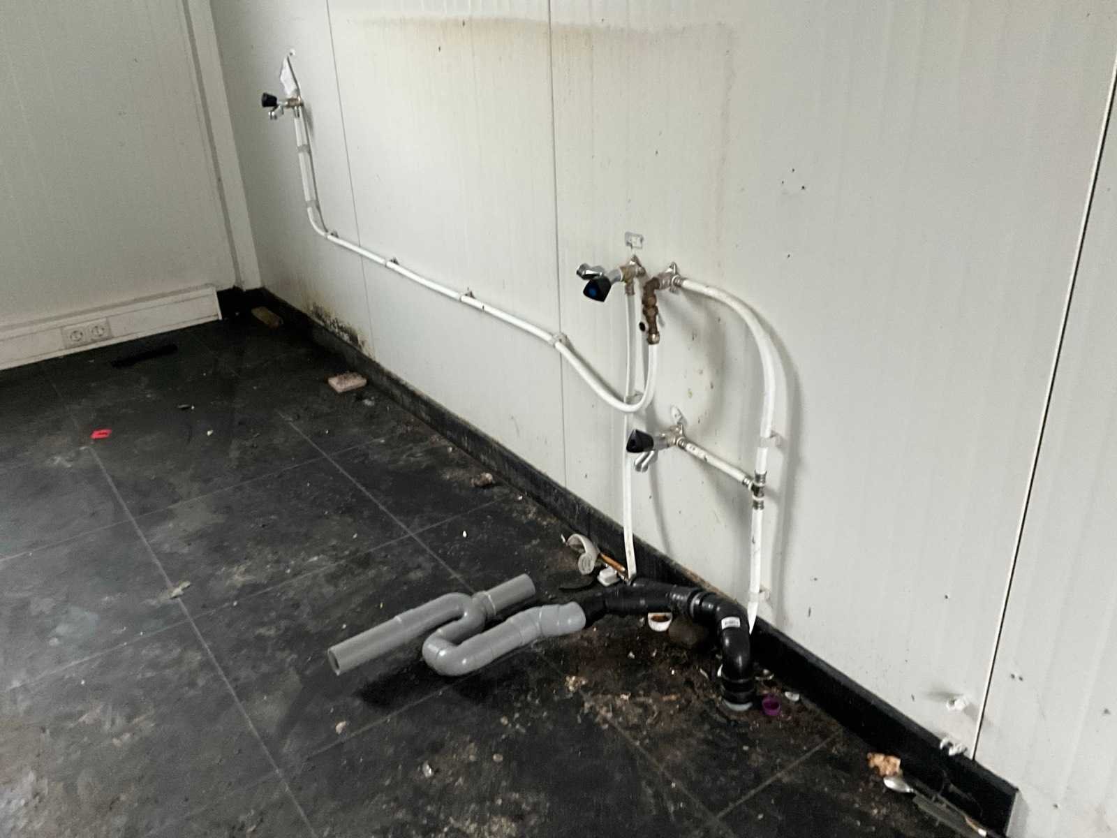 Bestaande uit: 2x geschakelde keukenunit voorzien van: 2x RVS afzuigkap, Werkbreedte circa 4500 mm en 2500 mm, airconditioning, RVS aanrecht, 10x krachtstroom aansluiting, 4x schrobput, kunststof deur en kozijn, water en gas aansluiting, groepenkast, afmeting circa: 6300x6300x3100. 1x losstaande unit voorzien: elektrische boiler “Stiebel Eltron” type: SHZ 120 Ltr LCD, krachtstroom schakel-/ groepenkast. Inclusief luchtbehandelingskast.