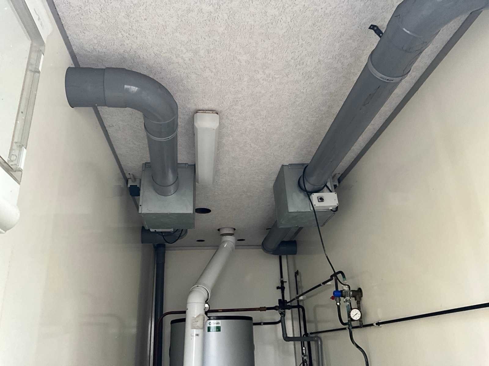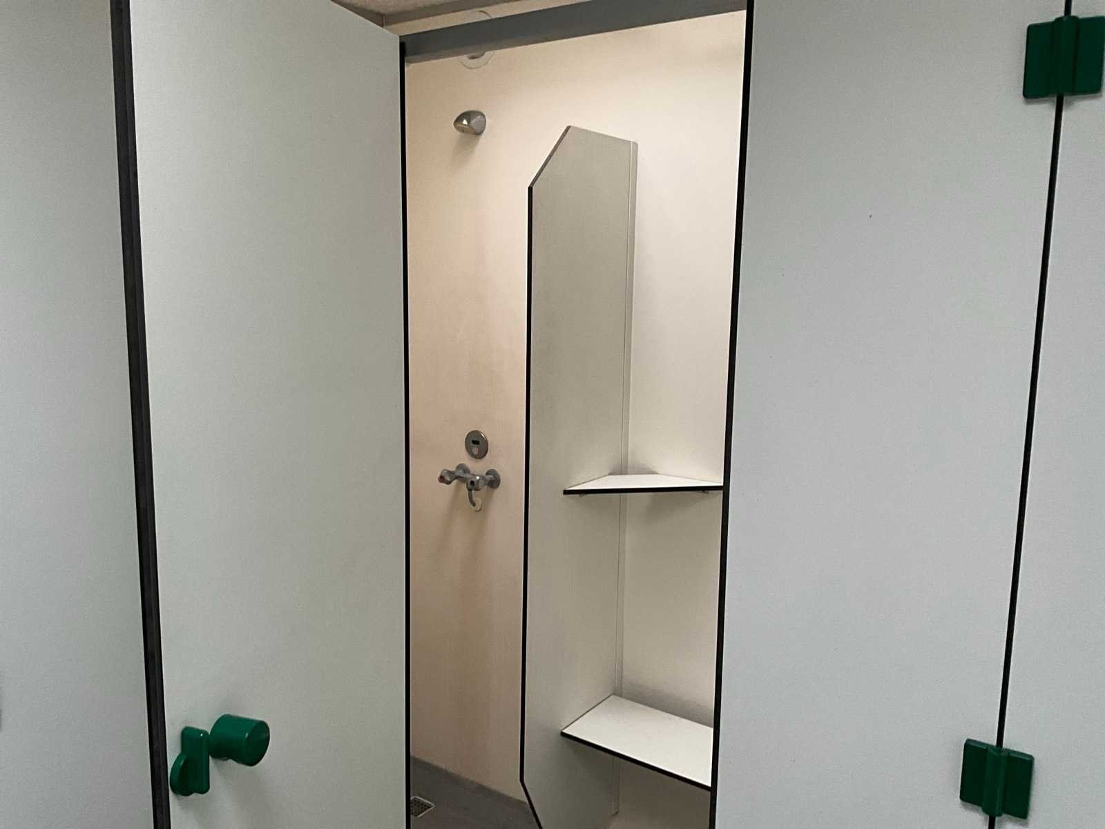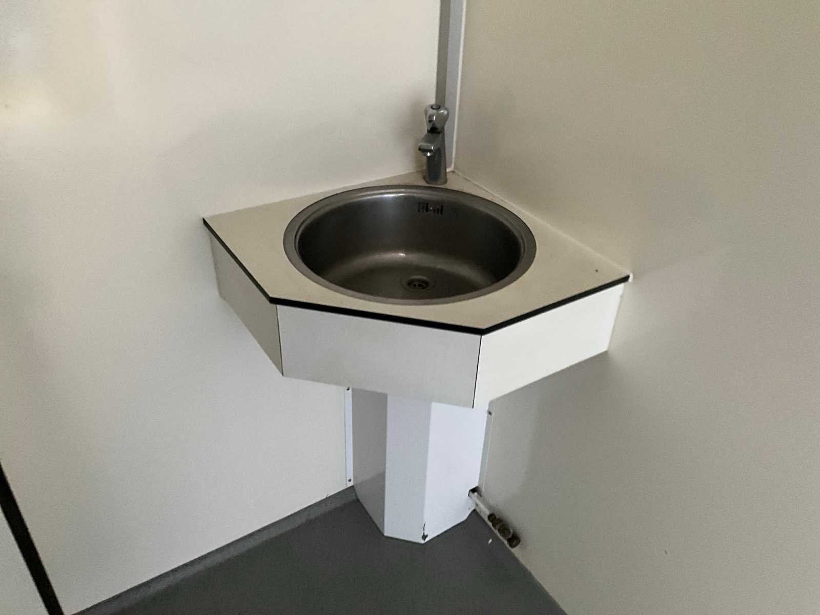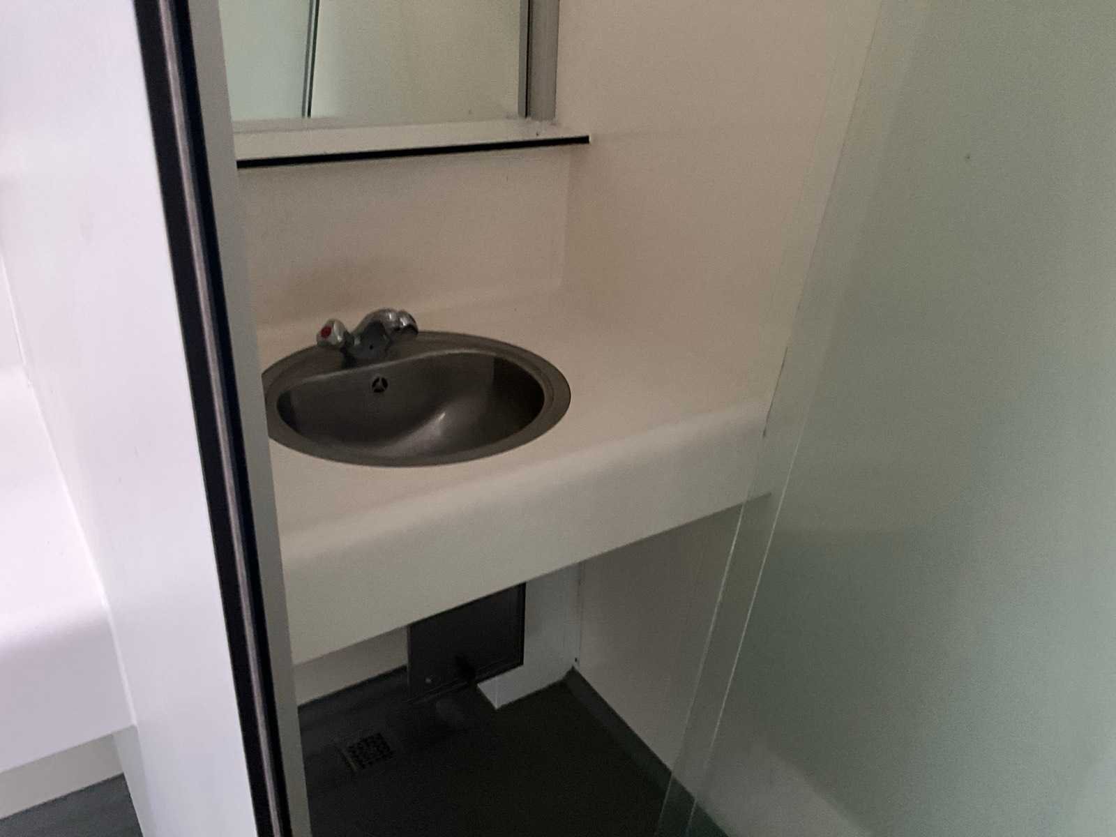 Voorzien van 2x doucheruimte 4x toiletruimte. 2X wastafel 1x binnen 1x buitenzijde let op totale breedte met buiten wastafel 450cm, AO SMITH innovo gasgestookte boiler, mechanische afzuiging Totale afmeting L: 7850mm Totale afmeting Breedte: 3800mm Totale afmeting Hoogte: 3100mm