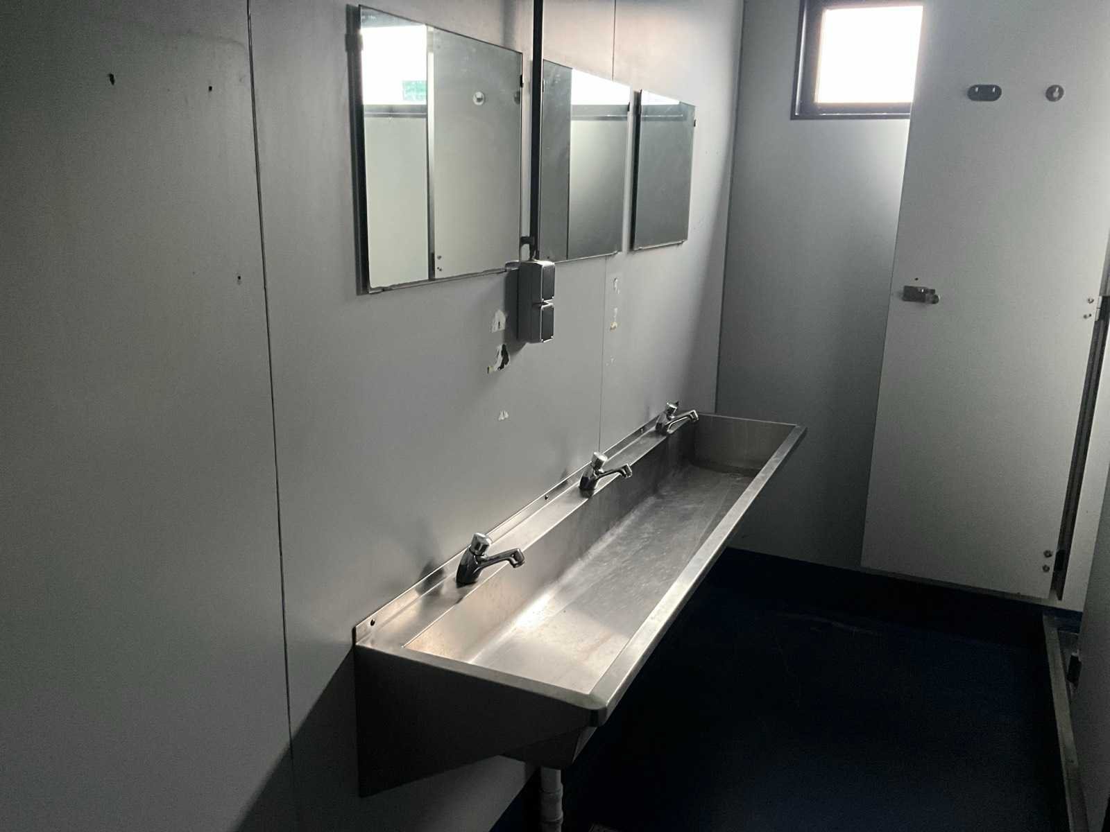Voorzien van 2x raam, 5x doucheruimte, 5x toiletruimte, 2x rvs wasbak, elektrische warmwater boiler, elektrische afzuiging. Merk: Nilesk Type: MFX4H-101A Bouwjaar: 2015 Serienummer: 442848 Lengte (ft): 40 Totale afmeting L: 12000mm Totale afmeting Breedte: 2450mm Totale afmeting Hoogte: 3000mm