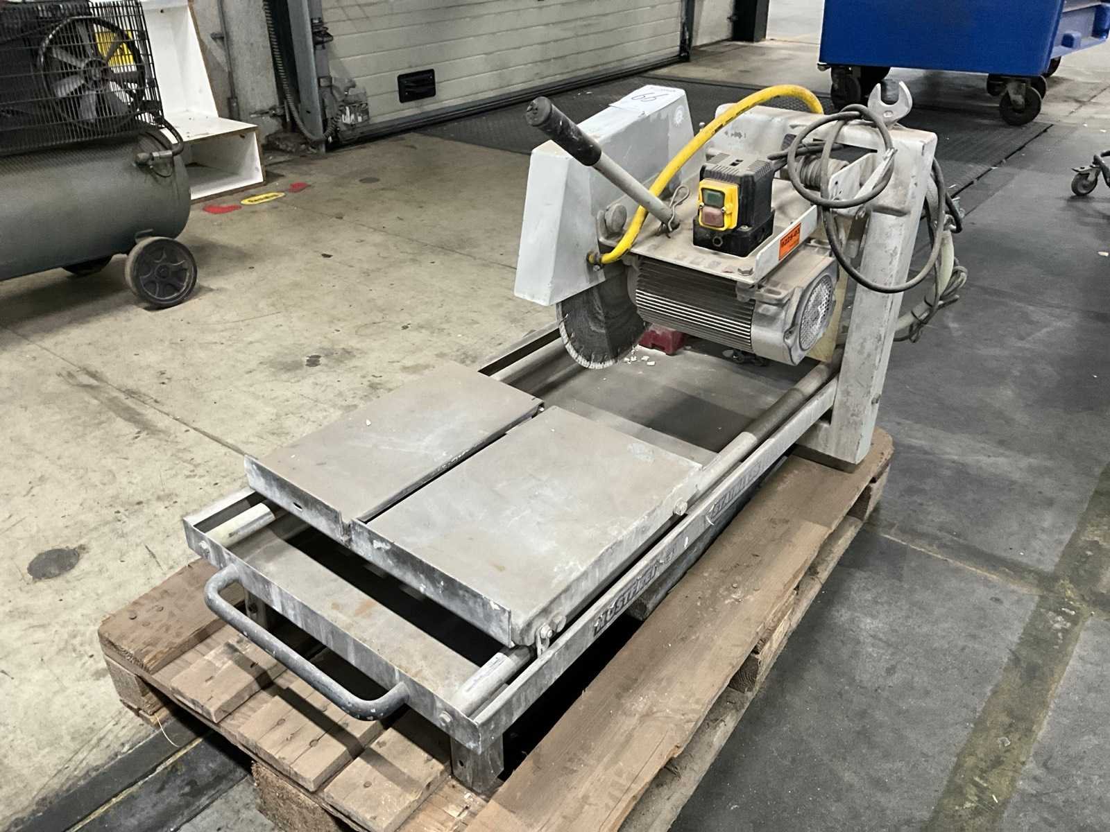 Zaagblad Ø 350 mm; aansluiting 230V Merk: Rodia Model: 406TS Lengte: 125cm Breedte: 53cm Hoogte: 70cm