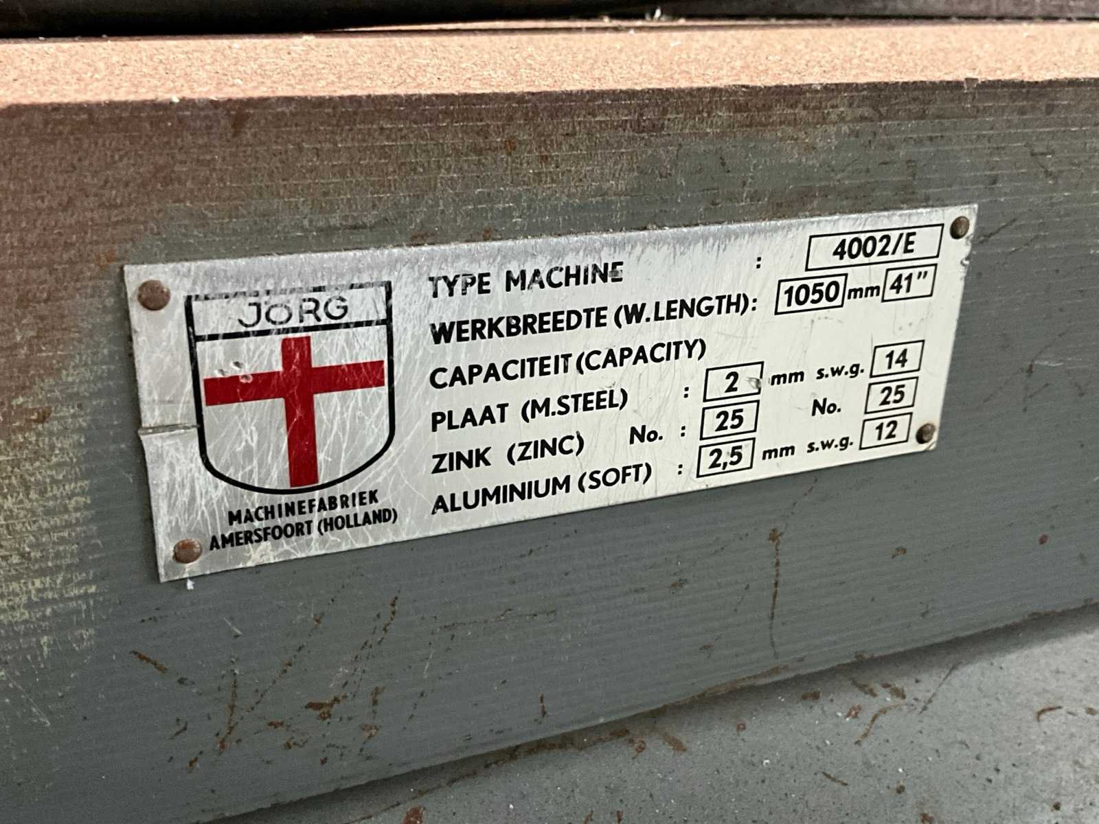 Merk: Jorg Type: 4002/E Snijlengte: 1050mm Max. plaatdikte: 2.5mm Aansluiting: 400V Afmeting l: 1400mm Afmeting b: 800mm Afmeting h: 1200mm