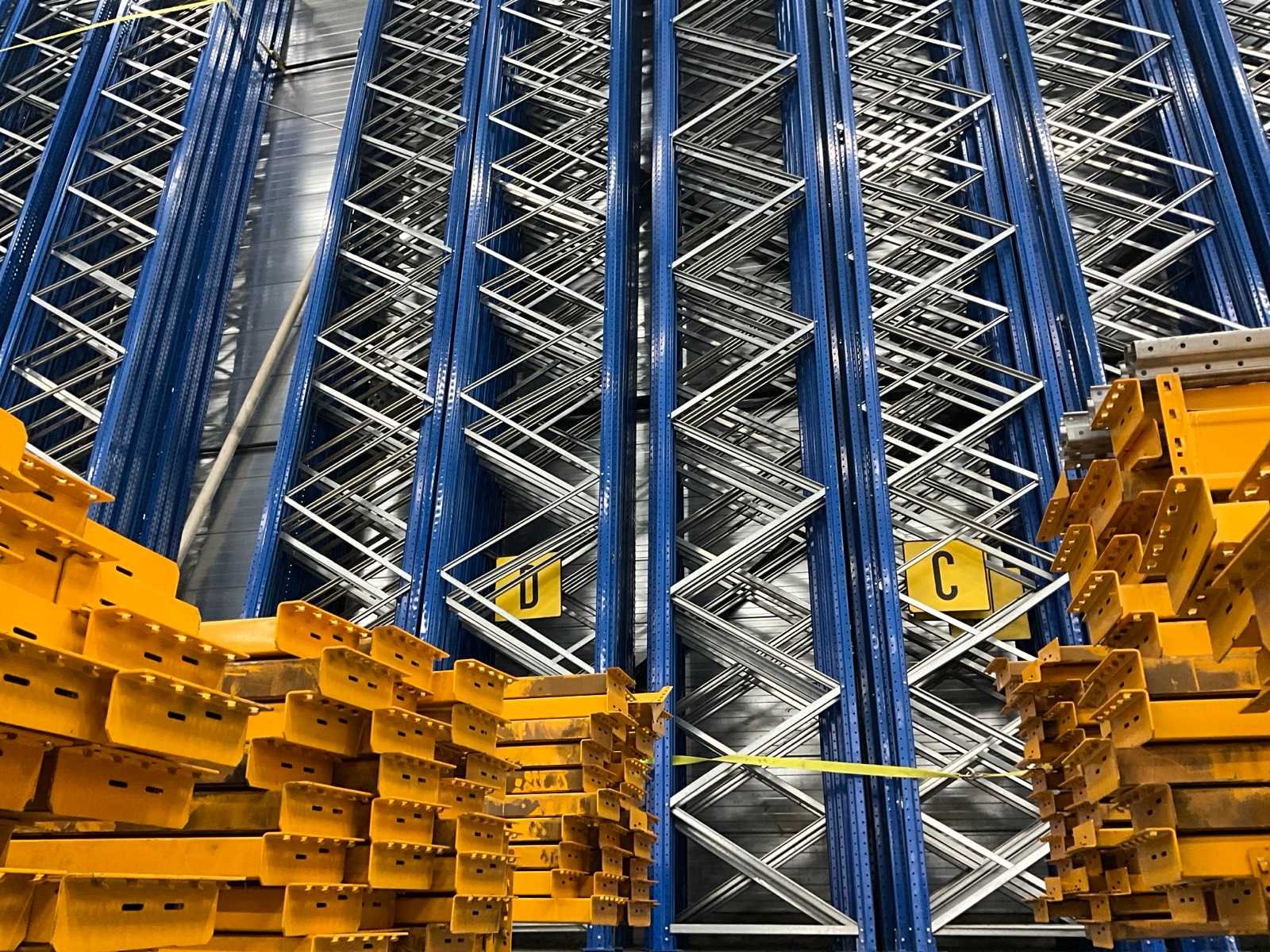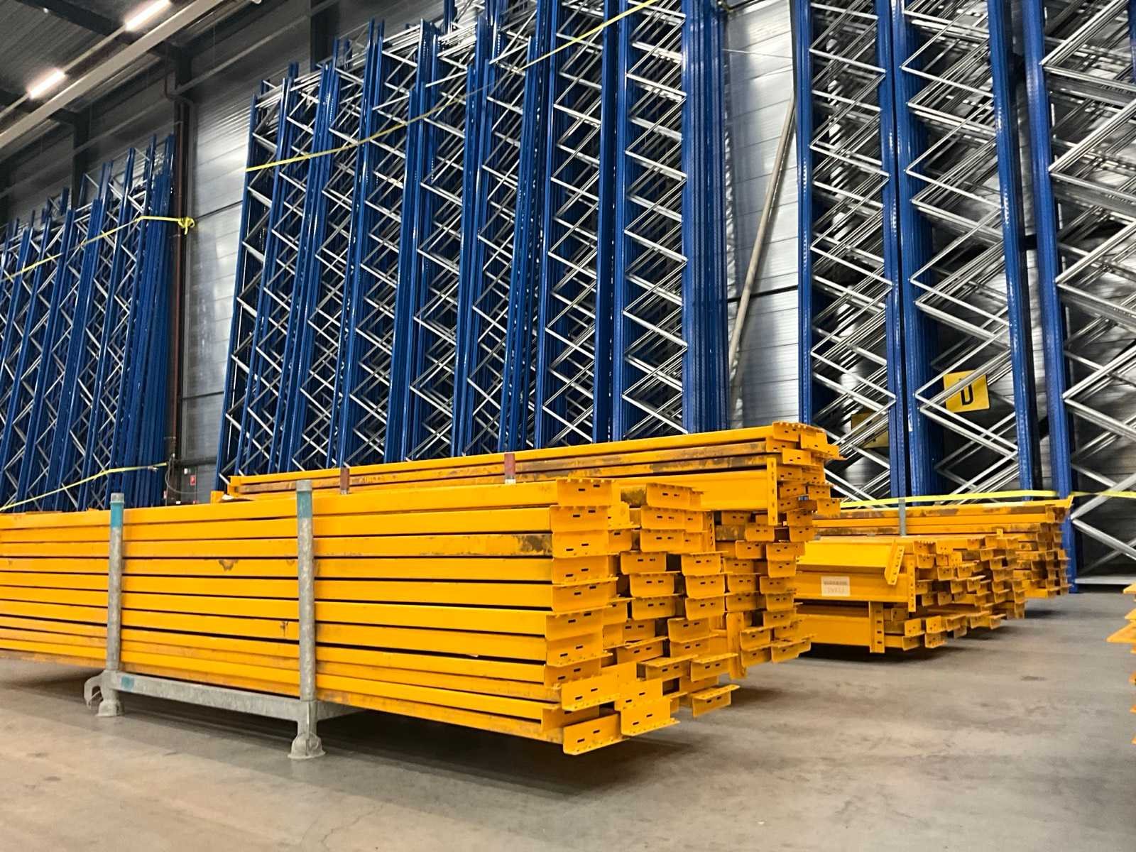 Sectie hoogte van 9500 mm tot 10500 mm, inclusief 6x transportjuk Sectie afm. b: 3450mm Sectie diepte: 1100mm Sectie afm. h: 10500mm Aantal staanders: 35 Aantal liggers: 200 Demontabel: true
