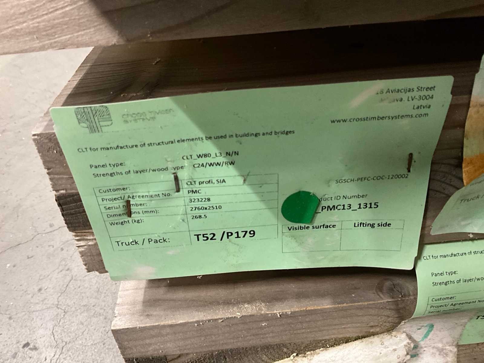 Diverse afmetingen, waaronder 2410x2780x80 mm, totale oppervlakte circa: 26 m2. Inclusief: 14x houten plaat.