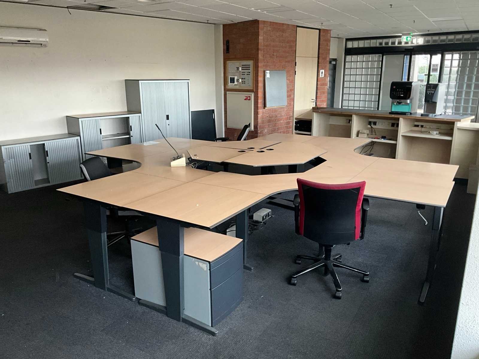 Inclusief 4x dossier kast, 4x ladeblok, 3x bureaustoel Slingerbureau: true Lengte: 200cm Breedte: 200cm Diepte: 83cm