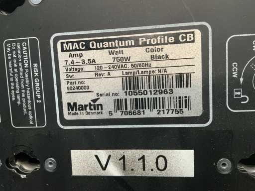 100-240VAC 750W vermogen. Voorzien van diverse toebehoren Merk: Martin Type: MAC Quantum Profile 282 DMX: true Met flightcase: true Aansluiting: 230V Totale afmeting L: 950mm Totale afmeting Breedte: 580mm Totale afmeting Hoogte: 880mm Eigen gewicht: 150kg