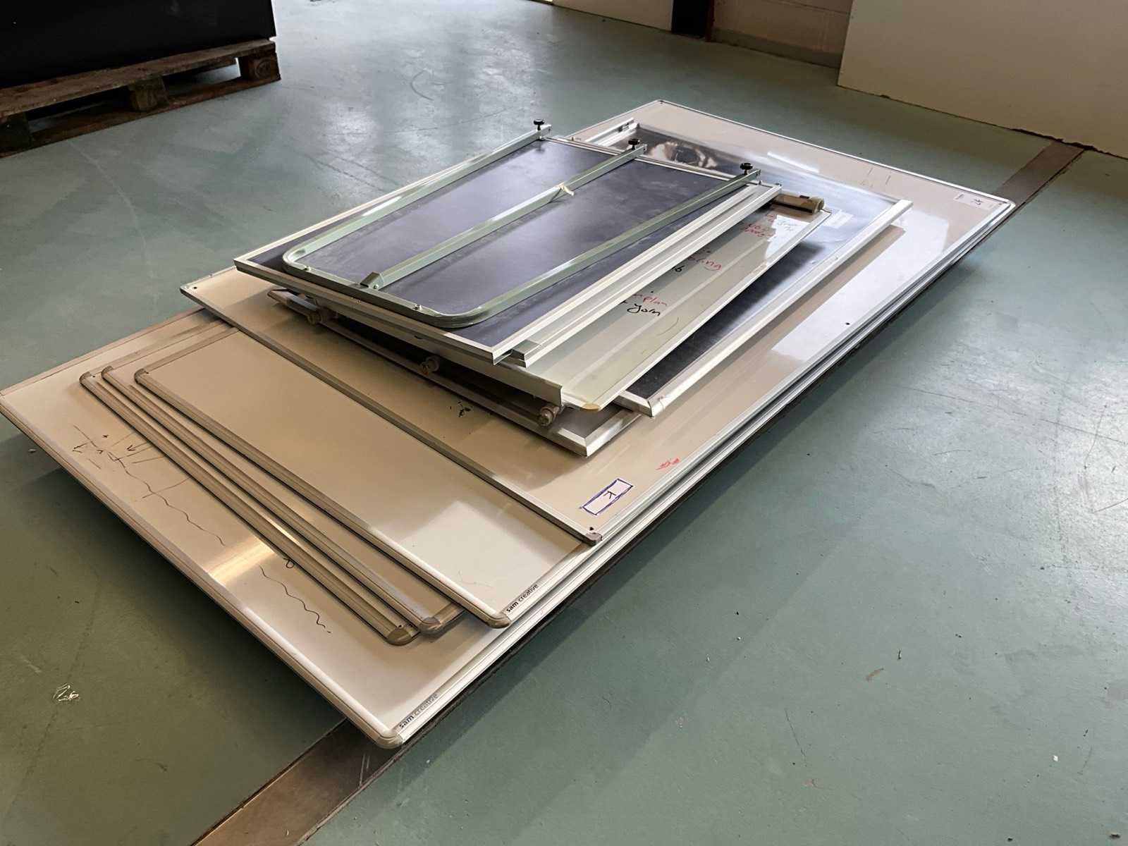 Bestaande uit 5x whiteboard diverse afmetingen, 4x flipover
