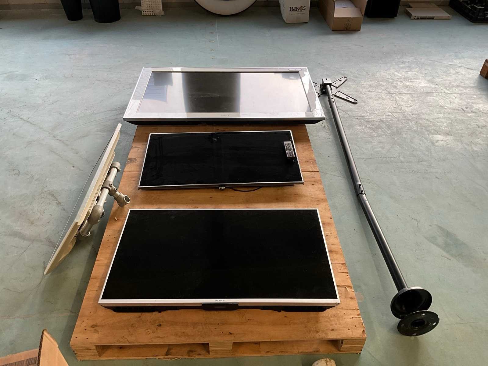 Diverse afmetingen en modellen. 1X Sony LDM-E521, 1X Sony KDL-43W756C, 1x Samsung UE32J4510AWXXN,1X Samsung UE40F7000SL. Zonder voedingskabels en afstandsbedieningen