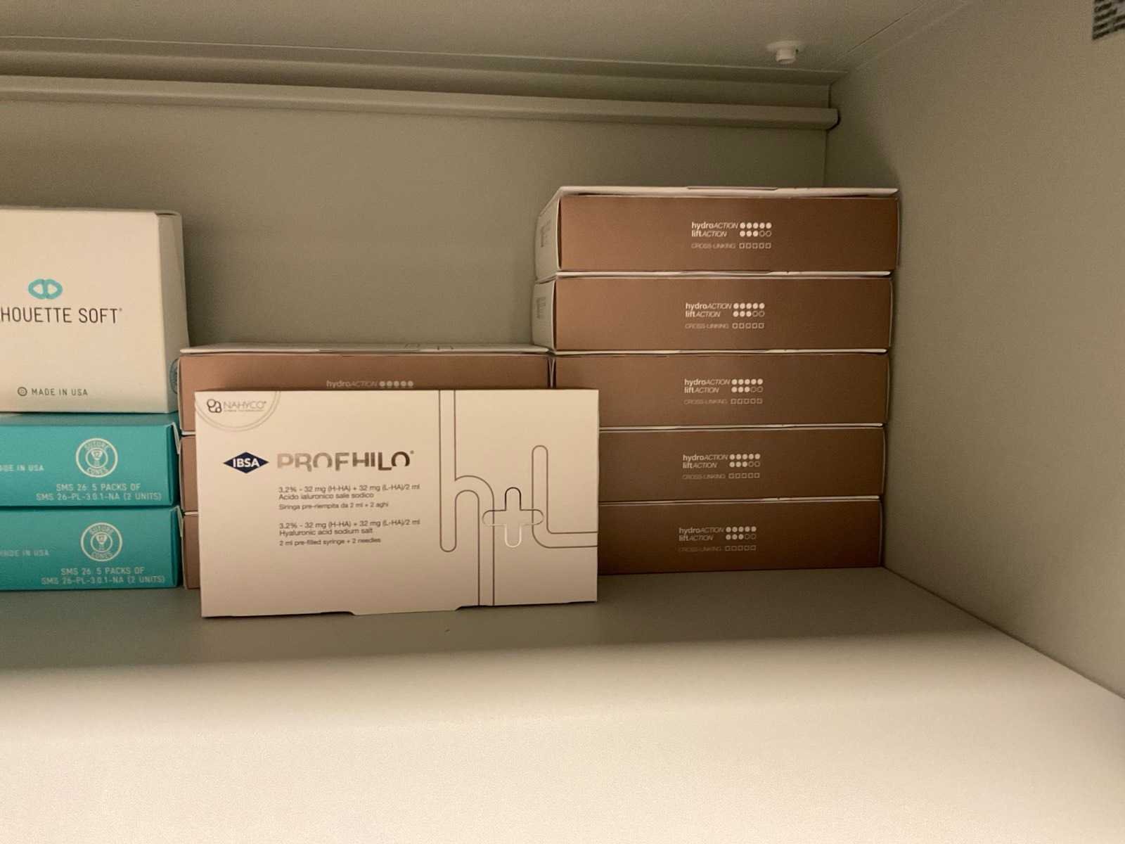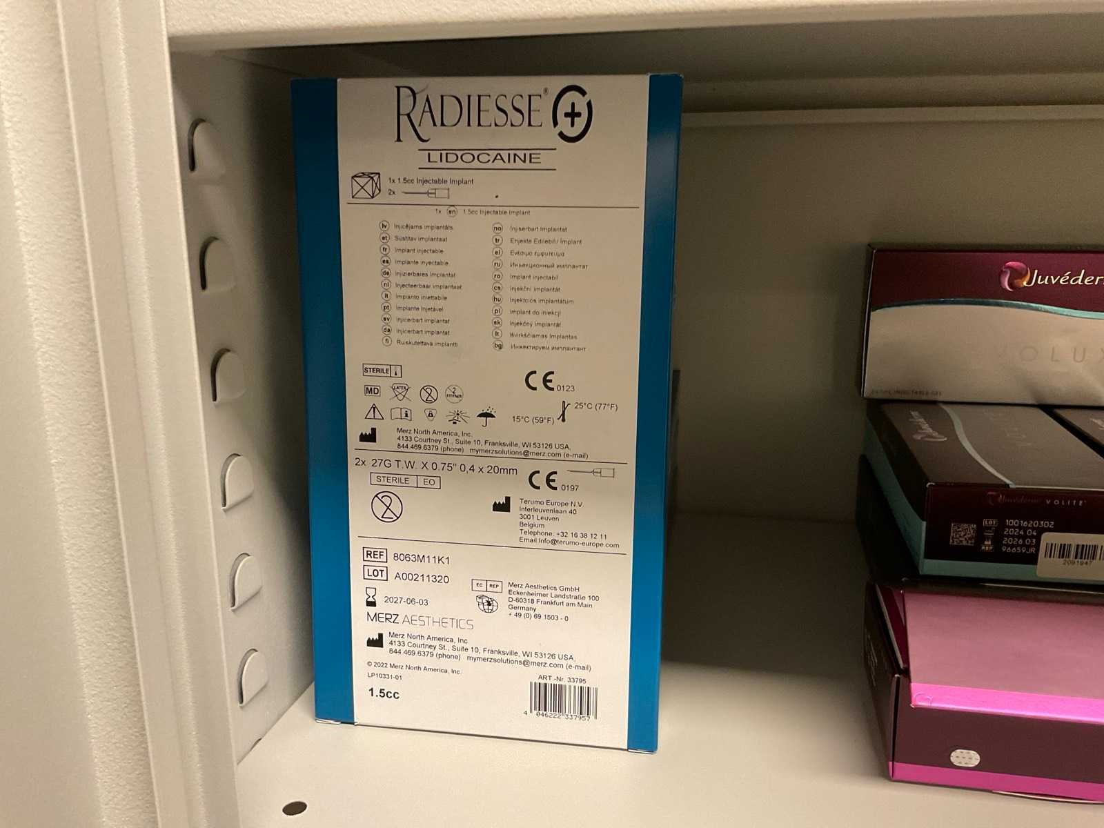 Inhoud kast bestaande o.a. Lidocaine en gel injectables Merk: o.a HArmonyCa