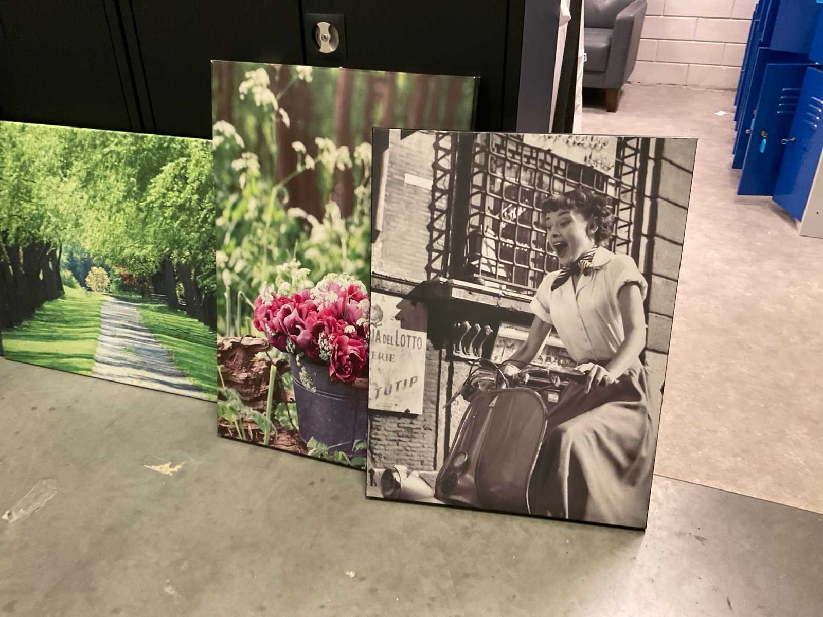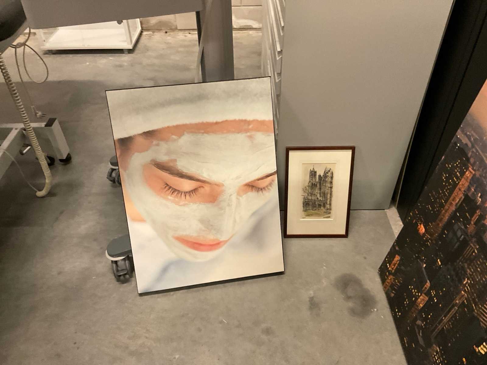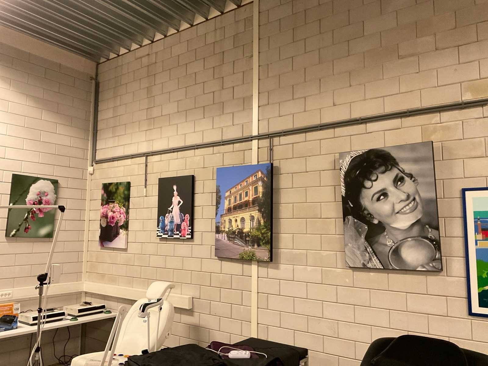 In lijst en op canvas is verschillende maten. Kavels hangen op hoogte, geen hulpmiddelen aanwezig.