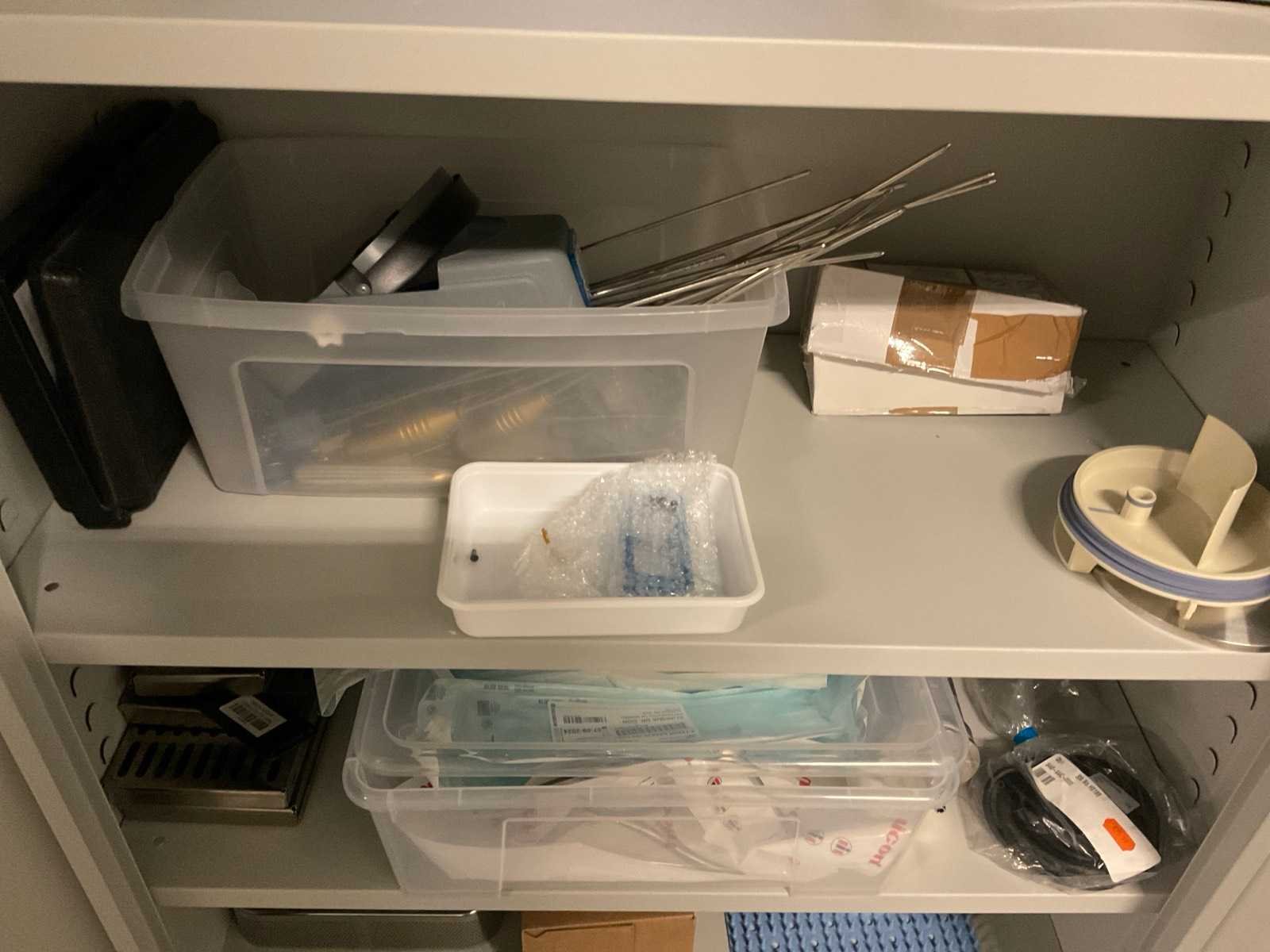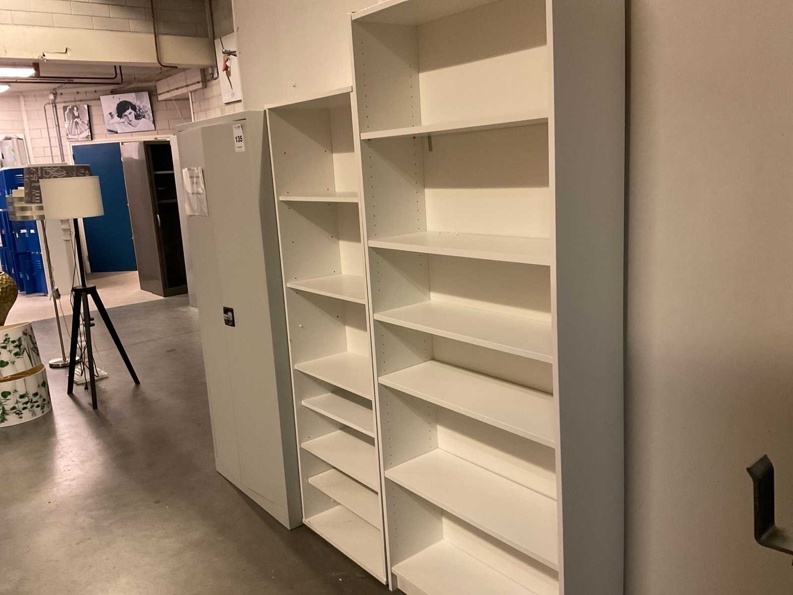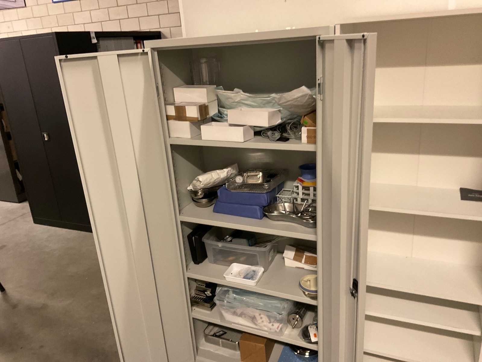 Met 2 boekenkasten. 80 x 28 x 200 cm en 60 x 28 x 180 cm. Dossierkast inclusief inhoud bestaande uit diverse medische benodigdheden. Breedte: 80cm Hoogte: 178cm Diepte: 39cm