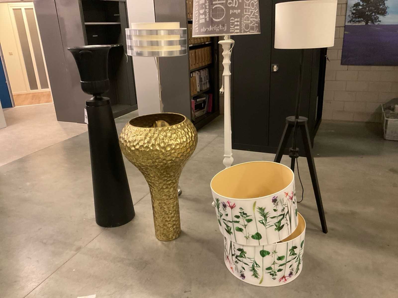 Waaronder 2 bloemvazen 2 lampenkappen en 3 staande lampen