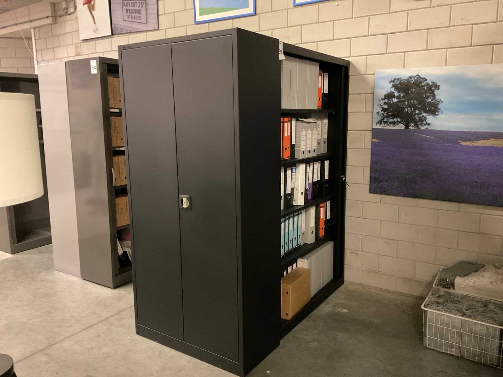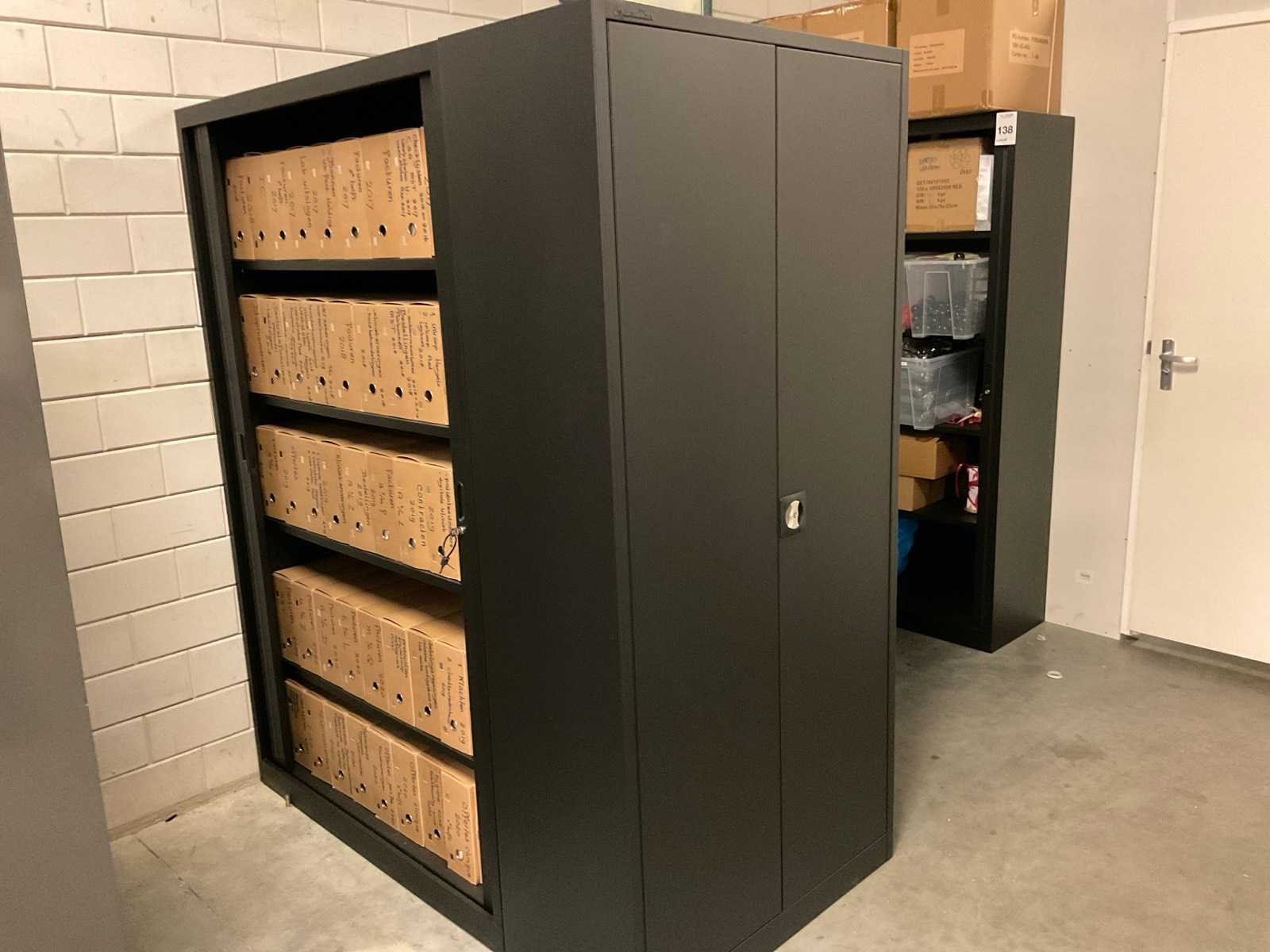 Inhoud niet inbegrepen, 1 kast 93 cm breed, zit op slot, sleutel ontbreekt. Breedte: 120cm Hoogte: 195cm Diepte: 45cm