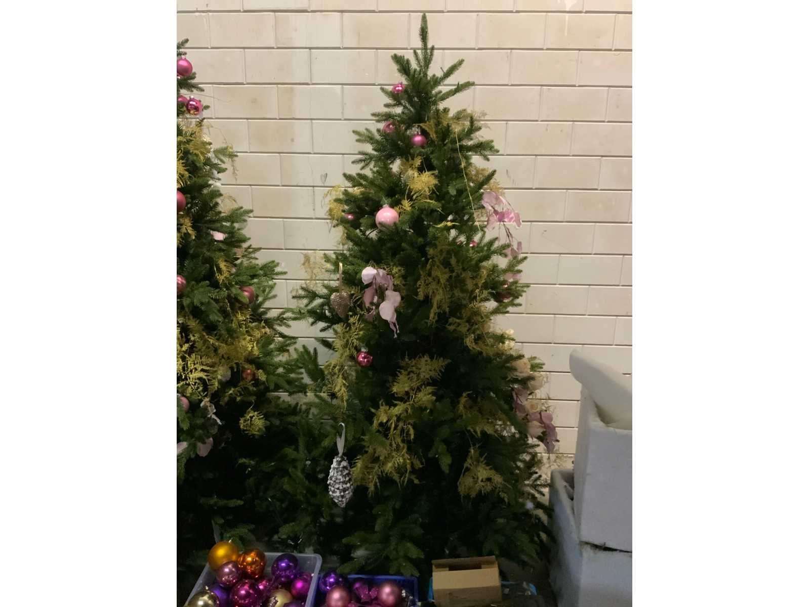 Bestaande uit 2 kunstkerstbomen met versiering hoogte ca. 210 cm Diverse kerstversiering, windlichten