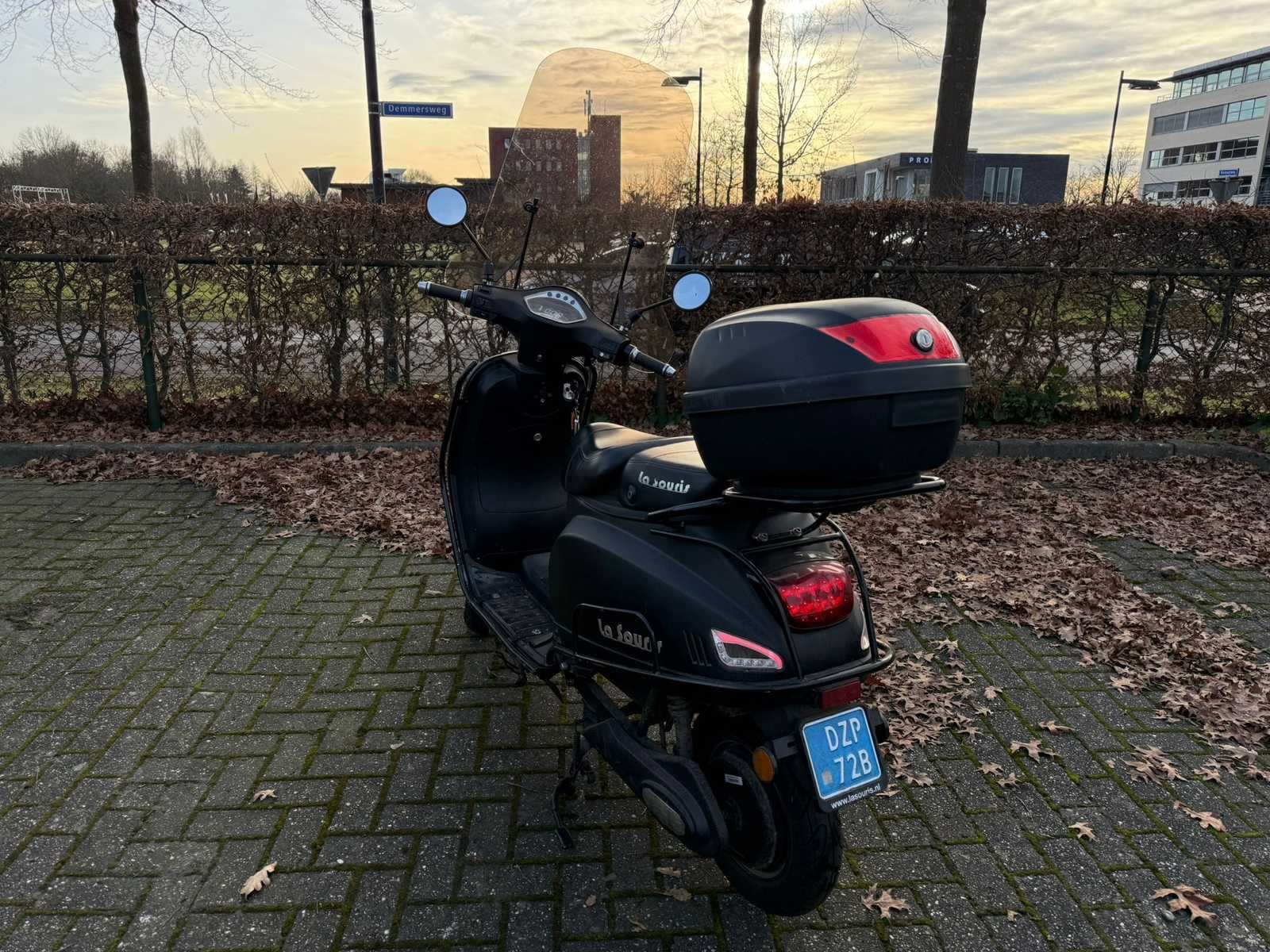 Voorzien van koffer, met lader. Werkend getest Merk: La Souris Type: Snorscooter Model: E-sourini Kleur: Mat zwart Bouwjaar: 2020 Kenteken: DZP-72-B Datum eerste toelating: 04-08-2020 Snelheid: 25km/h Afgelezen kilometerstand: 2023.6km
