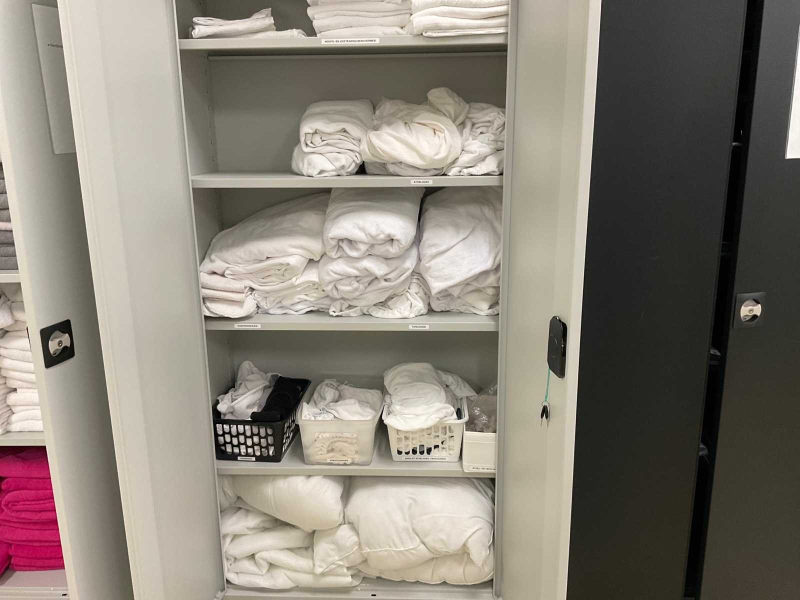 Inclusief inhoud bestaande uit handdoeken, dekens tafel en stoelhoezen Merk: Manutan Breedte: 93cm Hoogte: 195cm Diepte: 43cm
