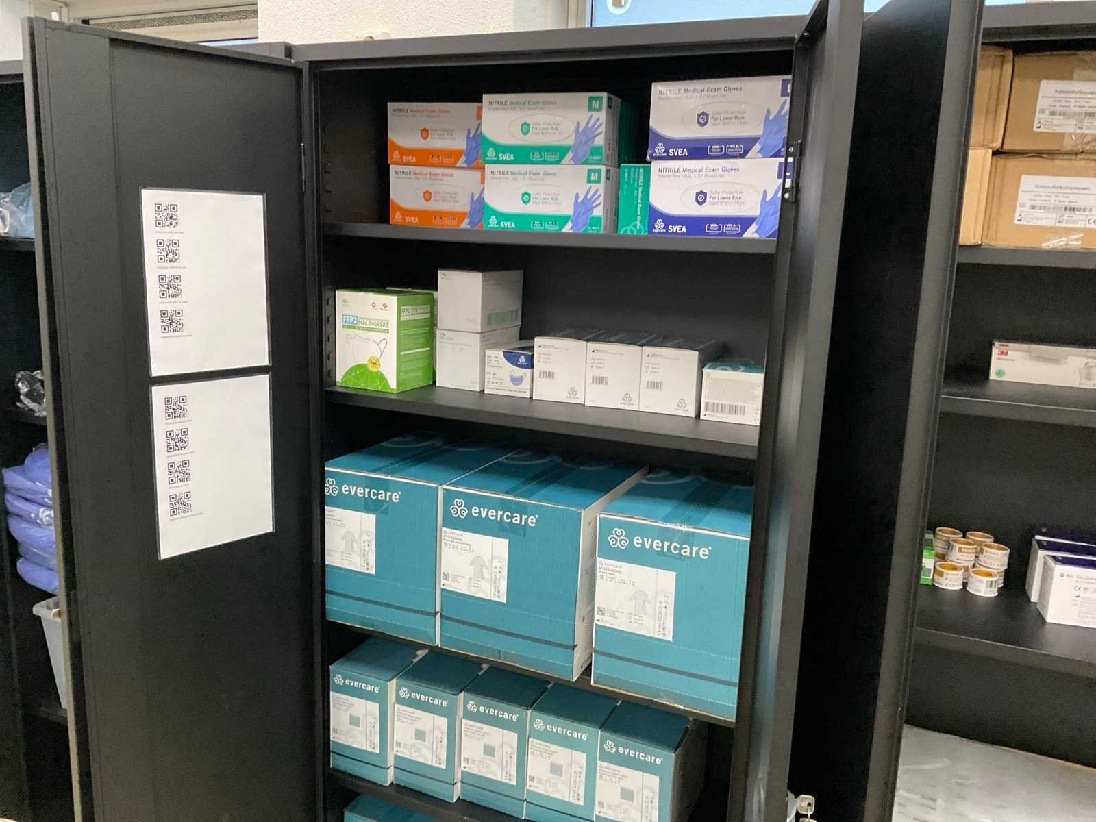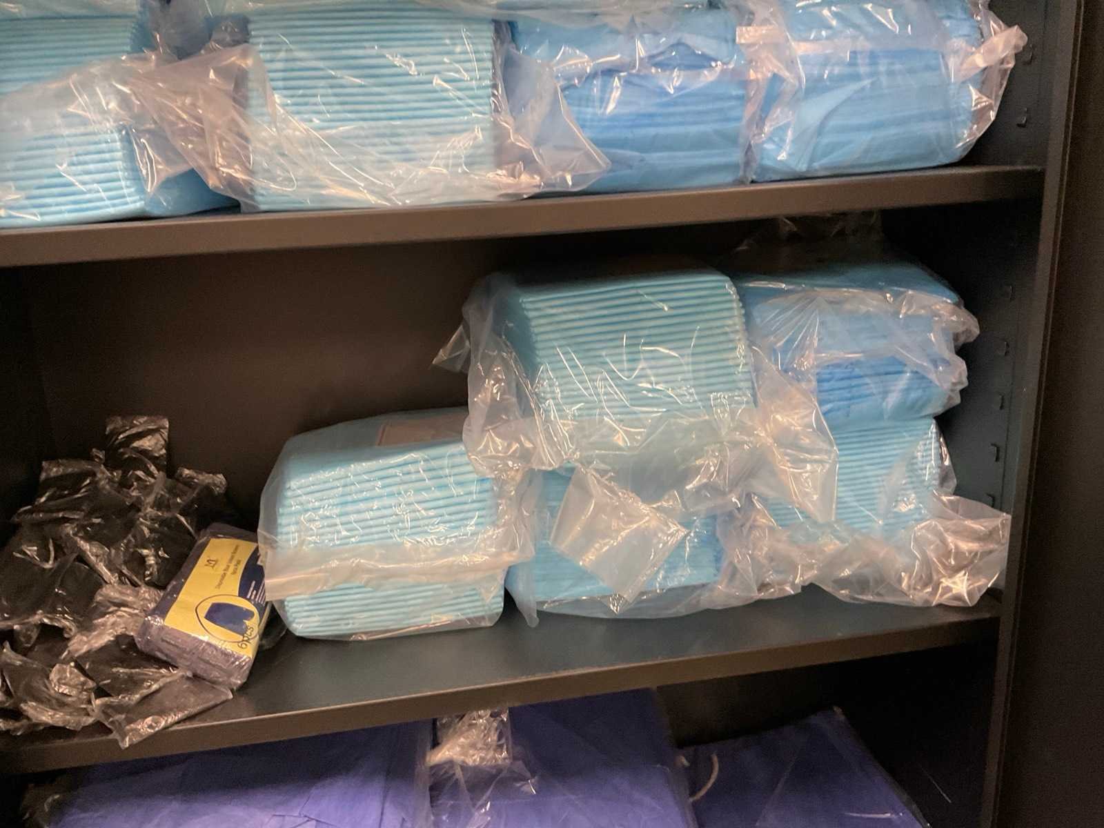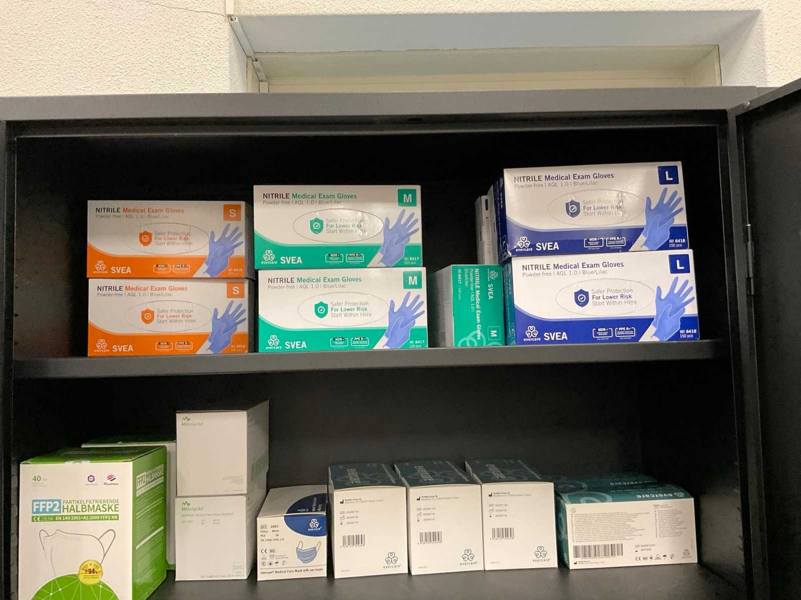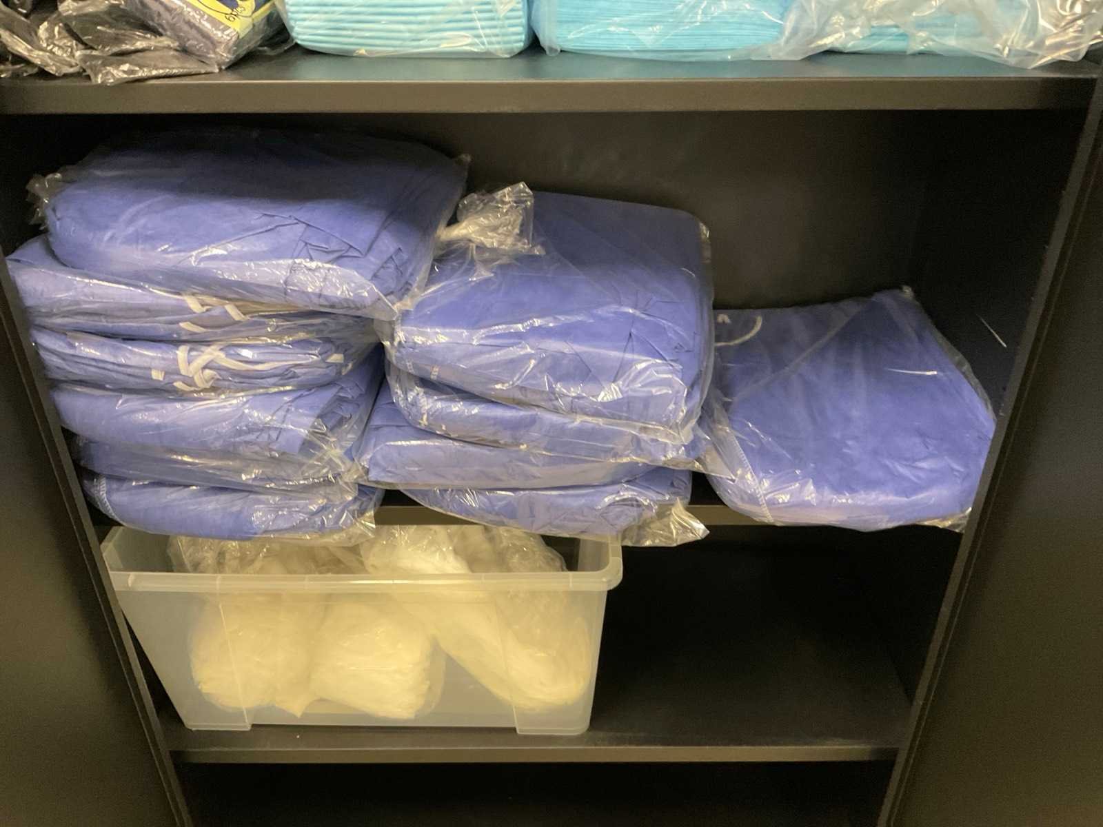 Inhoud bestaande o.a. uit wegwerp handschoenen, ondergoed, haarnetjes en onderlakens. Merk: Manutan Breedte: 93cm Hoogte: 195cm Diepte: 43cm