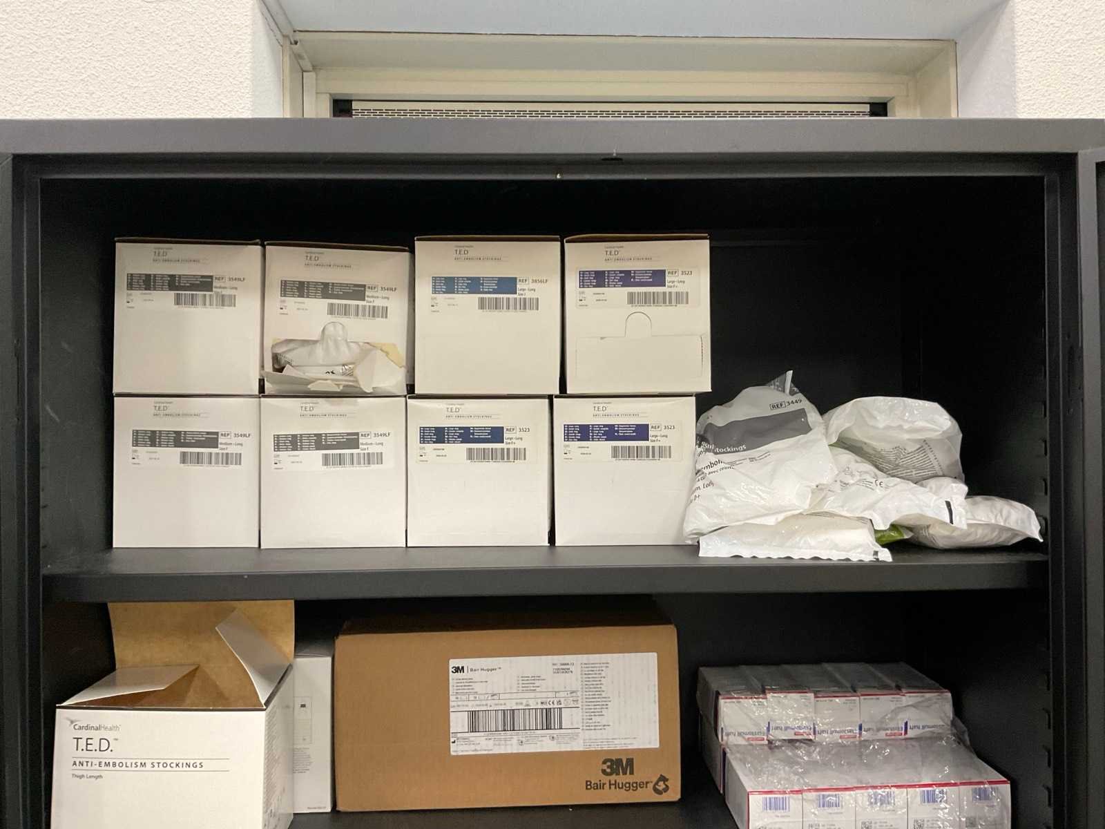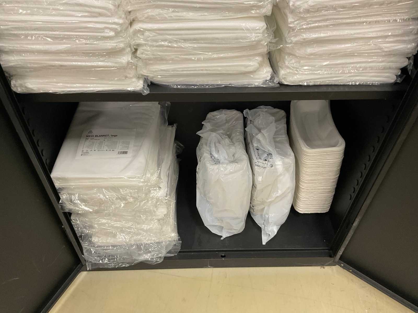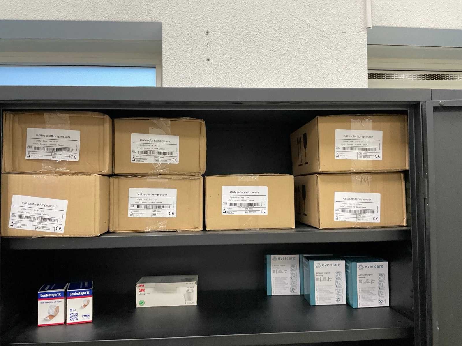 Inclusief inhoud bestaande uit wegwerp beenwarmers, lakens, spuugbakjes, leukotape en andere verbindmaterialen Merk: Manutan Breedte: 93cm Hoogte: 195cm Diepte: 43cm