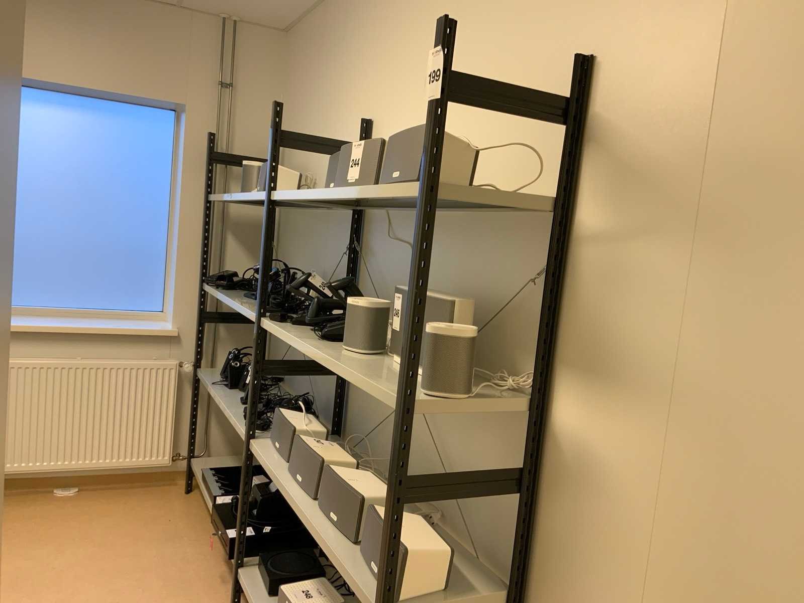 2 secties metalen stelling voorzien van 8 legborden De inhoud is niet inbegrepen. Lengte: 254cm Breedte: 40cm Hoogte: 200cm