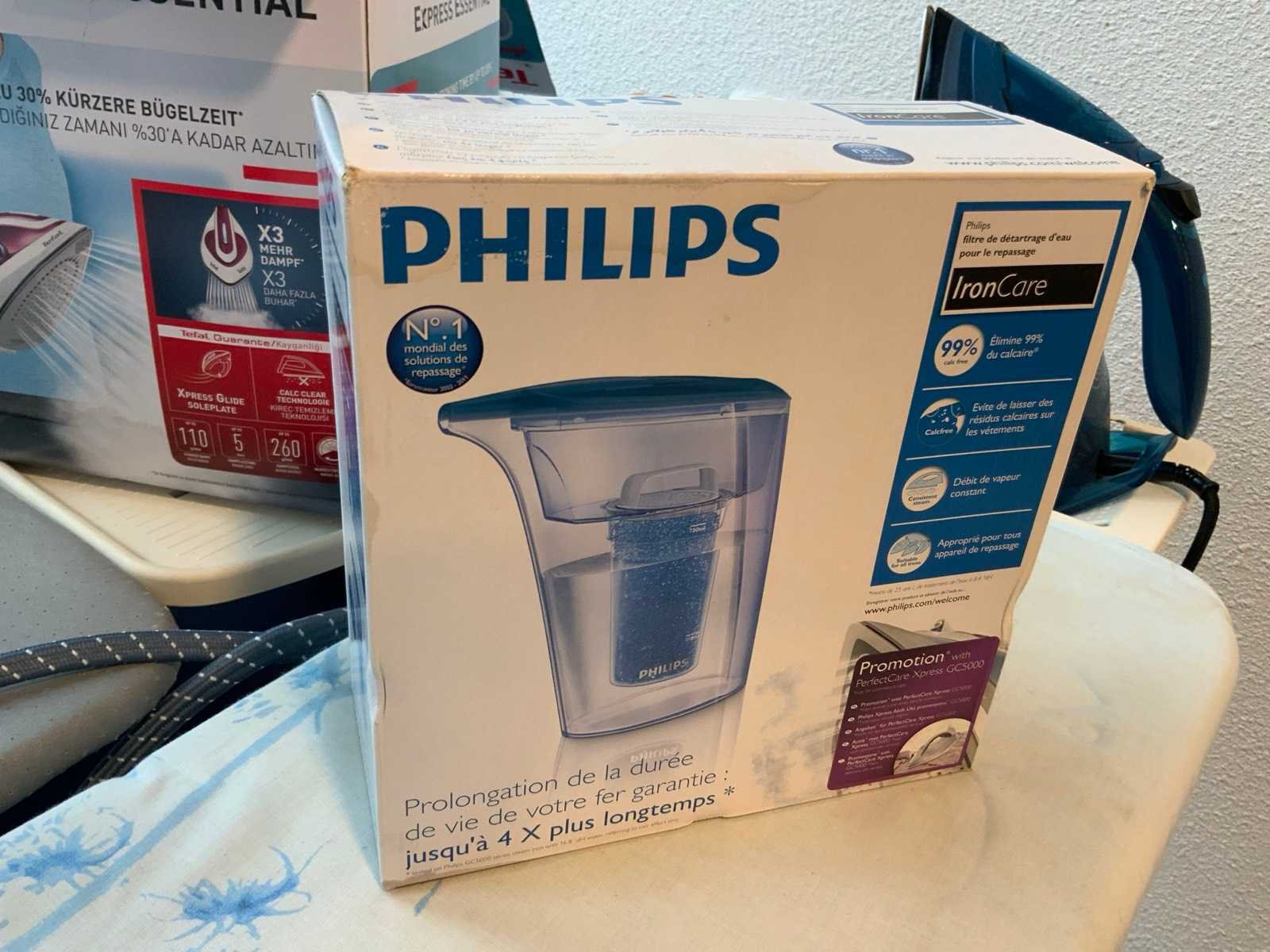 Bestaande uit 2 strijkplanken en Tefal pro express care, Tefal express anti-calc, Philips azur advanced Alsmede siegel afm ca. 45x60 cm Merk: Tefal Geïntegreerd antikalksysteem: true