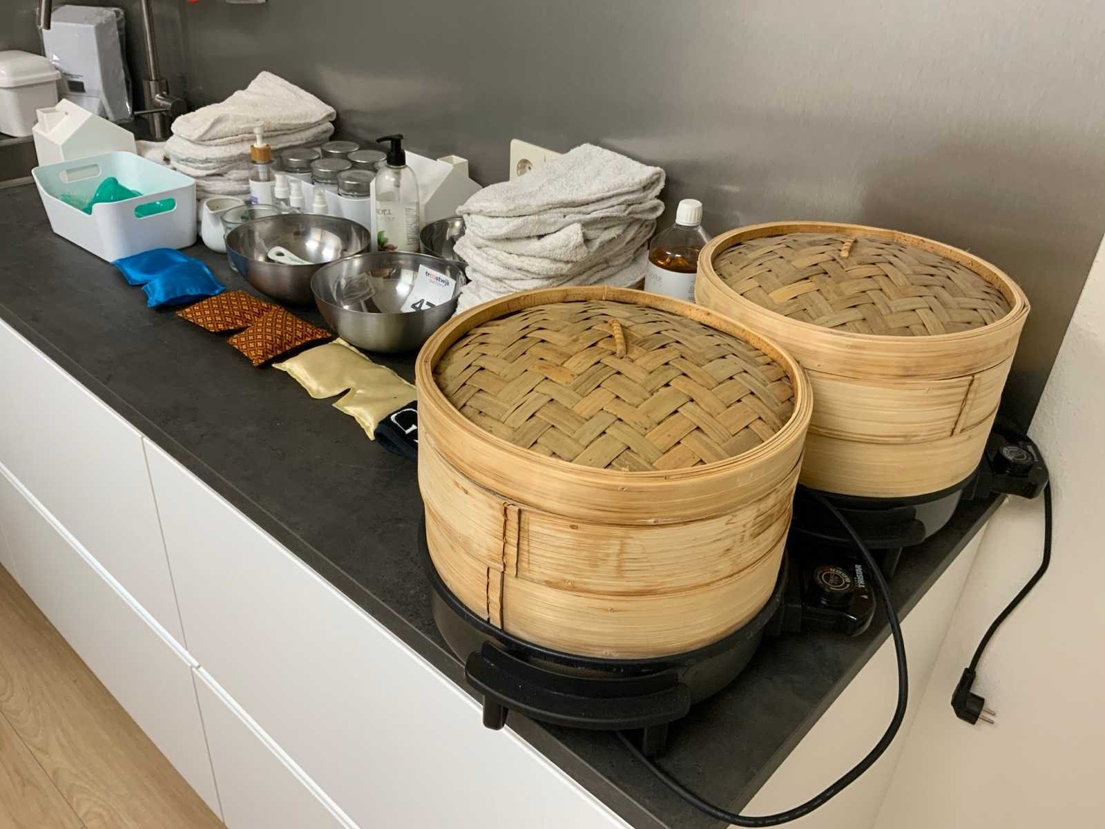 Bestaande uit Tristar warmhoudpan en diverse doeken, spatels, zout en overige diverse