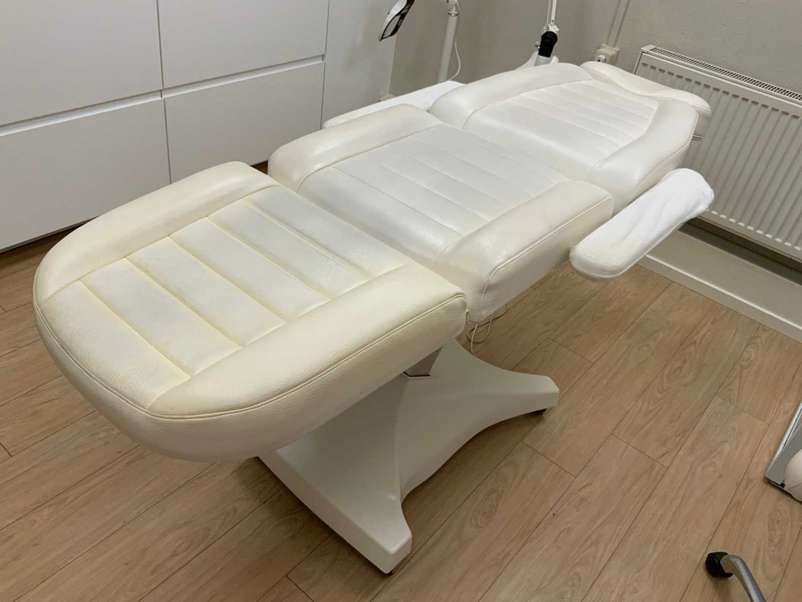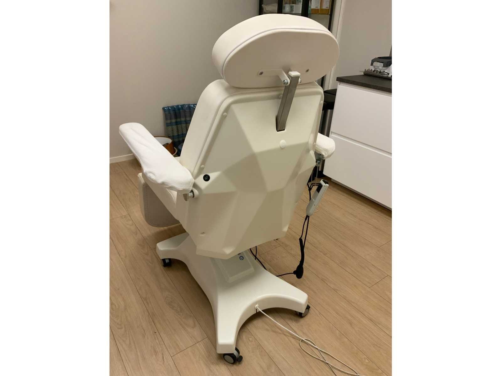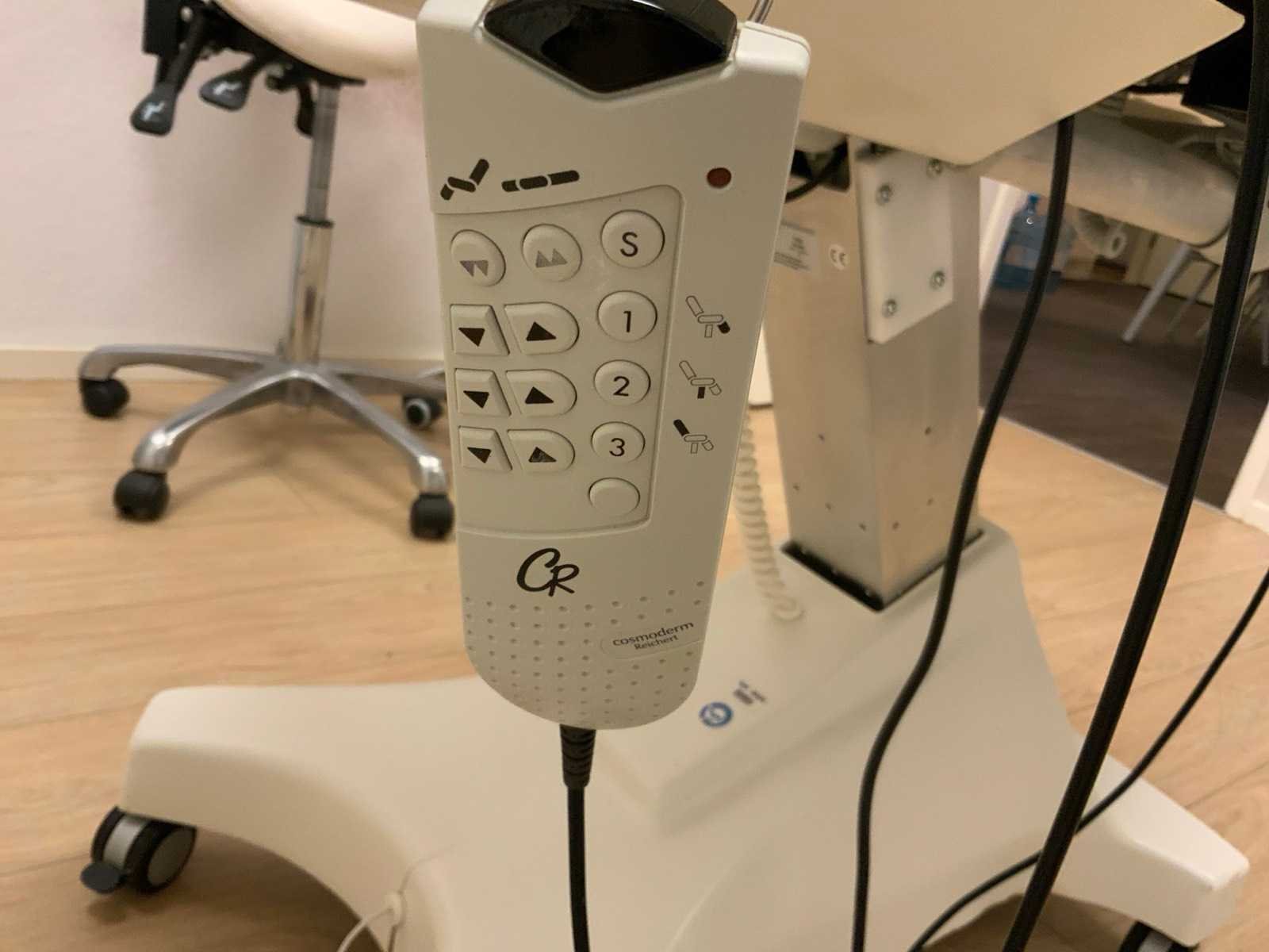 Elektrisch verstelbare behandelstoel voorzien van verwarming, uitneembare hoofdsteun en armleuningen Verrijdbaar Merk: Cosmoderm Model: D3M