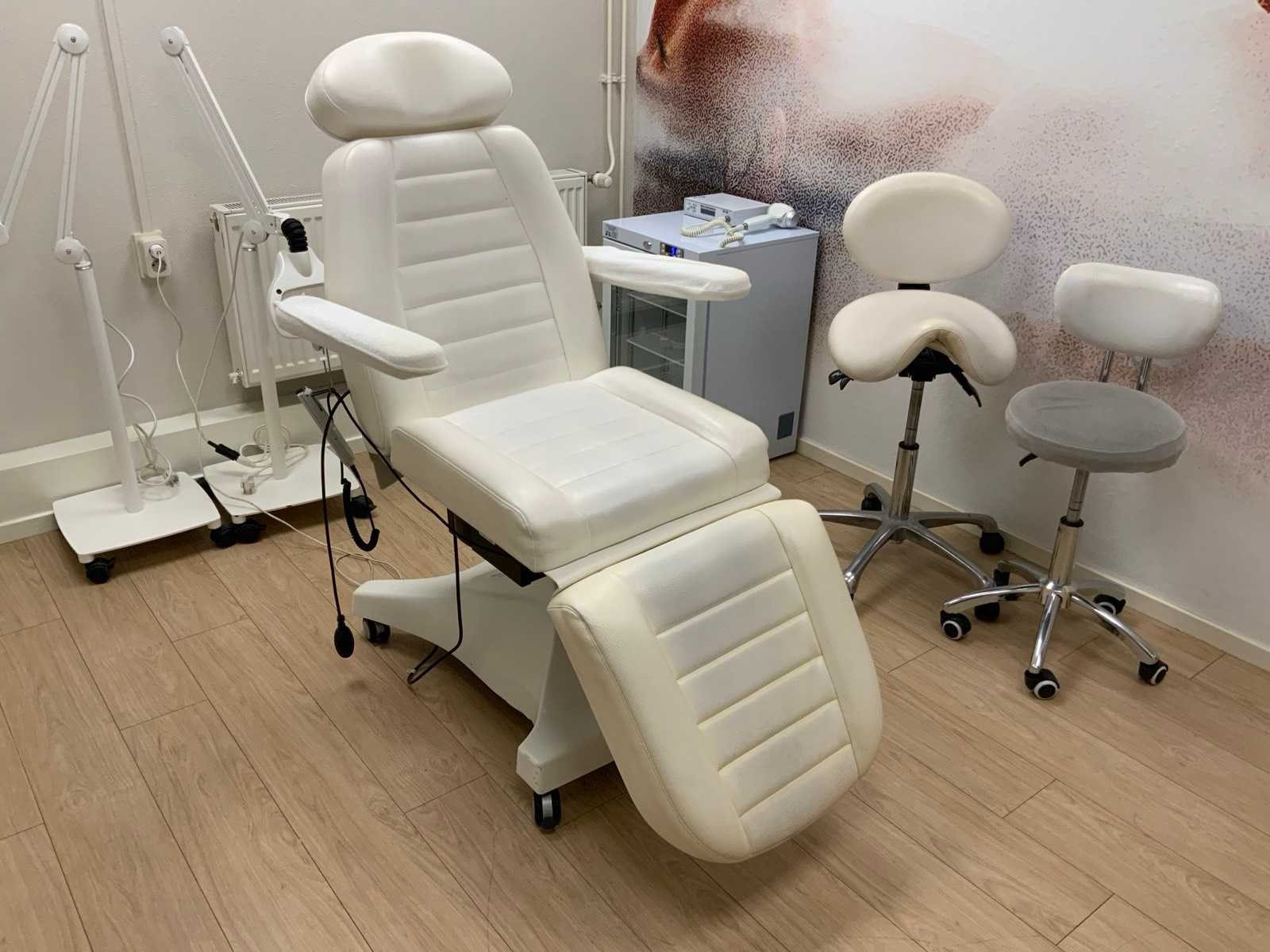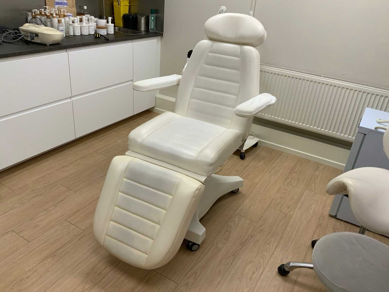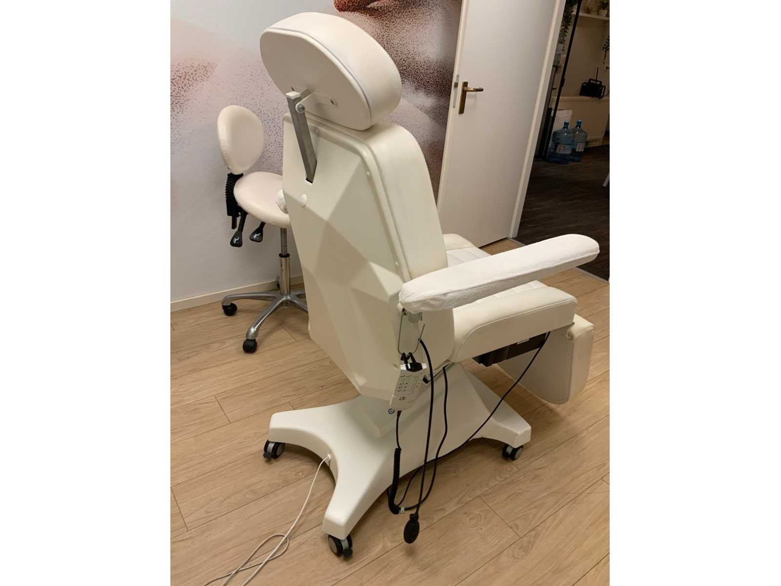 Elektrisch verstelbare behandelstoel voorzien van verwarming, uitneembare hoofdsteun en armleuningen Verrijdbaar Merk: Cosmoderm Model: D3M