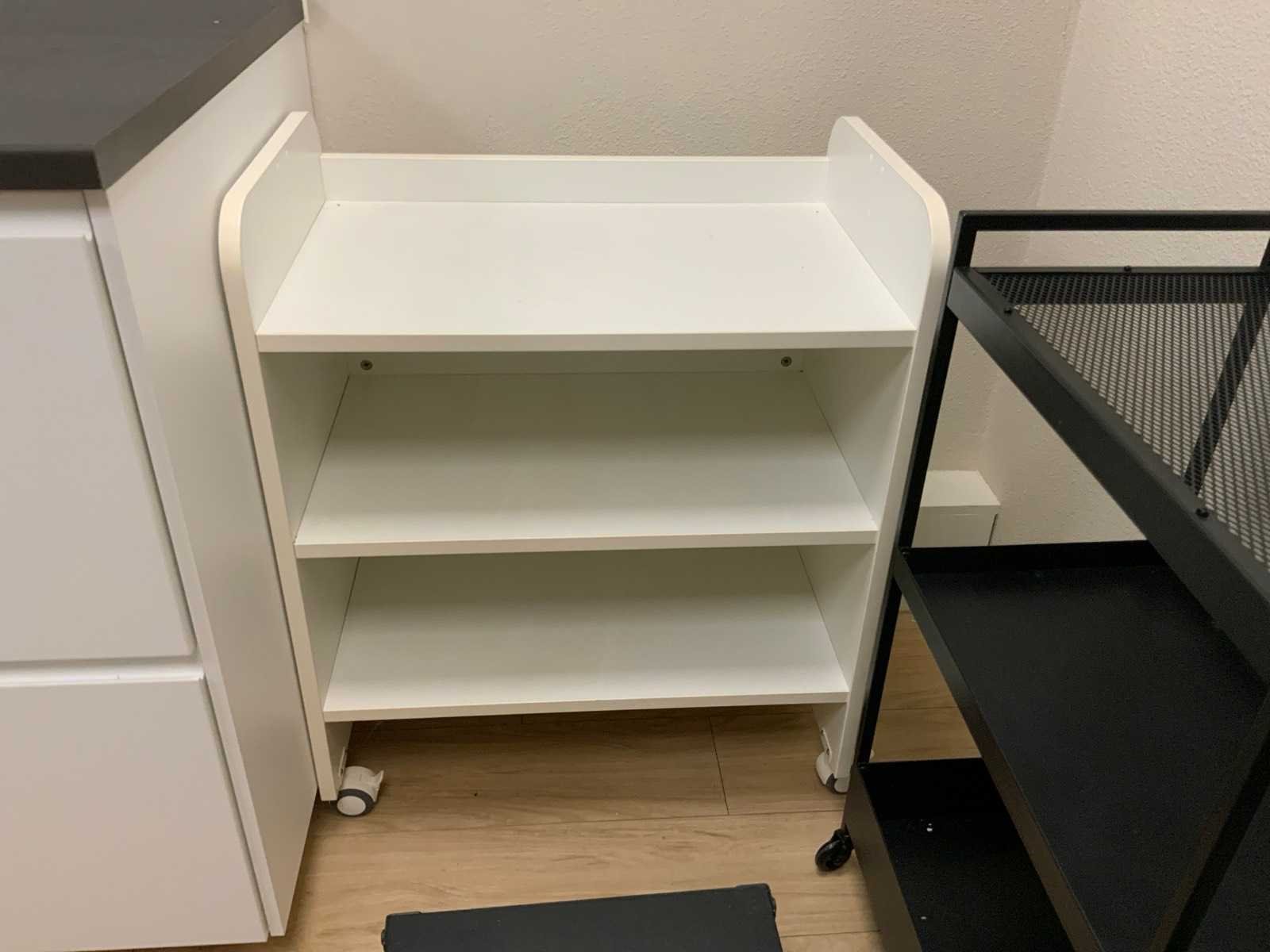 Diverse verrijdbare karren waarvan 1 voorzien van glazen legborden Diverse afmetingen waaronder metalen kar afm ca. 50x30x84 cm Lengte: 67cm Breedte: 41cm Hoogte: 81cm