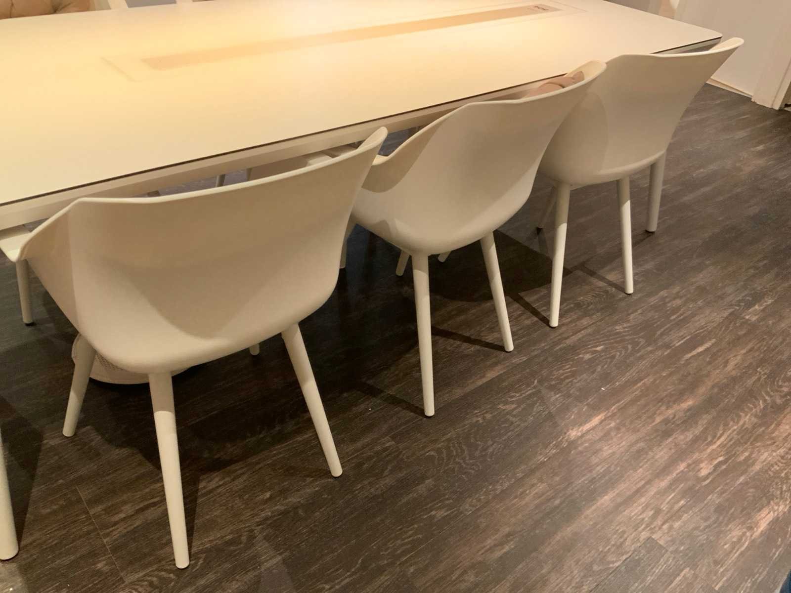 Kunststof tafel met 6 kunststof kuipstoelen met kussentjes Alsmede lamp Dit kavel dient door de koper zelf gedemonteerd te worden en elektra dient afgedopt te worden. Koper dient ook zelf te zorgen voor de benodigde gereedschappen, transport- en/of verpakkingsmateriaal Merk: Hartman Lengte: 240cm Breedte: 100cm Hoogte: 75cm