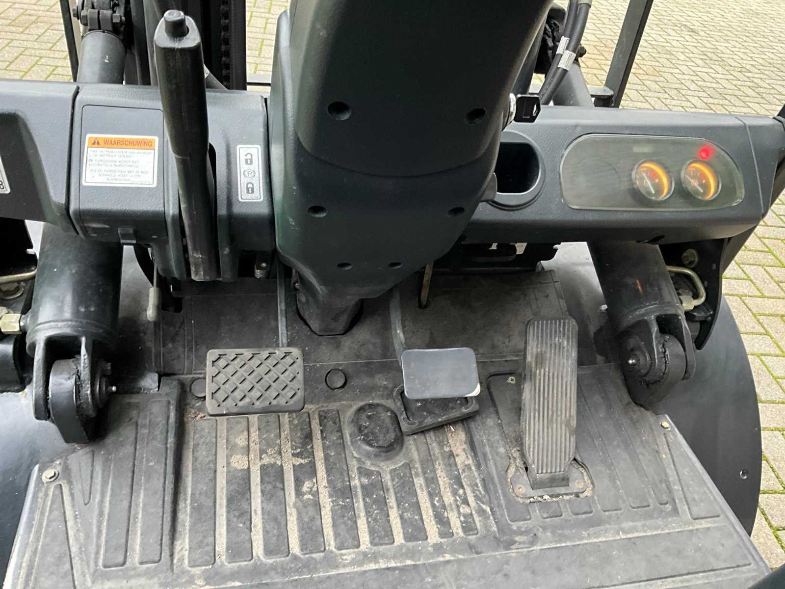 Verlichting voor en achter; zwaailicht; zonder gasfles; Merk: Doosan Type: G30E-5 Bouwjaar: 2010 Serienummer: EM0MC-00242 Brandstof: LPG Afgelezen urenstand: 2110 Free-lift: true Side-shift: true Triple mast: true Hefvermogen: 3000kg Lepellengte: 1200mm Max. hefhoogte: 4730mm Minimale doorrijhoogte: 2183mm LPG: true