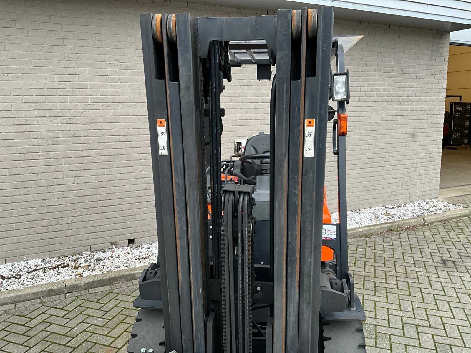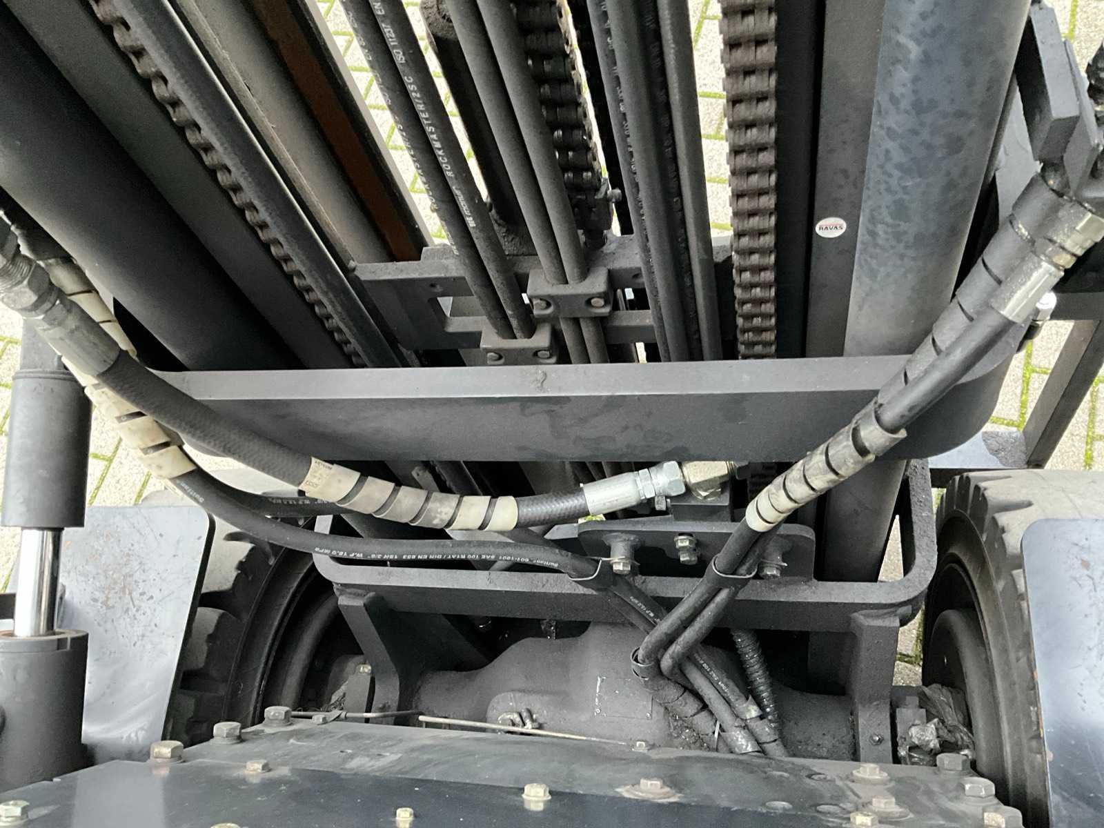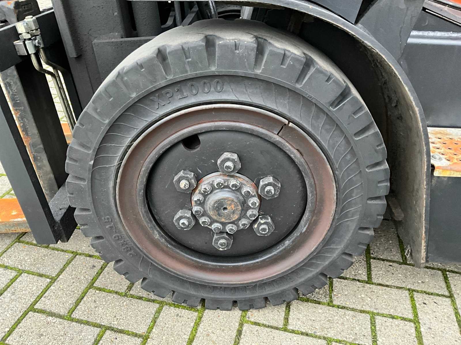 4 ventielenblok, voor en achter verlichting. Zonder gasfles. Merk: Doosan Type: G30GX Bouwjaar: 2012 Serienummer: FGAOY-1280-00570 Brandstof: LPG Afgelezen urenstand: 5609 Free-lift: true Triple mast: true Hefvermogen: 3000kg Lepellengte: 1200mm Max. hefhoogte: 4710mm Minimale doorrijhoogte: 2120mm LPG: true
