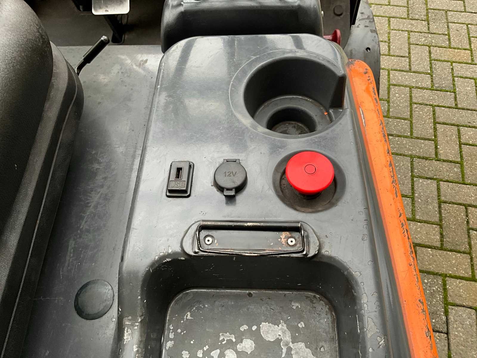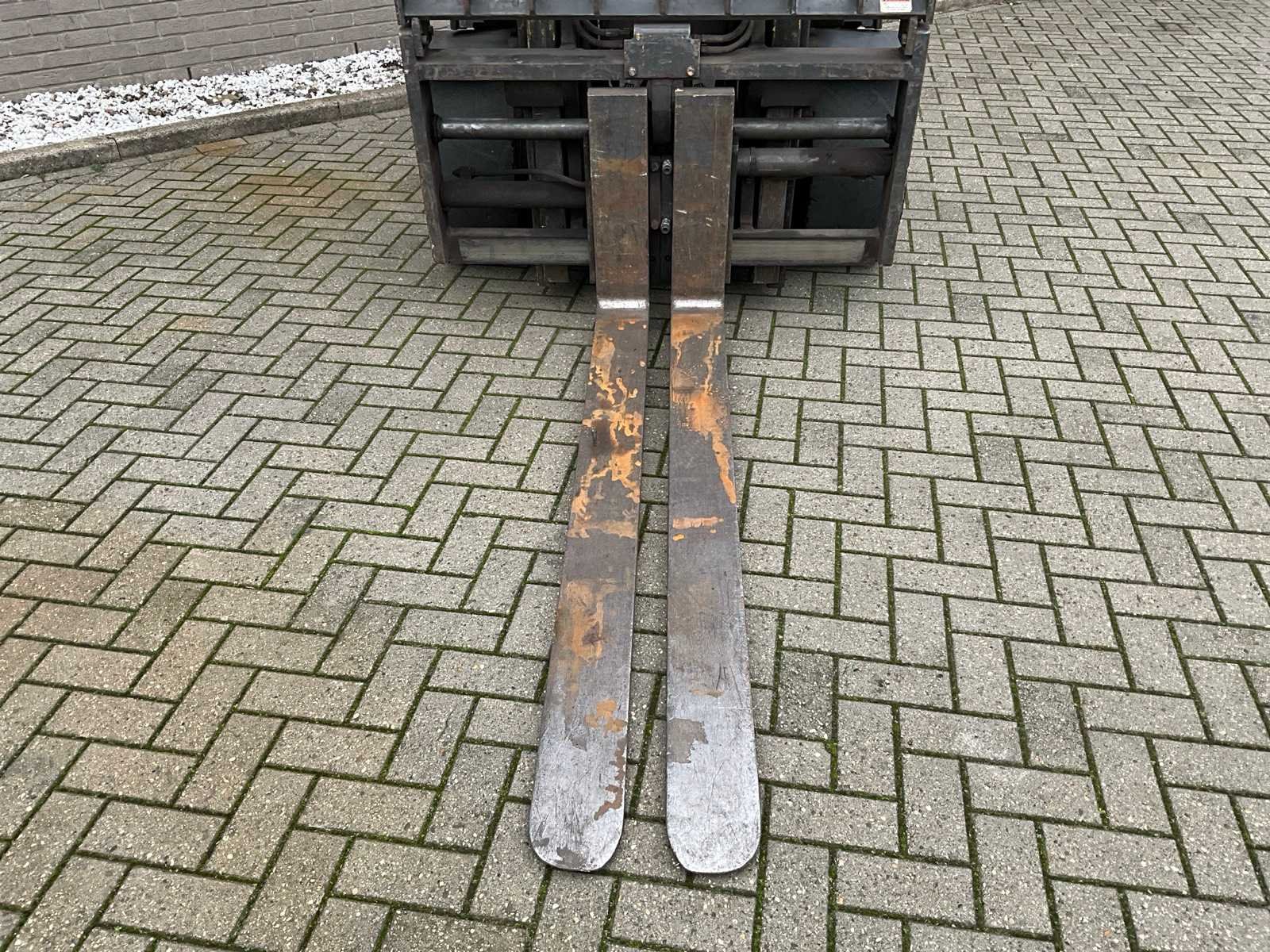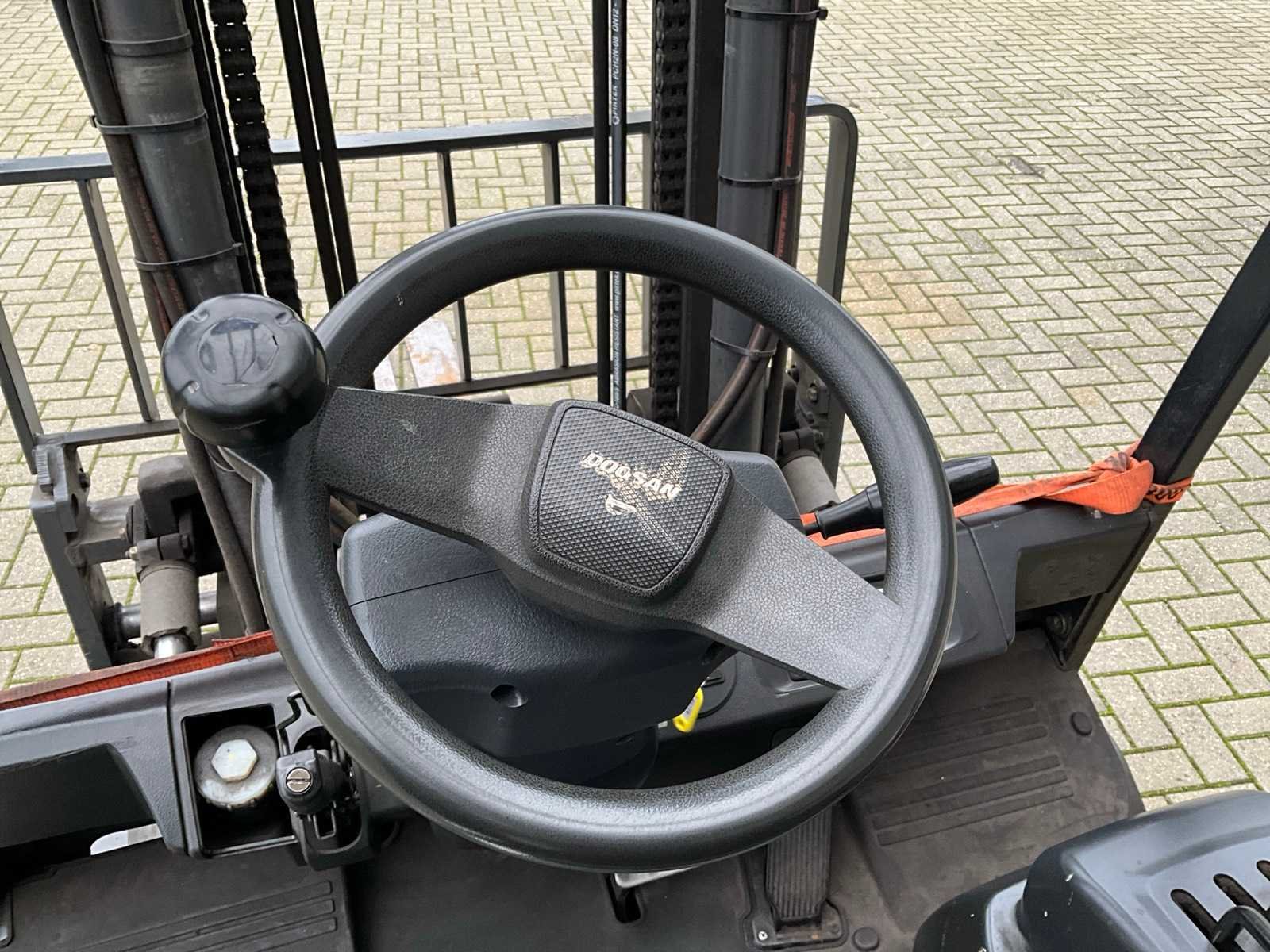 Voor en achter verlichting; de kooi is gescheurd; Merk: Doosan Type: B50X-7 Bouwjaar: 2019 Afgelezen urenstand: 5024 Accu lader: true Side-shift: true Hydraulisch verstelbare lepels: true Duplex mast: true Hefvermogen: 5000kg Lepellengte: 1800mm Max. hefhoogte: 4000mm Minimale doorrijhoogte: 2800mm
