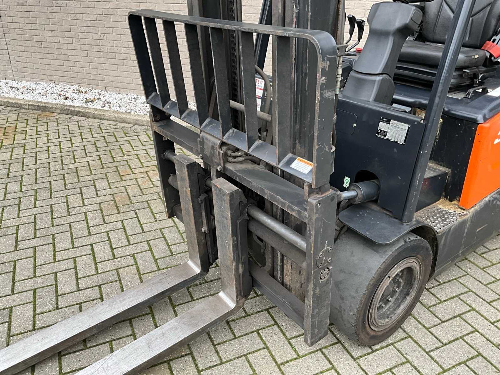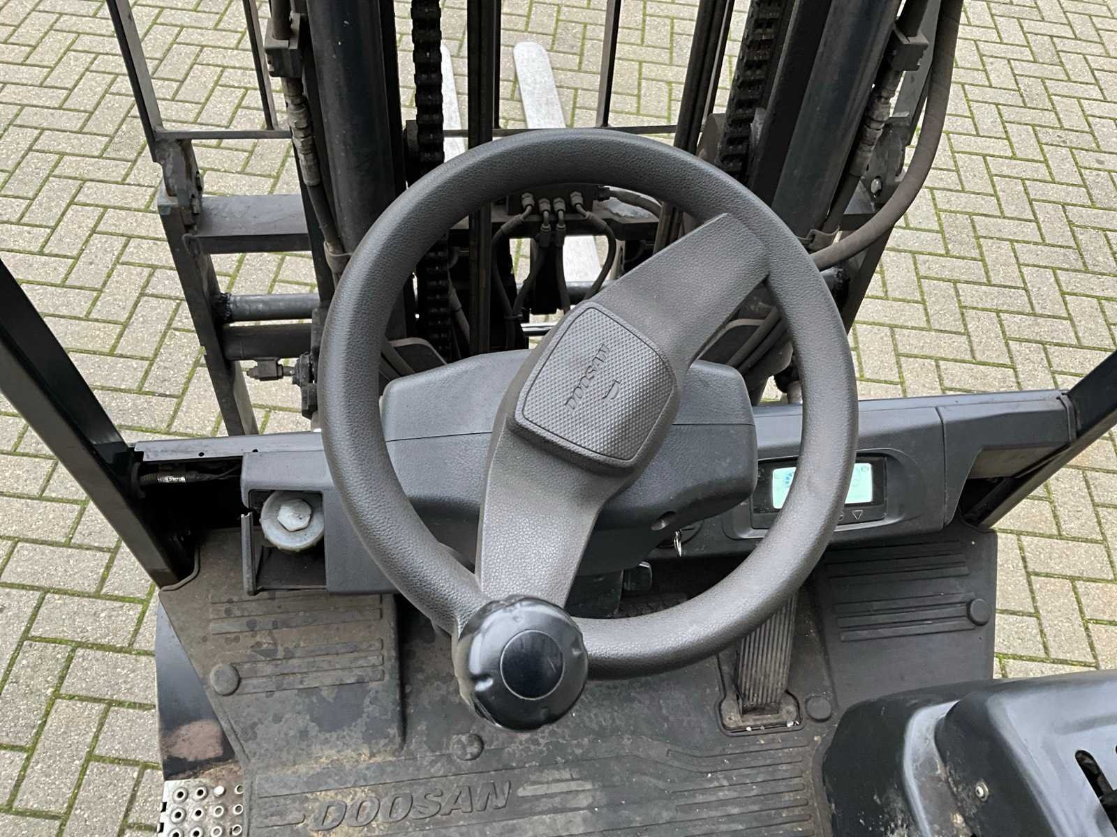 Accumulator en weegsysteem; voorverlichting. Merk: Doosan Type: B35X-7 Bouwjaar: 2018 Serienummer: FBA20-1390-00437 Afgelezen urenstand: 6799 Accu lader: true Side-shift: true Hydraulisch verstelbare lepels: true Duplex mast: true Hefvermogen: 3500kg Lepellengte: 1800mm Max. hefhoogte: 3495mm Minimale doorrijhoogte: 2420mm