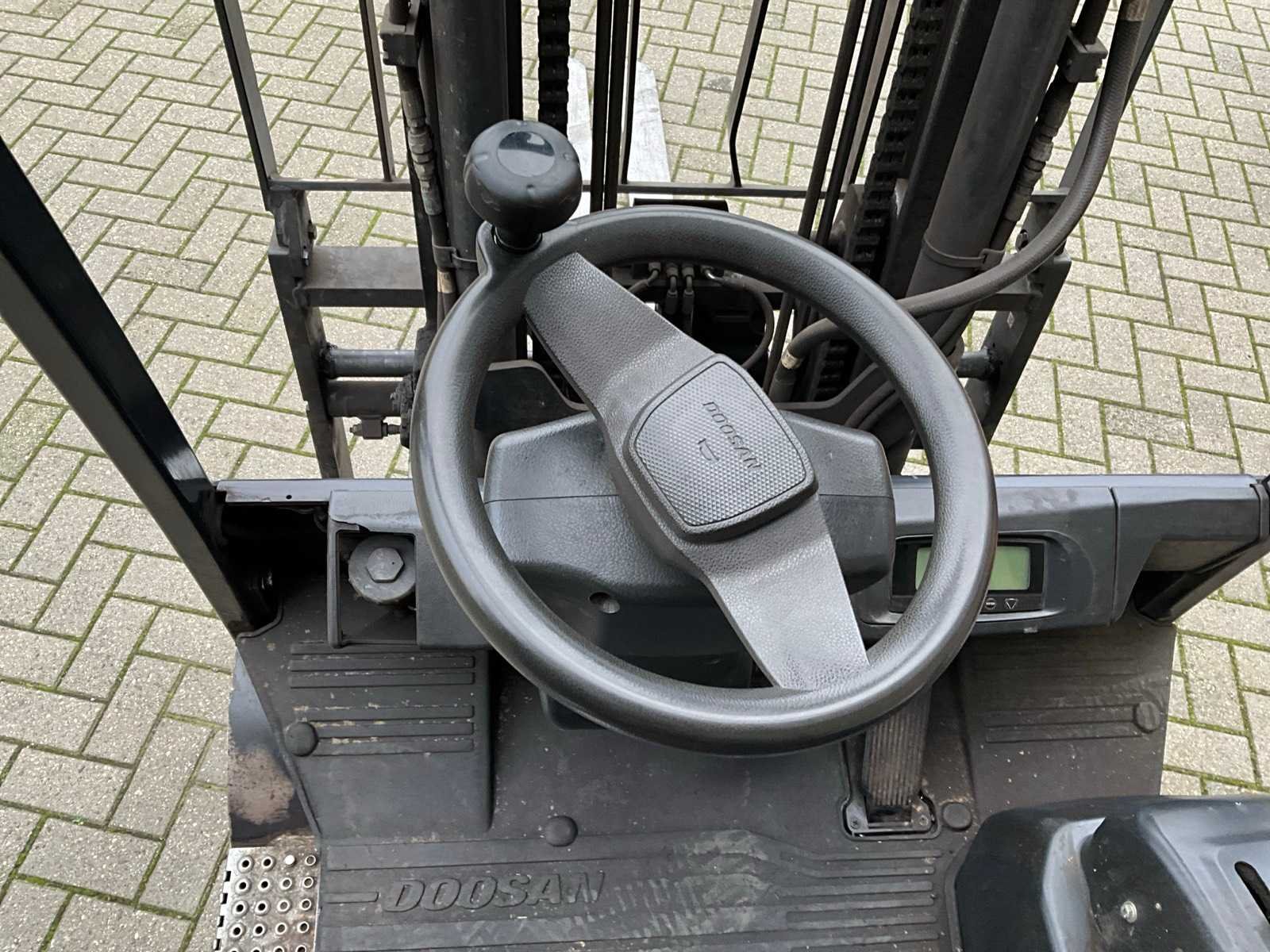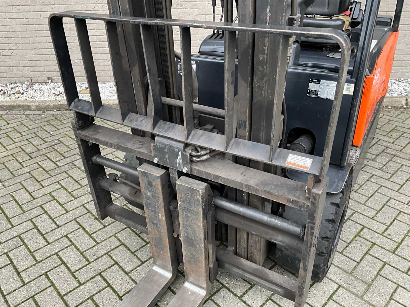 Met accumulator en voorverlichting. Merk: Doosan Type: B35X-7 Bouwjaar: 2018 Afgelezen urenstand: 9208 Side-shift: true Hydraulisch verstelbare lepels: true Duplex mast: true Hefvermogen: 3500kg Lepellengte: 1800mm Max. hefhoogte: 3495mm Minimale doorrijhoogte: 2420mm