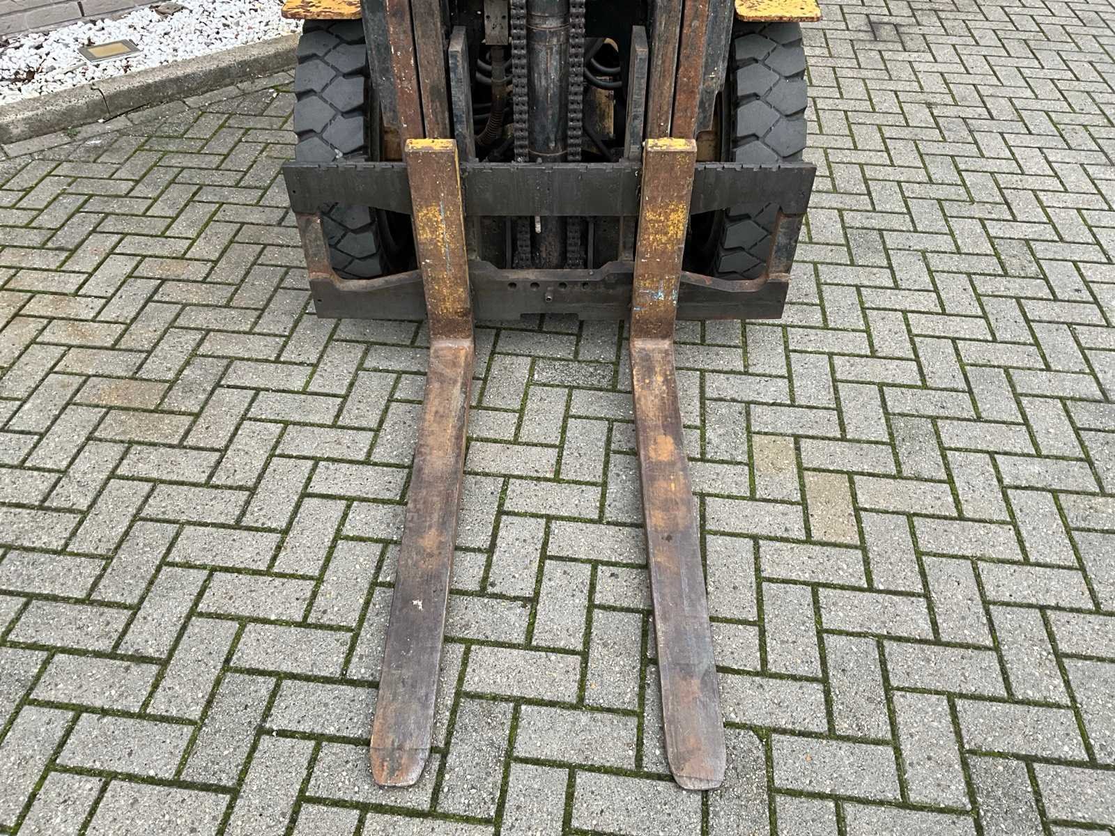 Merk: Daewoo Type: D25S-2 Bouwjaar: 1995 Serienummer: EM016-00398 Brandstof: Diesel Afgelezen urenstand: 2236 Free-lift: true Duplex mast: true Hefvermogen: 2500kg Lepellengte: 1050mm Max. hefhoogte: 3230mm Minimale doorrijhoogte: 2170mm Diesel: true