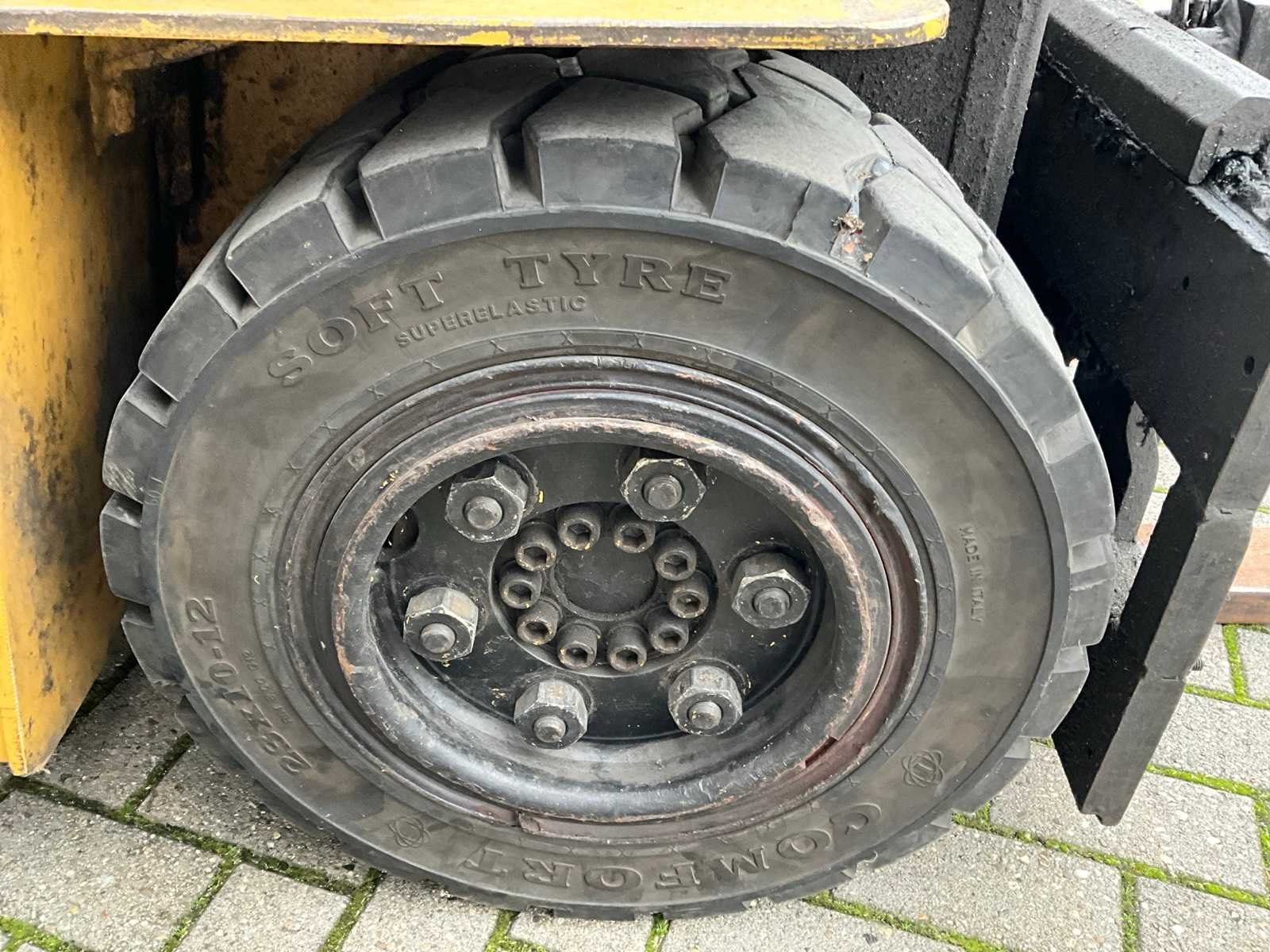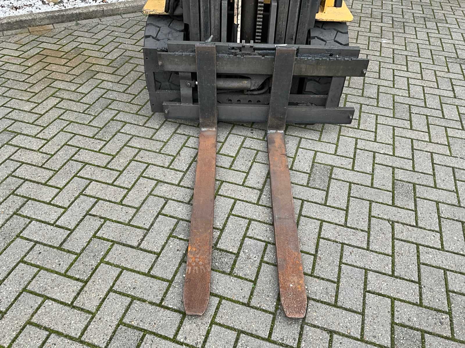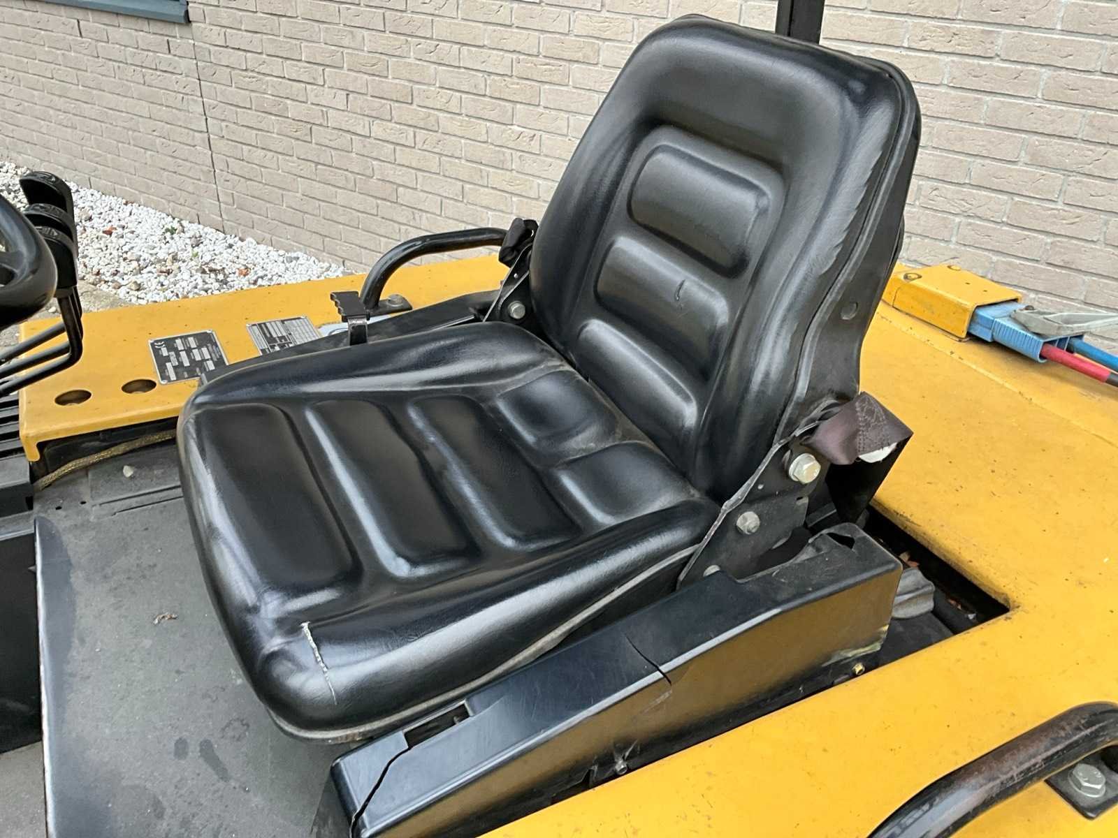 SS-hang on; triplexmast met freelift; hefcilinder lekt olie; Merk: Caterpillar Type: F50DSA Bouwjaar: 1998 Serienummer: 4GD00259 Afgelezen urenstand: 5927 Free-lift: true Triple mast: true Hefvermogen: 2000kg Lepellengte: 1150mm Max. hefhoogte: 5600mm Minimale doorrijhoogte: 2500mm