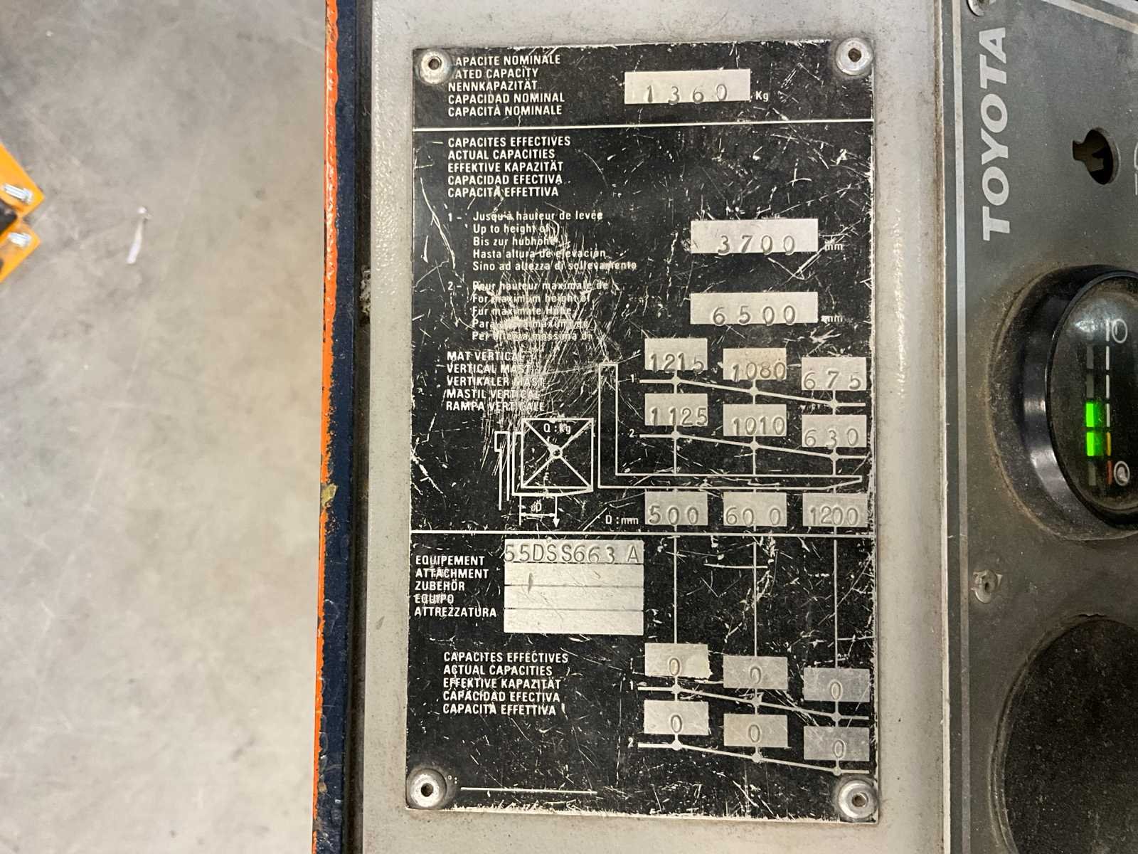 Merk: Toyota Type: 5fbre14 Bouwjaar: 1990 Accu lader: true Hefvermogen: 1360kg Max. hefhoogte: 6500mm Minimale doorrijhoogte: 2850mm Elektrisch: true
