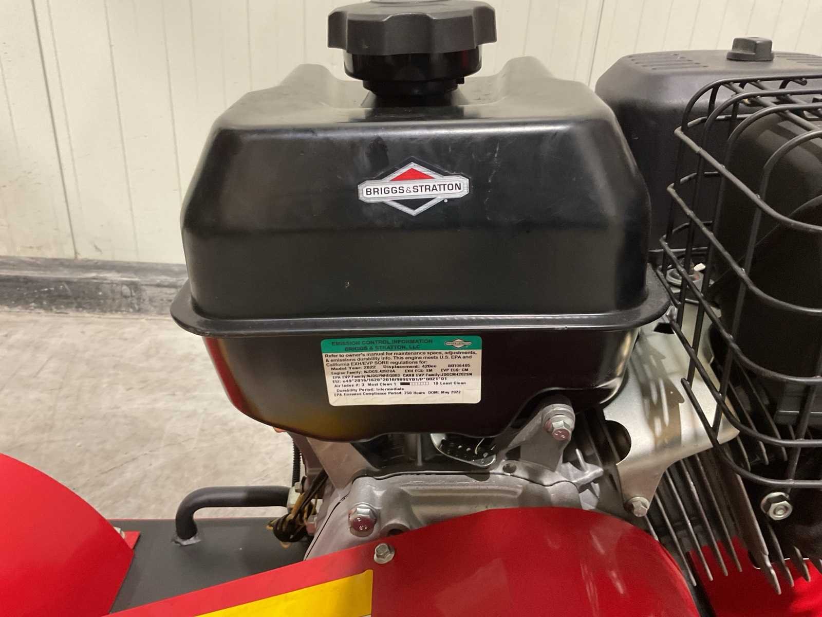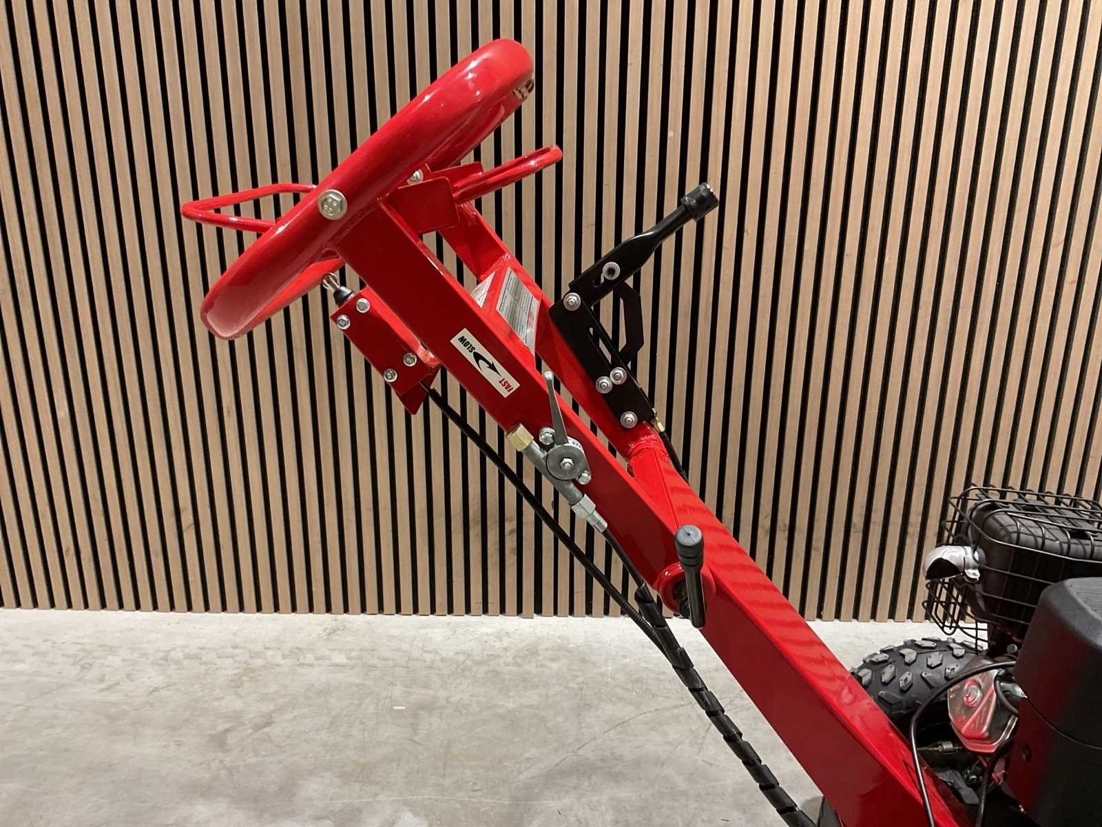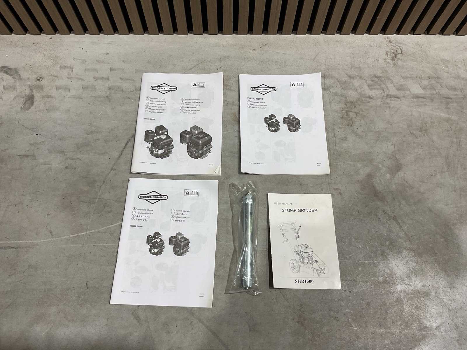 Voorzien van Motorvermogen: 15 pk; Cilinderinhoud: 420 cc; Start: trekstart + elektrische start; Koppeling: centrifugaalkoppeling; Aandrijving: 2× V-snaar; Freeswiel diameter: 300 mm; Freeswiel dikte: 12 mm; Tanden: 8 stuks, hardmetalen (carbide); Freeshoogte: 600 mm; Freesdiepte: 235 mm; Wielen: 145/70-6 tubeless; trommelrem; Trekstang; gewicht: 145kg; Verpakkingsmaat: 1020 × 700 × 650 mm Merk: AGT Type: SGR1500 Bouwjaar: 2025