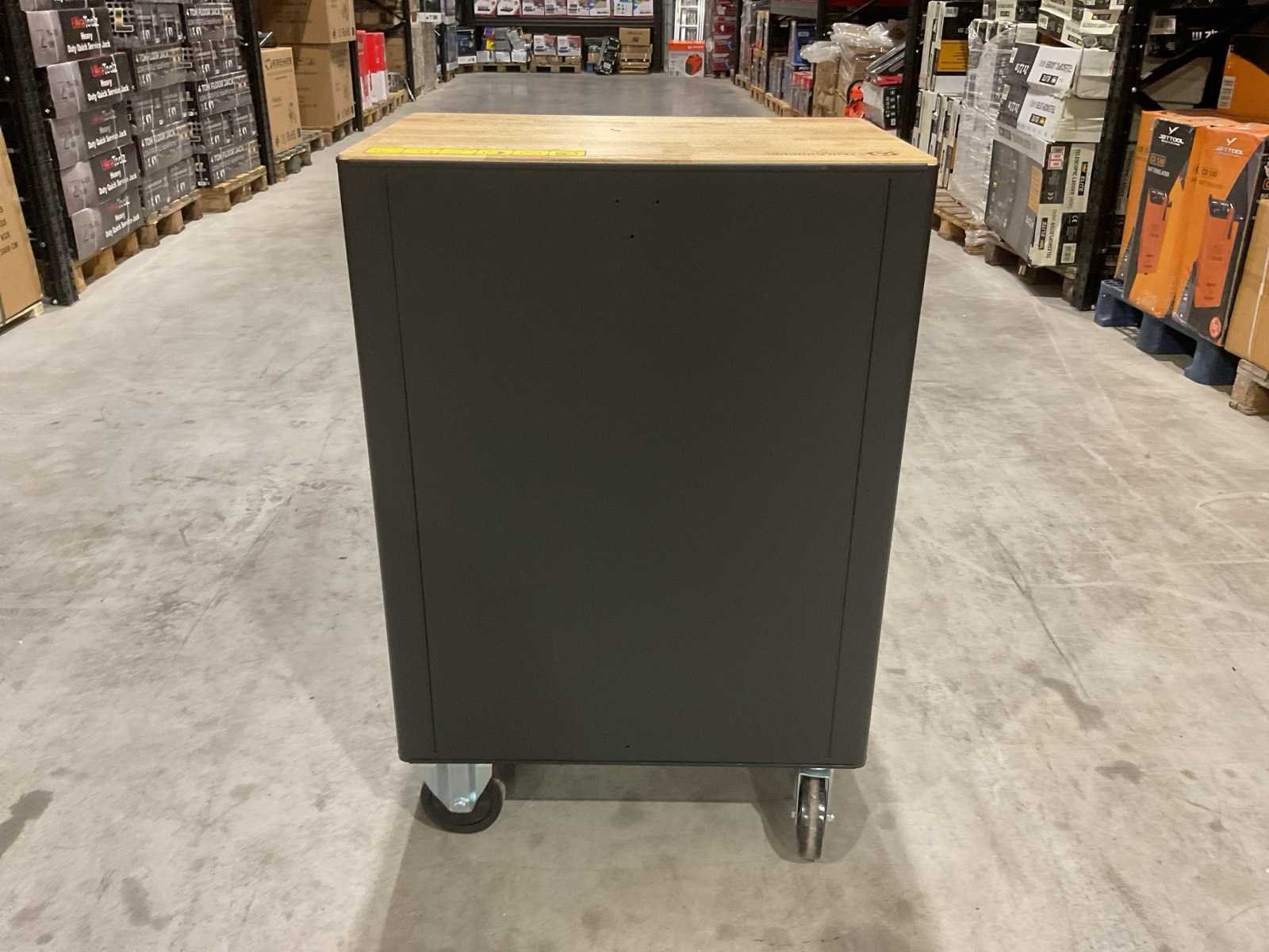Voorzien van 7 lades waarvan 6 gevuld met gereedschap; professioneel chroom-vanadium gereedschap; heavy duty gereedschapswagen; houten werkblad; 4 wielen; stevig handvat; (transport afmetingen 70x50x105 cm); Let op transports schade Merk: Stahlgruppe Type: SG15 Bouwjaar: 2025 Aantal laden: 7 Met inhoud: true Eigen gewicht: 77kg Totale afmeting L: 68mm Totale afmeting Breedte: 48mm Totale afmeting Hoogte: 104mm