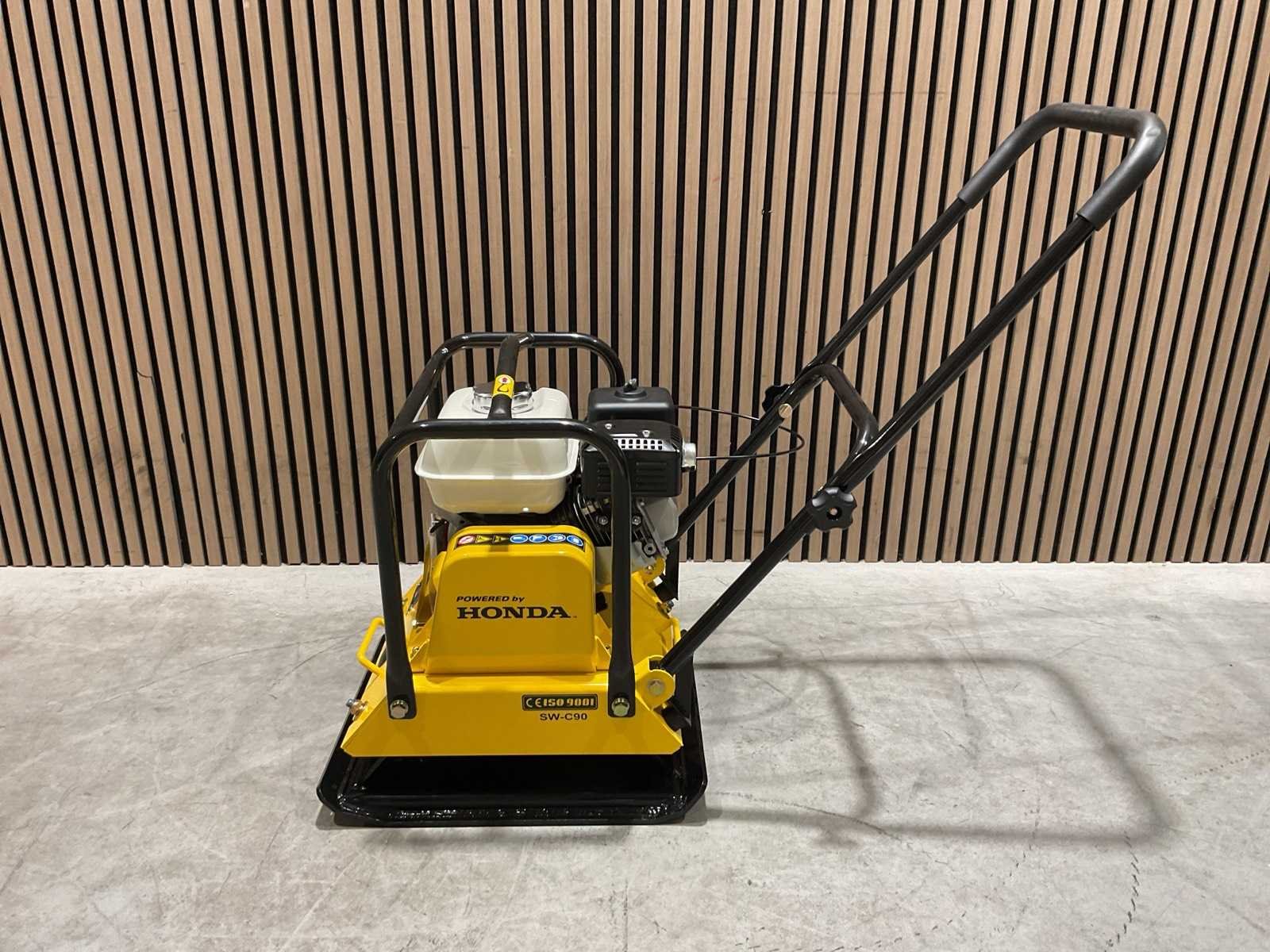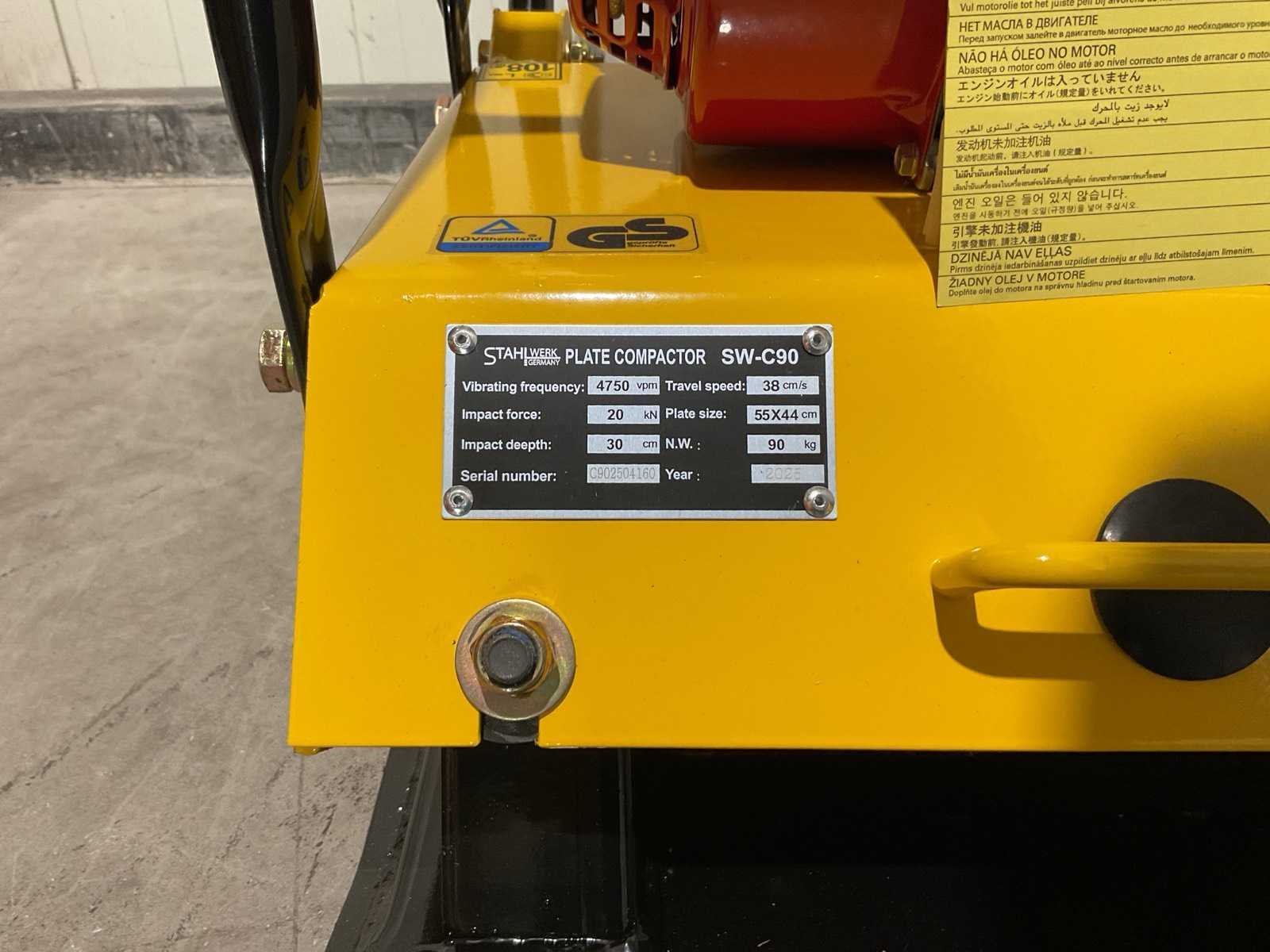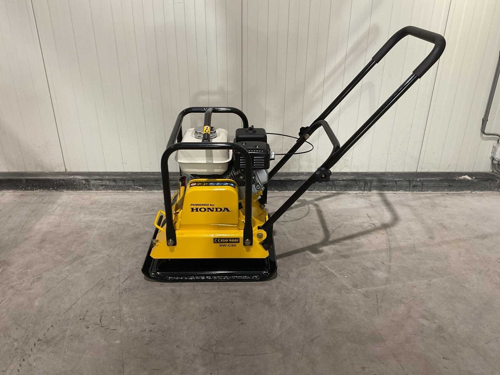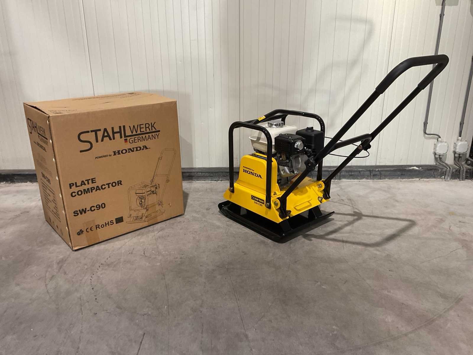 Voorzien van honda fx160 benzinemotor; 163cc motorinhoud; 4,8 pk; trekstart; werkbreedte trilplaat 450 mm; slagkracht 20 kN; werksnelheid 20 m/min; ca 450 m²/uur; 90kg machinegewicht; nieuw in doos Merk: Stahlwerk Type: SW-C90 Bouwjaar: 2025 Bedrijfsgewicht: 90kg Grondplaat afm. l: 640mm Grondplaat afm. b: 480mm Centrifugale kracht: 20kN Merk motor: Honda Eigen gewicht: 90kg Totale afmeting L: 645mm Totale afmeting Breedte: 485mm Totale afmeting Hoogte: 680mm