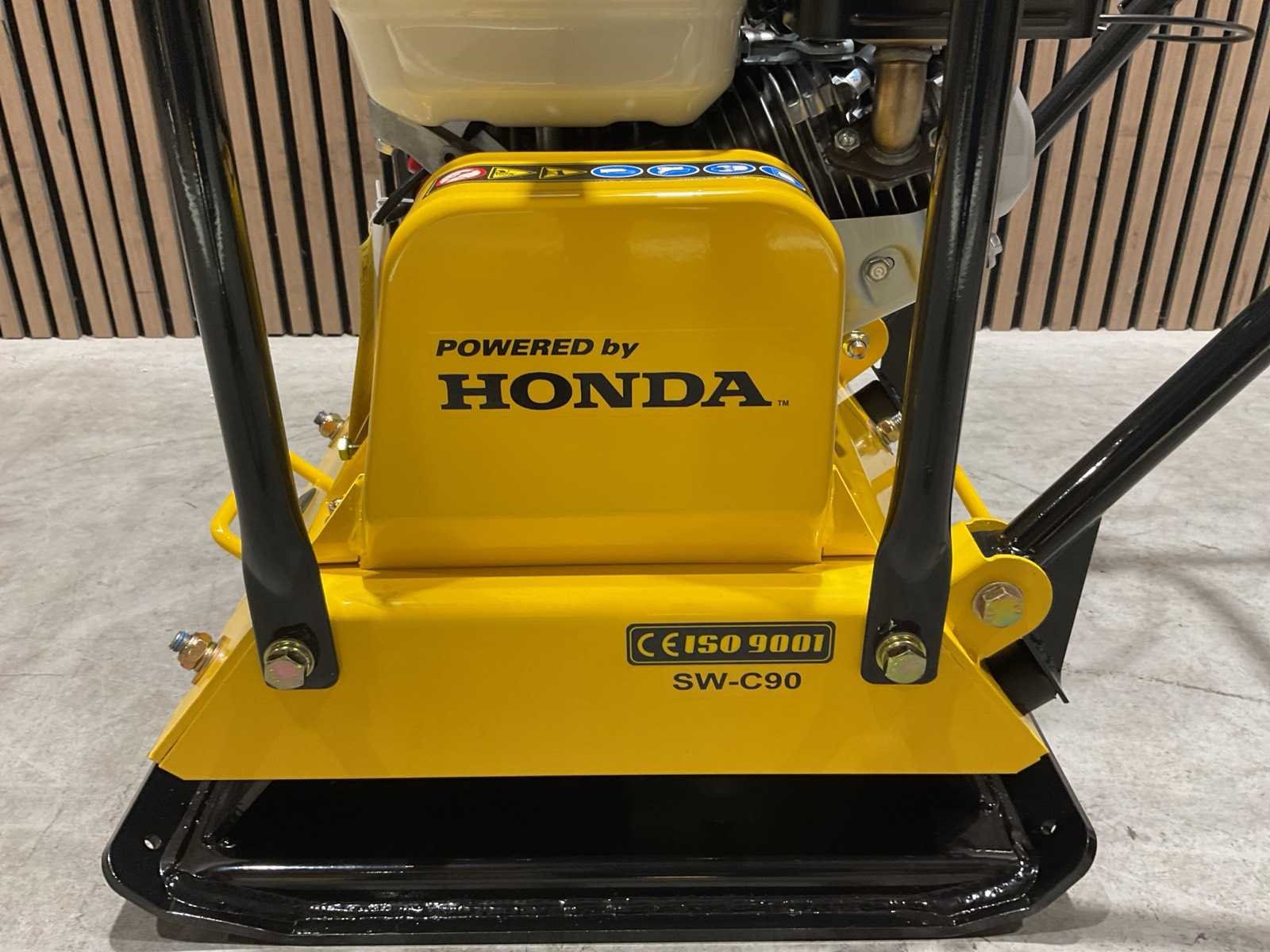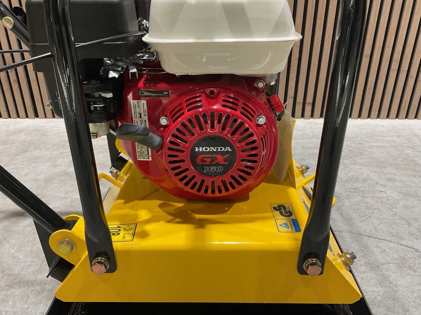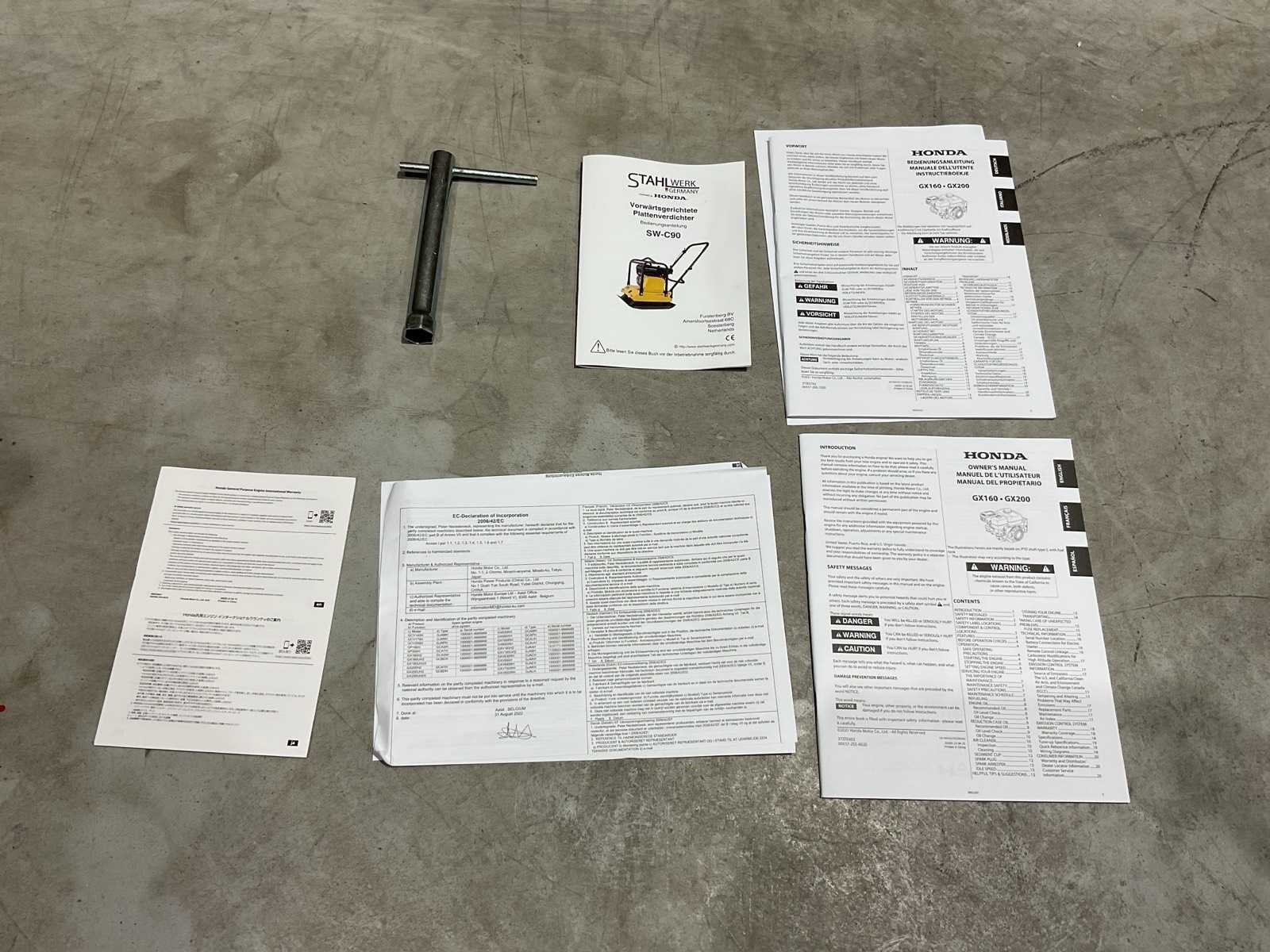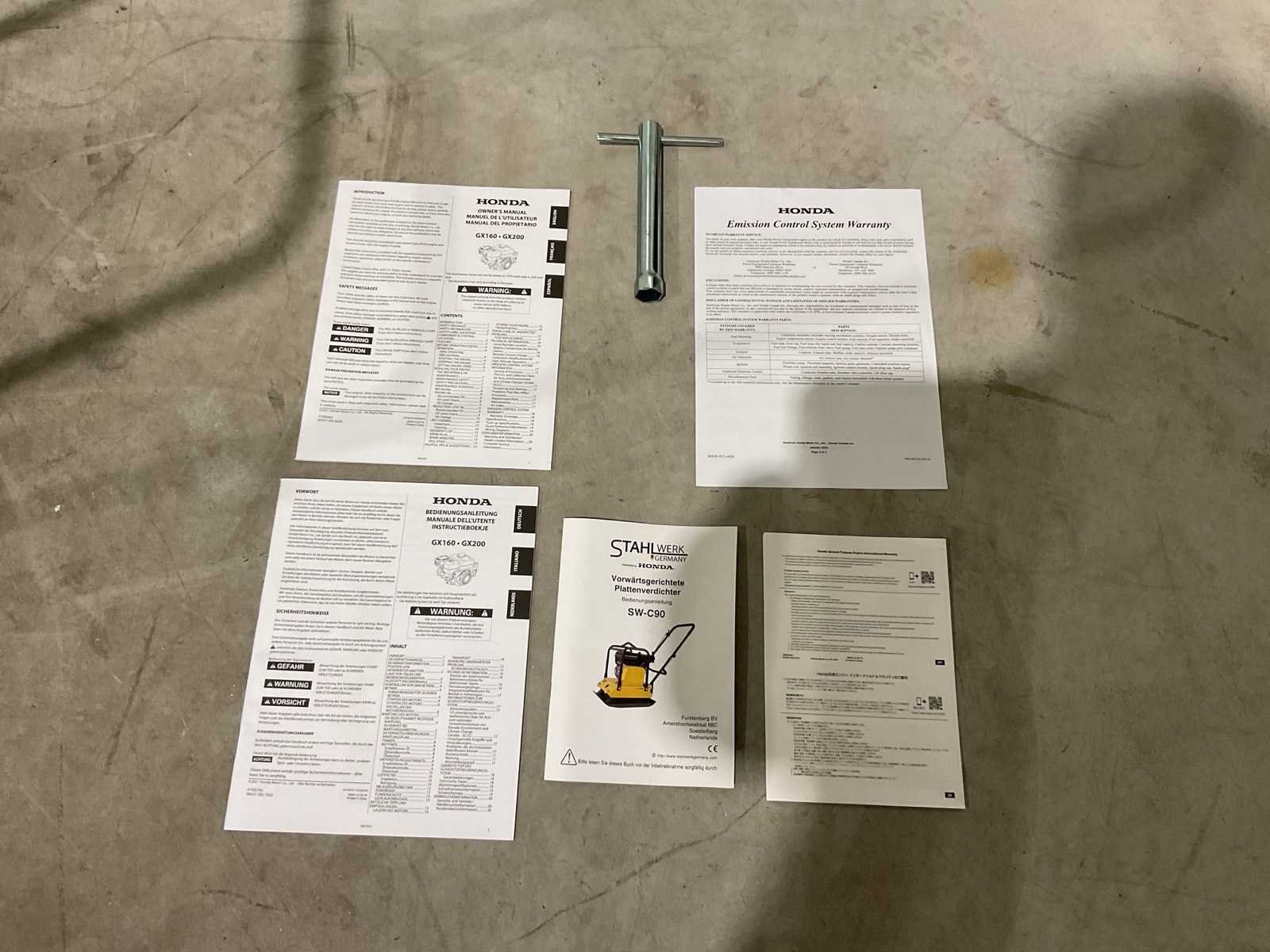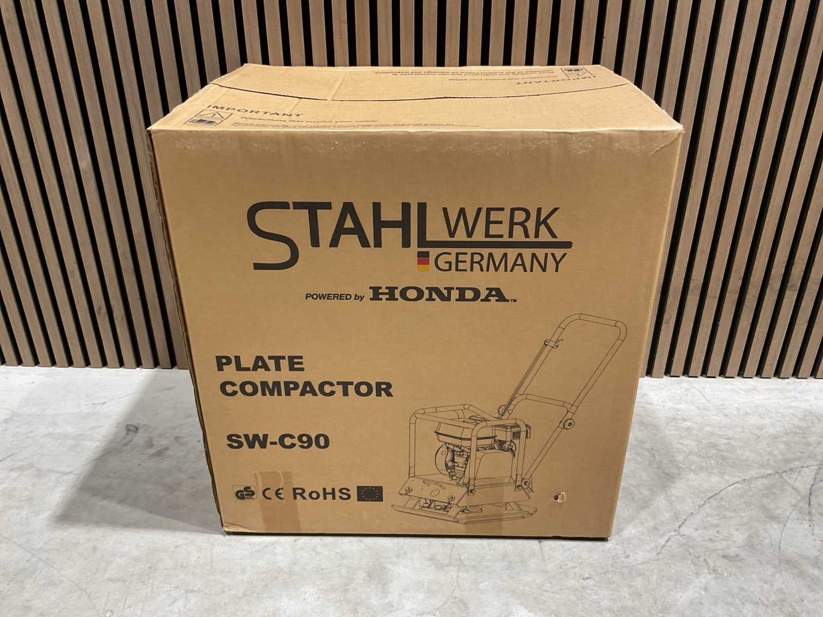 Voorzien van honda fx160 benzinemotor; 163cc motorinhoud; 4,8 pk; trekstart; werkbreedte trilplaat 450 mm; slagkracht 20 kN; werksnelheid 20 m/min; ca 450 m²/uur; 90kg machinegewicht; nieuw in doos Merk: Stahlwerk Type: SW-C90 Bouwjaar: 2025 Bedrijfsgewicht: 90kg Grondplaat afm. l: 640mm Grondplaat afm. b: 480mm Centrifugale kracht: 20kN Merk motor: Honda Eigen gewicht: 90kg Totale afmeting L: 645mm Totale afmeting Breedte: 485mm Totale afmeting Hoogte: 680mm
