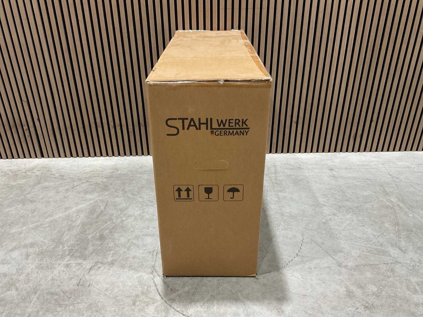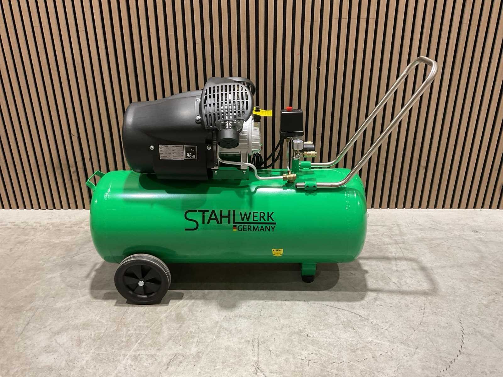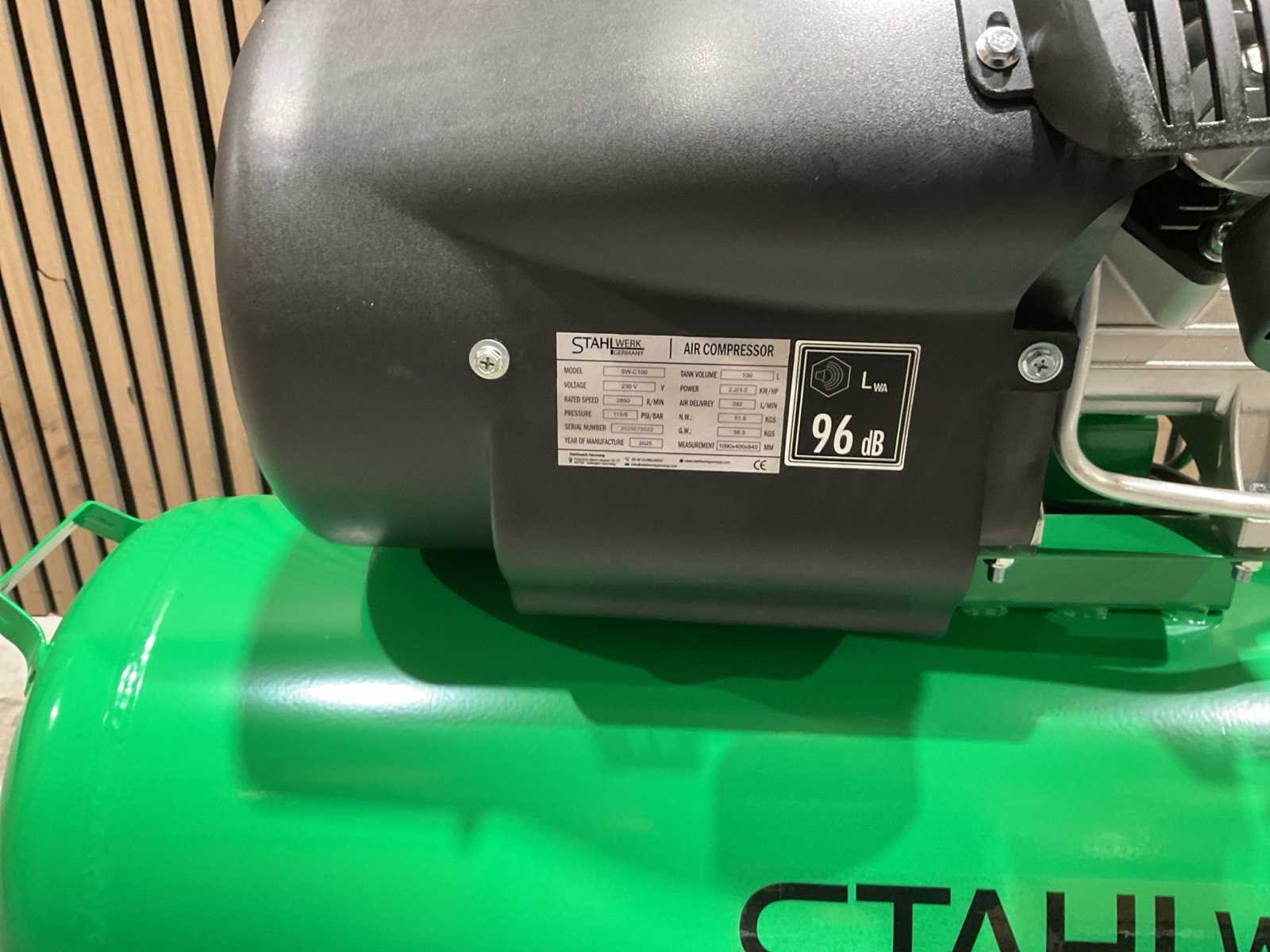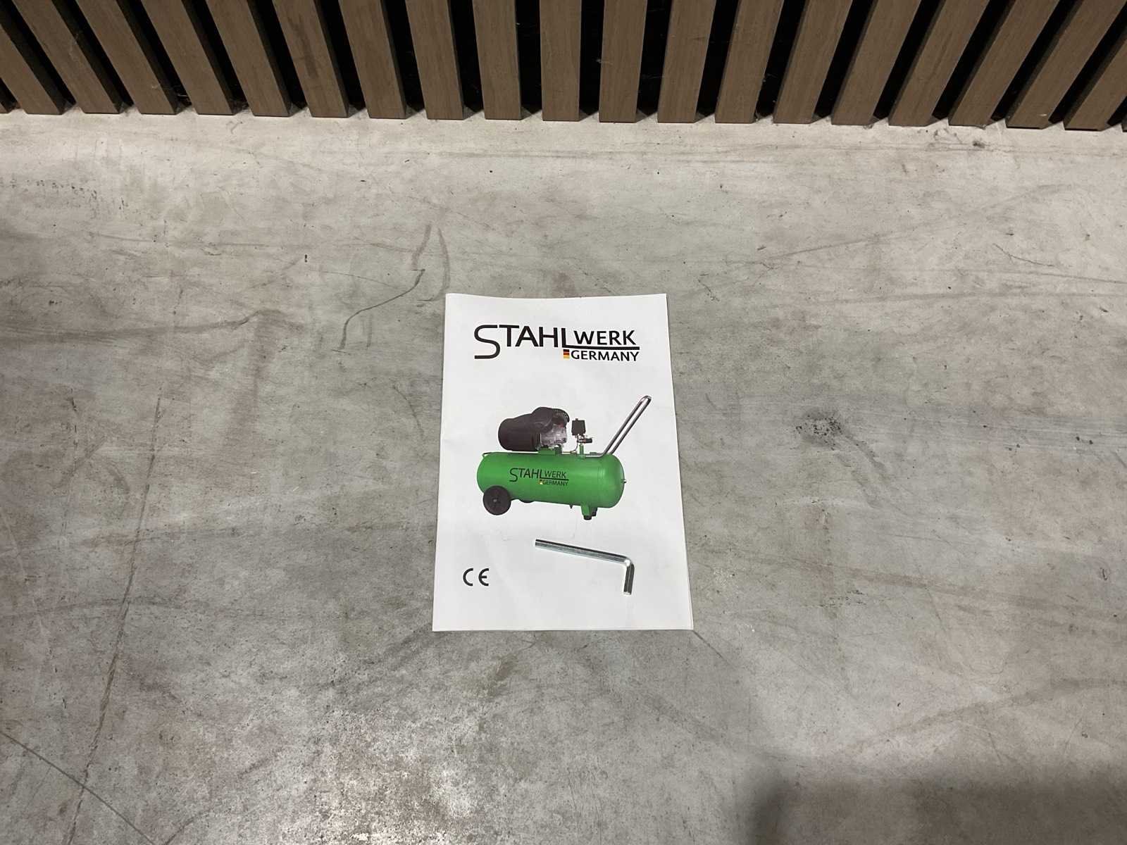 Voorzien van 230v netstroom; maximale werkdruk 8 bar; aanzuigcapaciteit 392 liter per minuut; geluidsniveau 96dB; gewicht 56 kg; nieuw in doos Merk: Stahlwerk Type: 100 liter Bouwjaar: 2025 Capaciteit.: 8bar Luchtstroom: 392l/min Buffertank inhoud: 100l Aansluiting: 230V Eigen gewicht: 55kg Totale afmeting L: 1090mm Totale afmeting Breedte: 390mm Totale afmeting Hoogte: 820mm