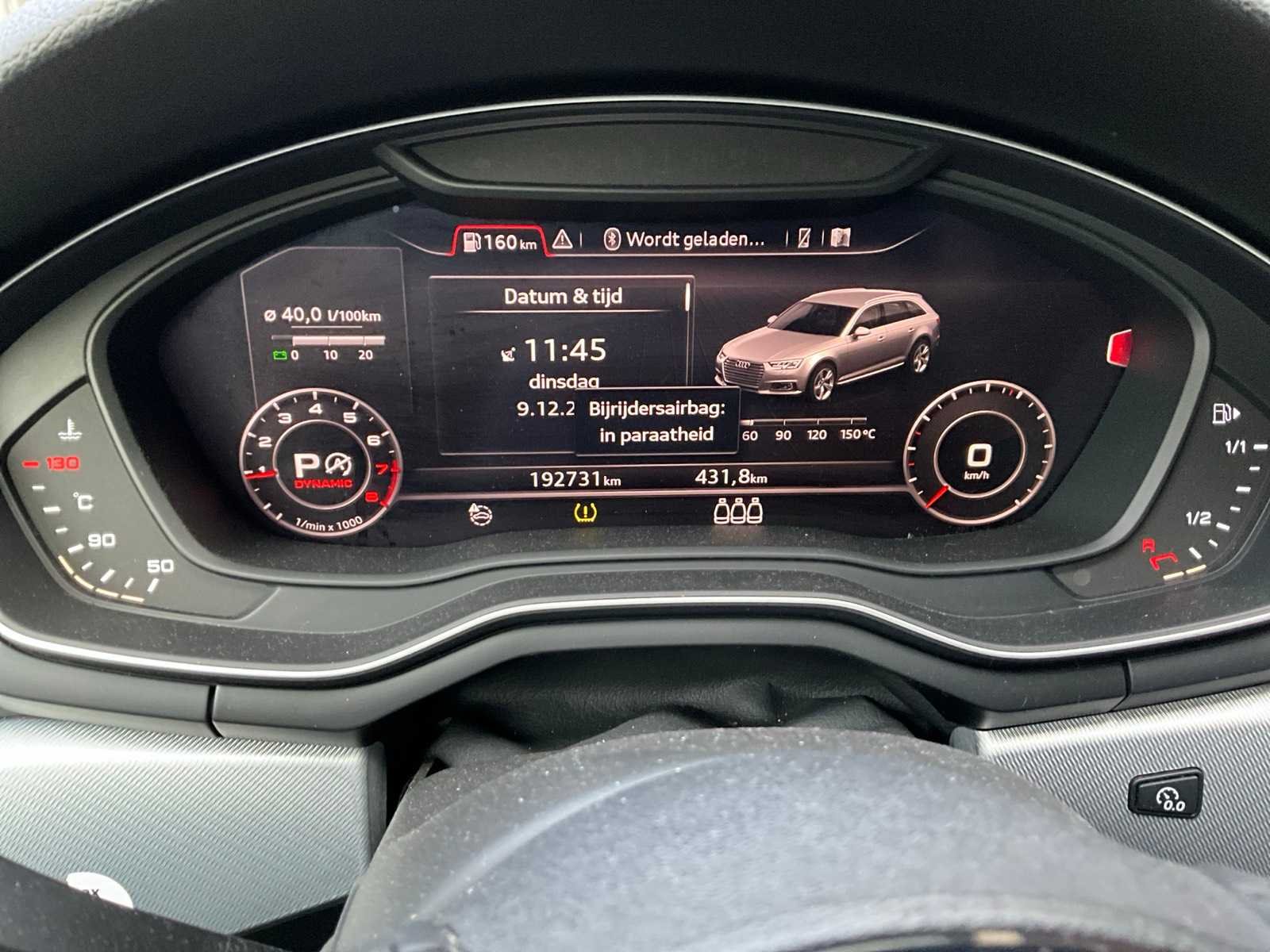 Let op! Wanneer deze auto wordt verkocht buiten Nederland, kan het zijn dat deze auto geen Nederlandse exportpapieren heeft, maar Duitse kentekenpapieren. Voor het registeren van de auto in uw eigen land maakt dit geen verschil. Opties: Dakrailing chroom, Getint glas, Lichtmetalen velgen 19 inch, Metallic lak, Mistlampen voor, Mistlichten met bochtenlicht, Parkeersensoren voor en achter, Privacy glas, Audiostuurbediening, Grafisch kleurenscherm, Head up Display, Multifunktioneel stuurwiel, Multimedia systeem, Navigatiesysteem, Radio, Telefoonvoorbereiding Bluetooth, USB aansluiting, Airco automatisch, Armsteun voor, Bekleding stof, Binnenspiegel automatisch dimmend, Boardcomputer, Buitenspiegels elektrisch verstelbaar, Buitenspiegels verwarmbaar, Centrale deurvergrendeling afstandbediend, Cruise control, Isofix, Ramen voor en achter elektrisch bedienbaar, Sportstoelen voor, Stoelen in hoogte verstelbaar. Kenteken: R-362-LD Merk: Audi Type: A4 Bouwjaar: 2017 Afgelezen kilometerstand: 192731km Cilinderinhoud: 1984cc Vermogen (kW): 185kW Brandstof: Benzine Chassisnummer: WAUZZZF43HA152207 Datum eerste toelating: 24-04-2017 APK vervaldatum: 18-12-2026 Vermogen (pk): 252hp Aandrijving: Vierwielaandrijving Aantal zitplaatsen: 5 Maximaal trekgewicht ongeremd: 750kg Kleur: Zwart Transmissie: Automaat Emissieklasse: Euro 6 W Aantal deuren: 5 Aantal sleutels: 1 Ledig gewicht: 1615kg Aantal cilinders: 4 Carrosserie: Stationwagen Nationaliteit documenten: Nederlands CO2-uitstoot NEDC: 139 Self drive export possible : true No self drive export!: false Vierwielaandrijving 4x4: true